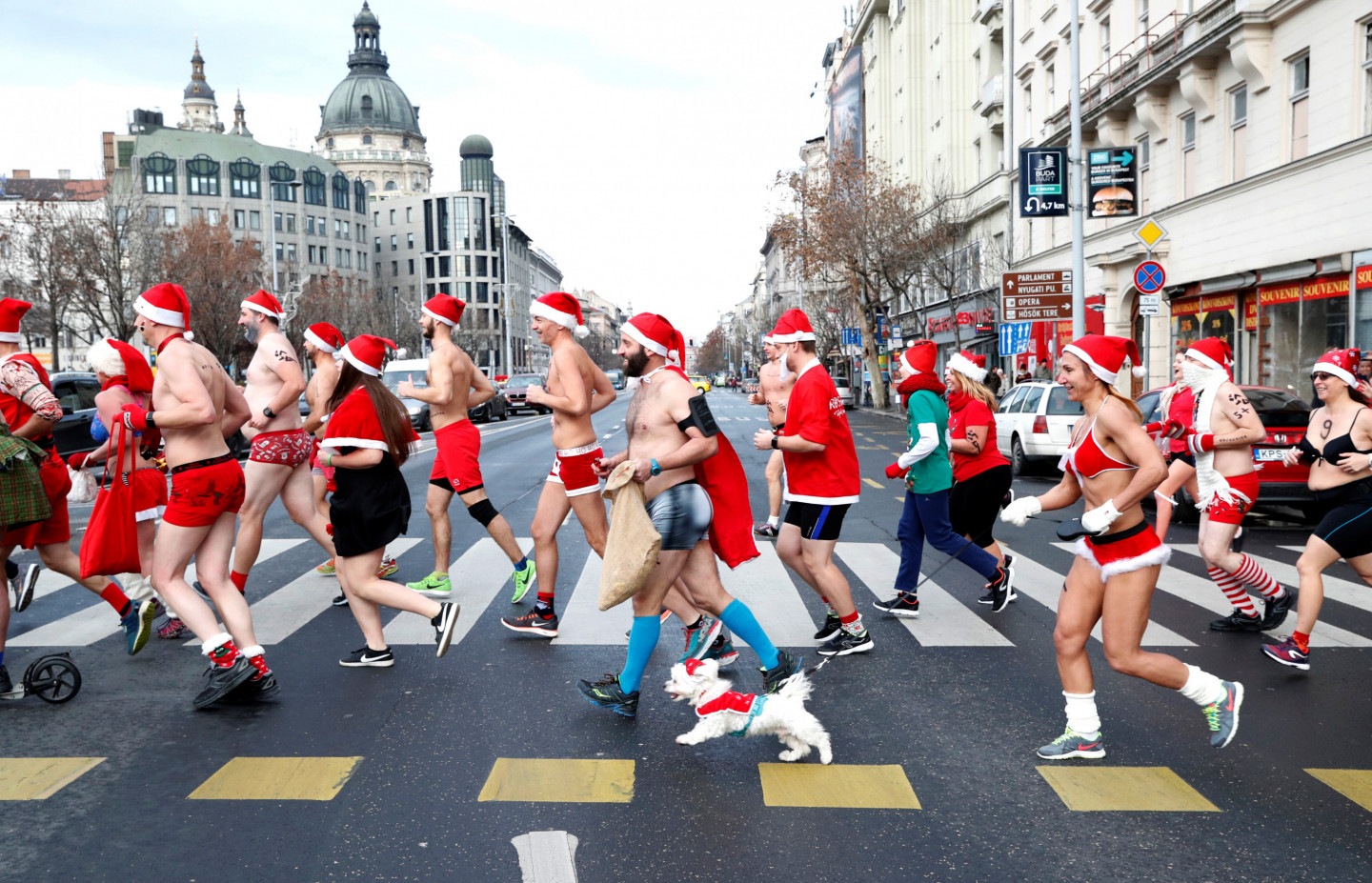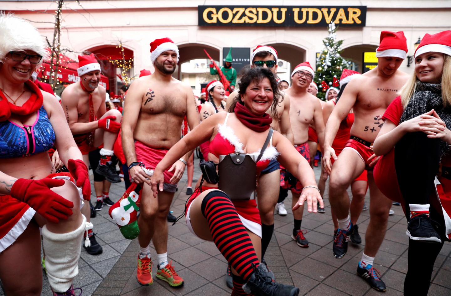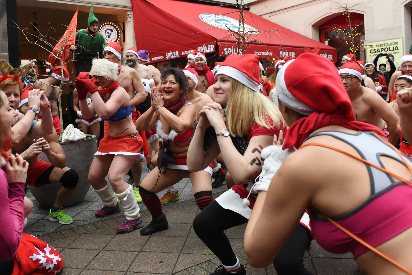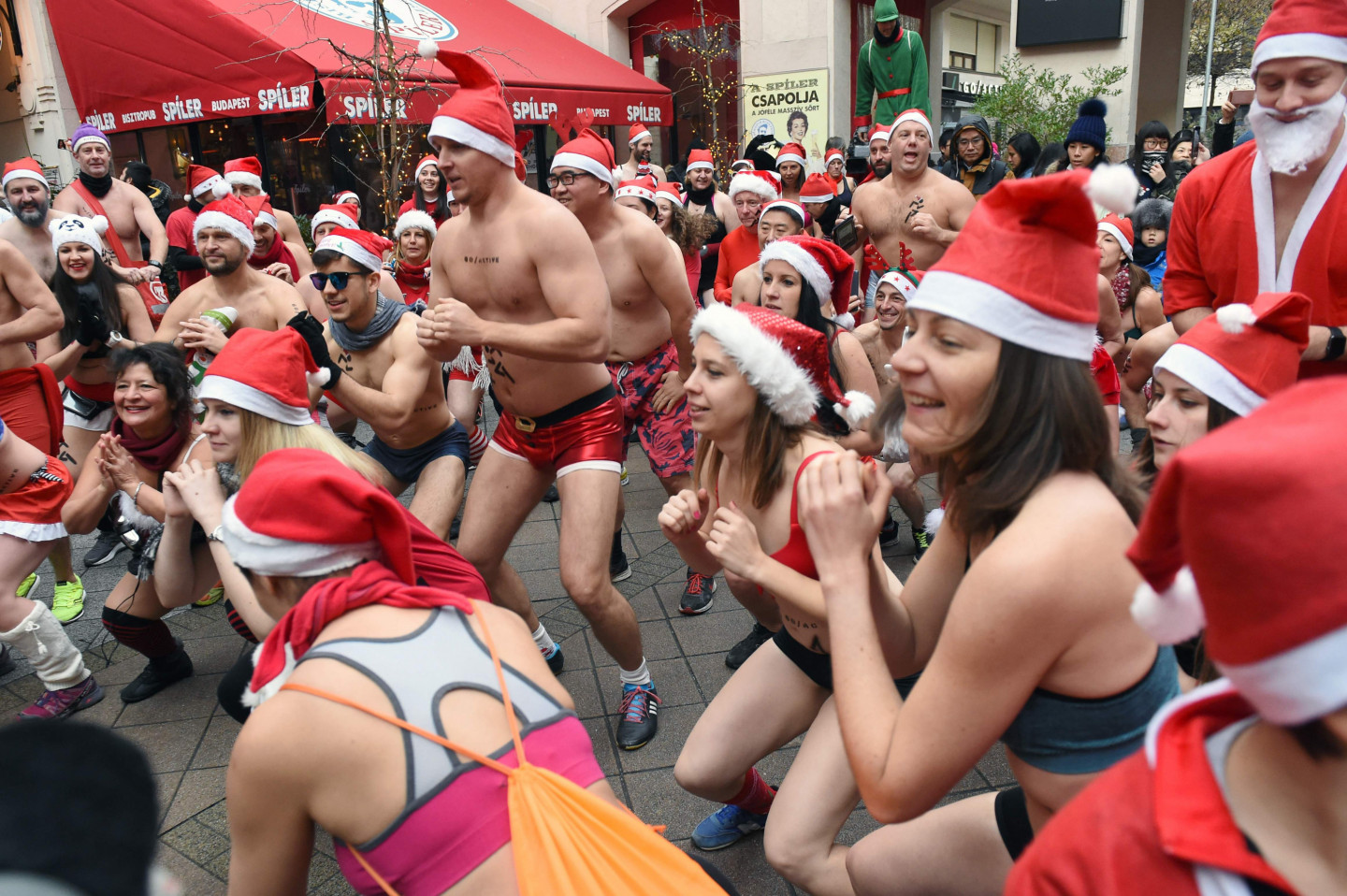 Šajā nedēļas nogalē Budapeštā noticis puskailo Ziemassvētku svinētāju skrējiens.