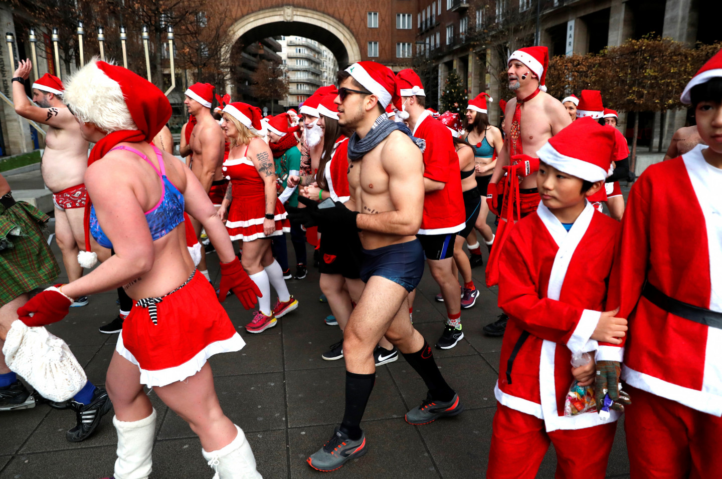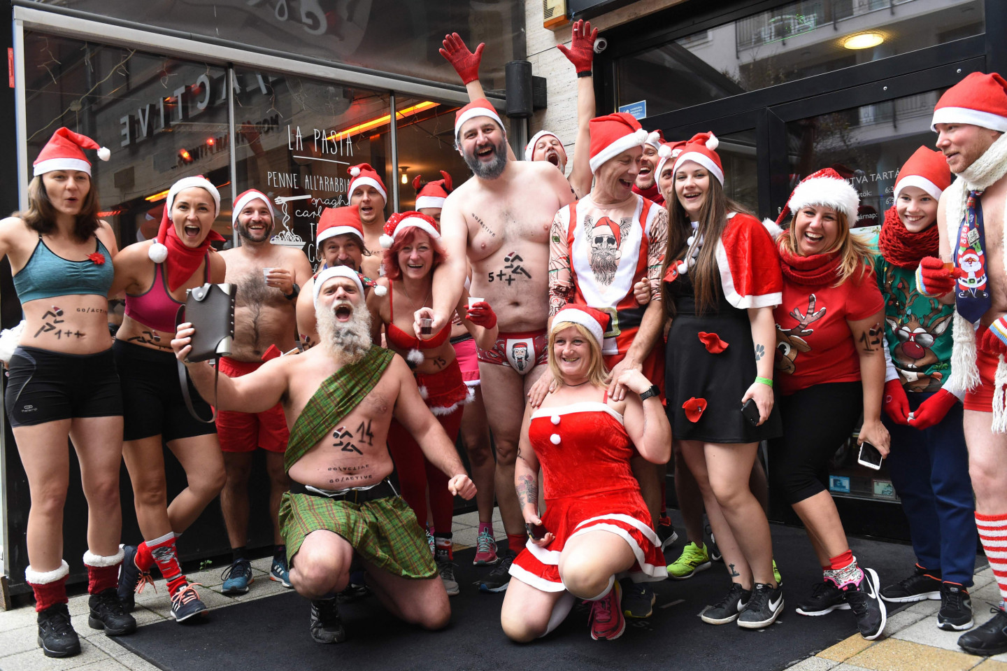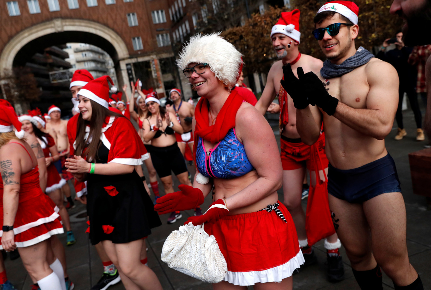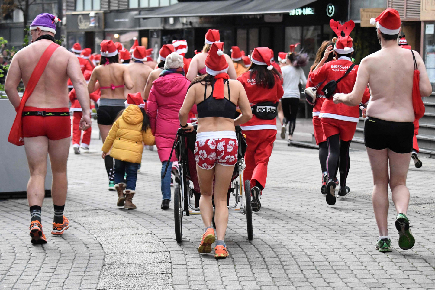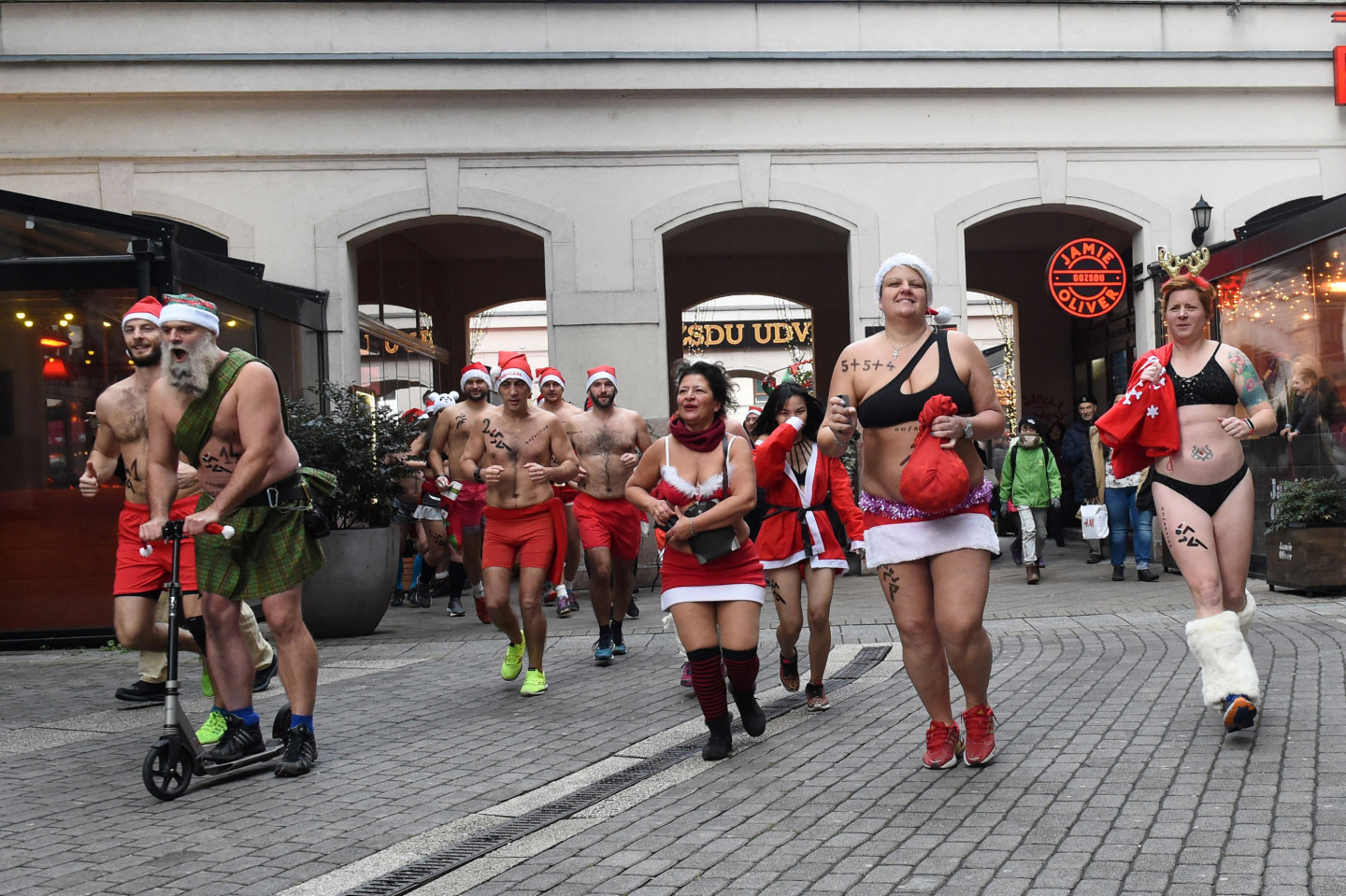 Šajā nedēļas nogalē Budapeštā noticis puskailo Ziemassvētku svinētāju skrējiens.
