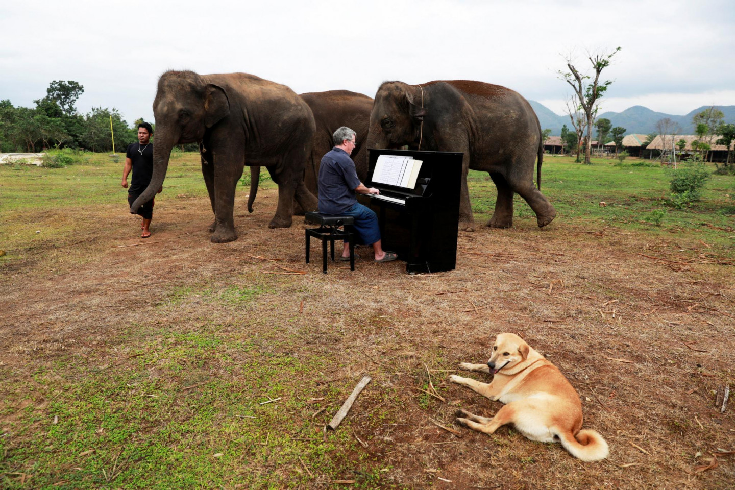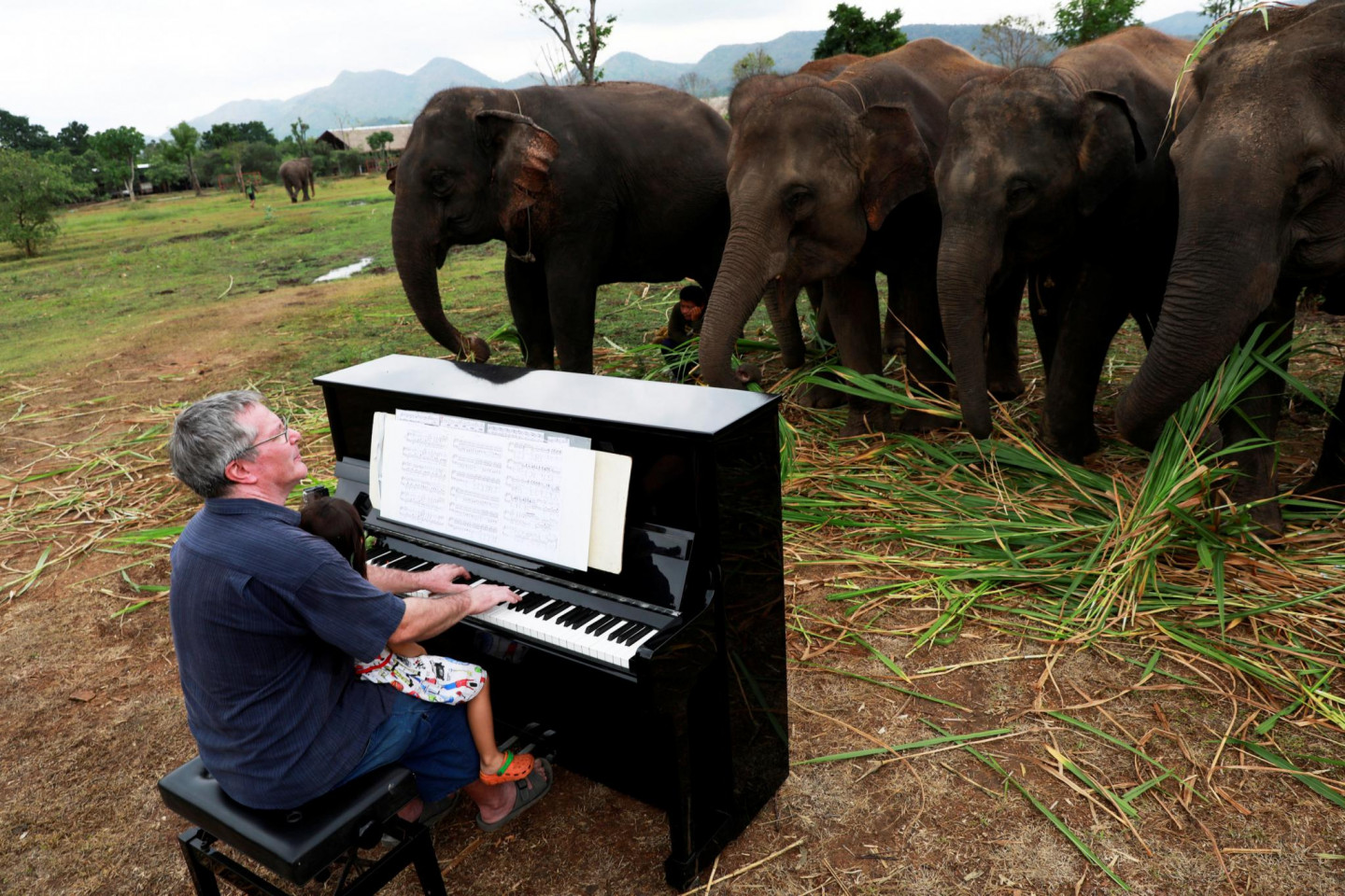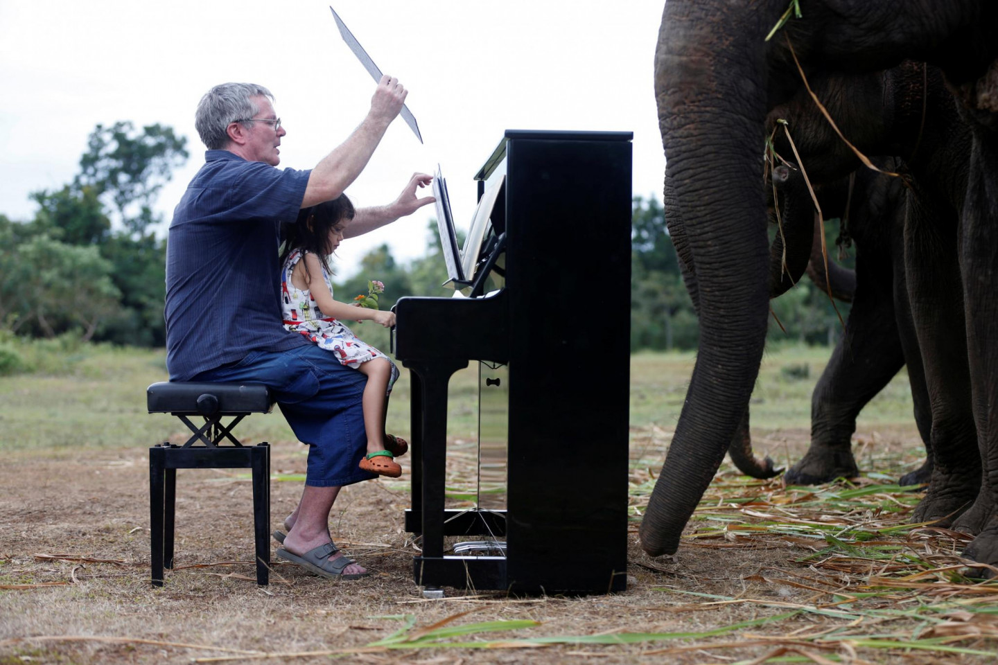 Britu brīvprātīgais Pauls Bartons kopā ar meitu devies uz Taizemi, kur veltījis klavieru koncertu slimiem ziloņiem.