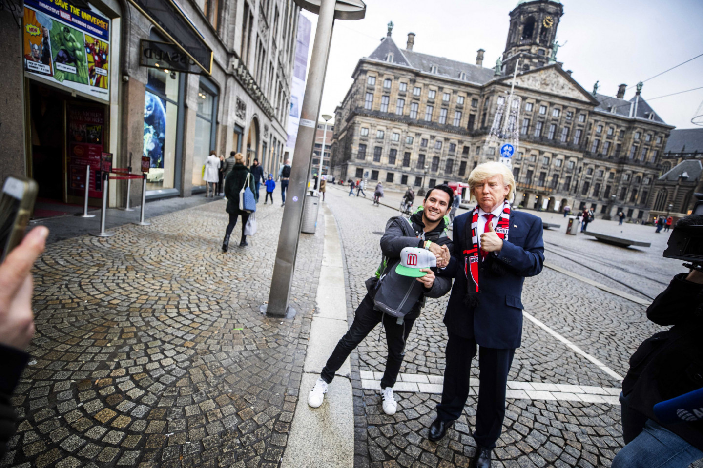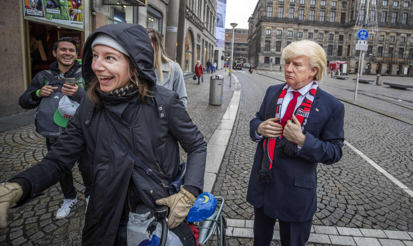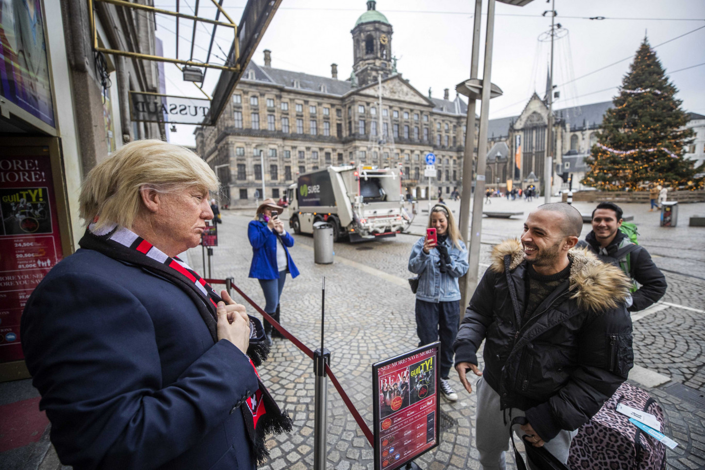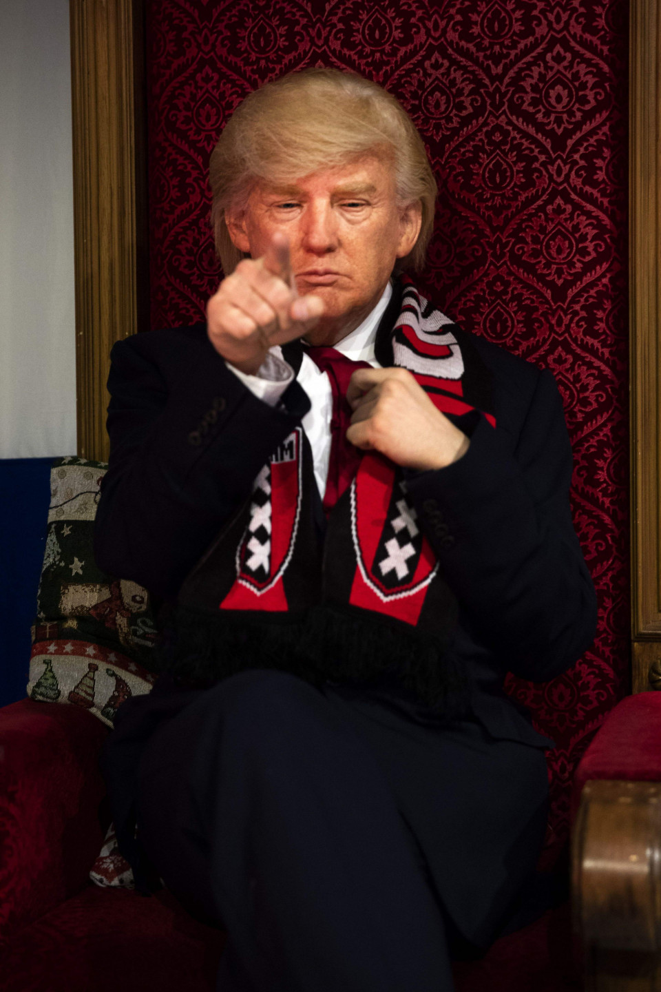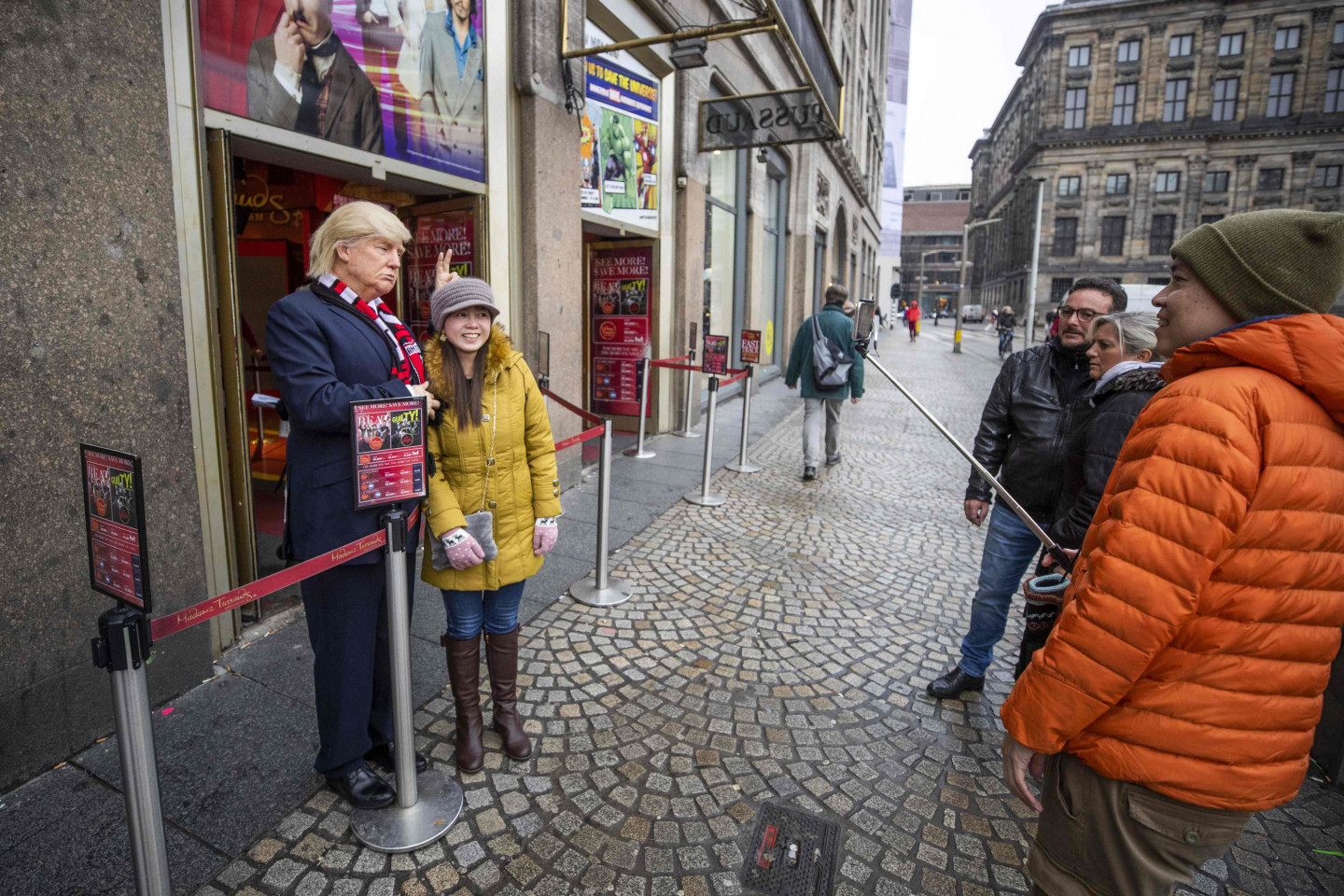 Amsterdamā Madāmas Tiso vaska figūru muzejā paviesojies viesis- aktieris, kurš uzvilcis ļoti reāli ASV prezidenta Dolanda Trampa masku.