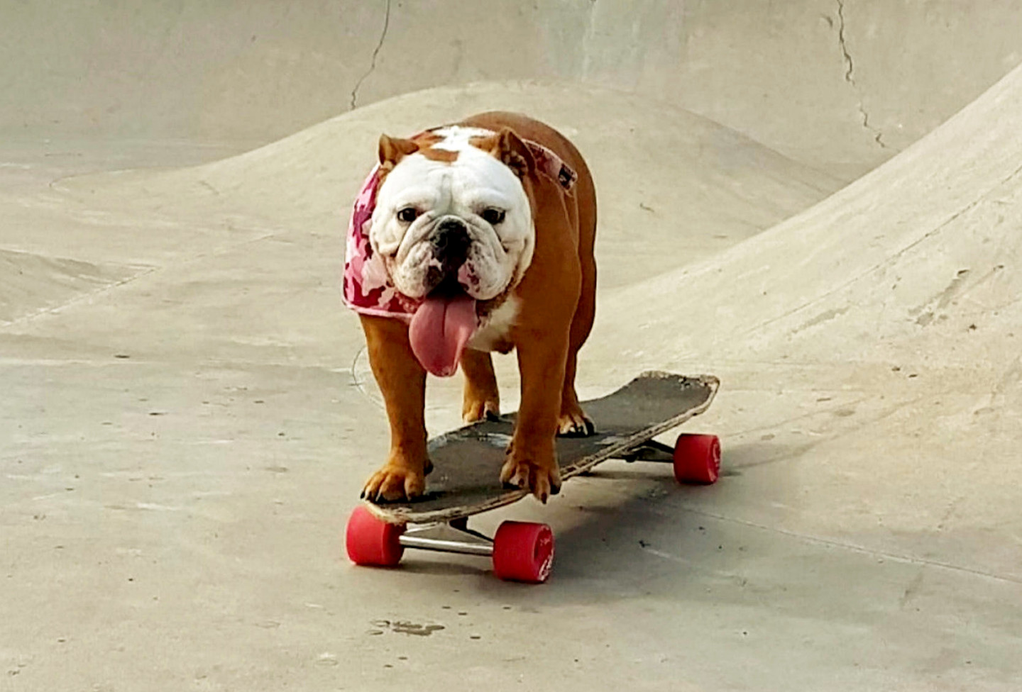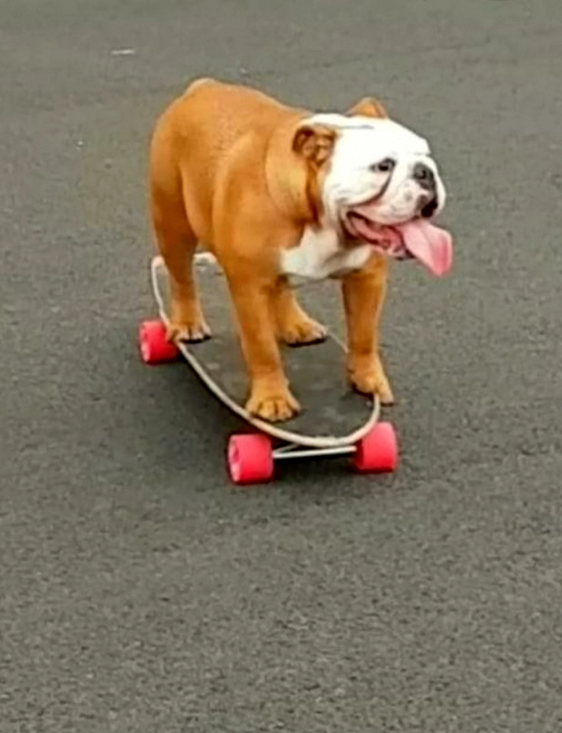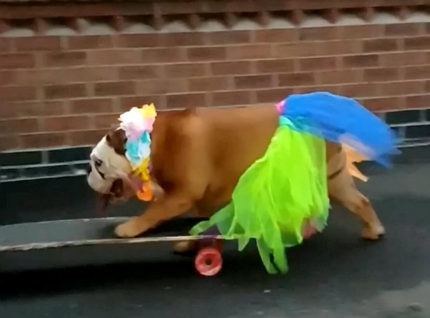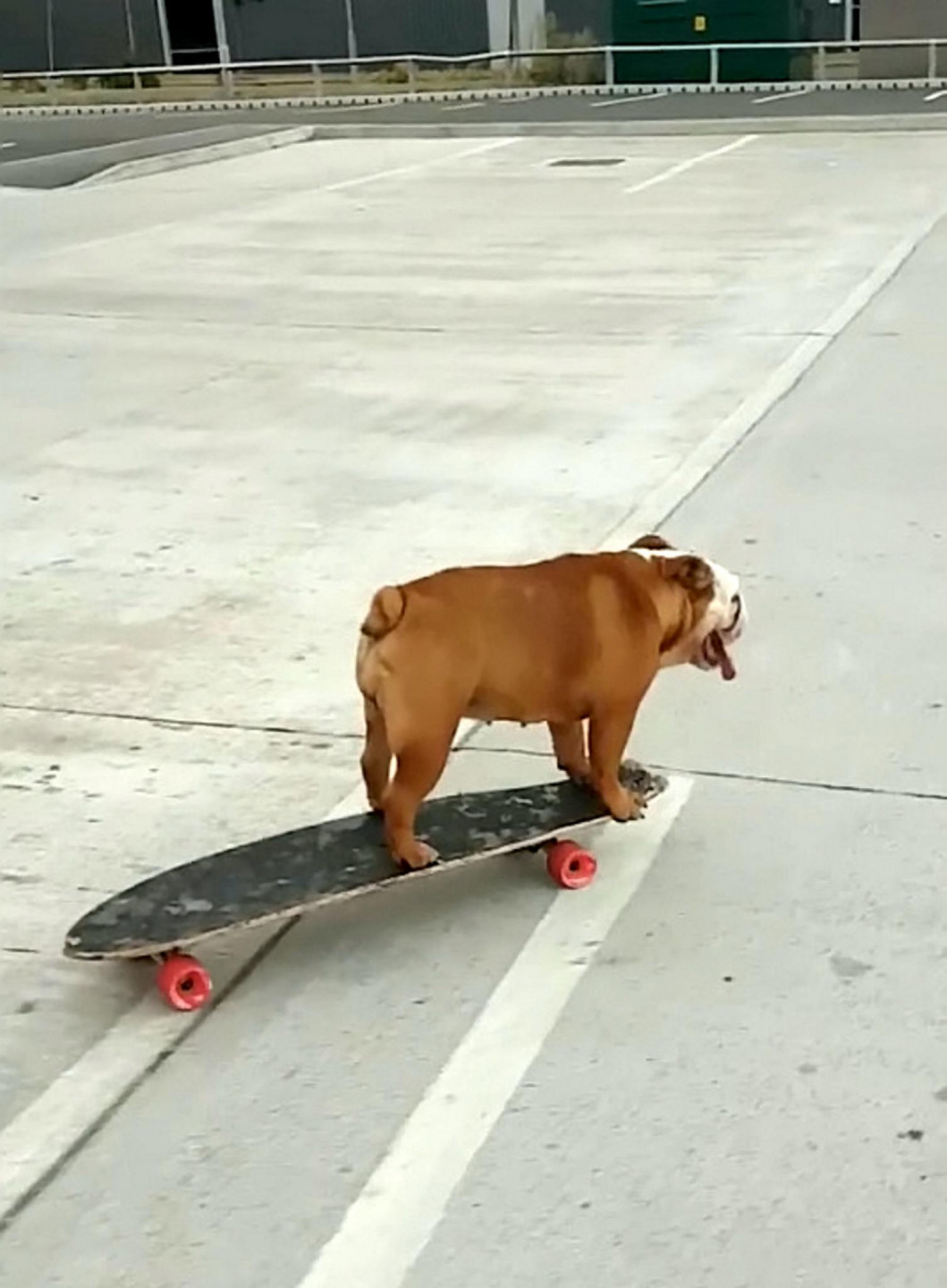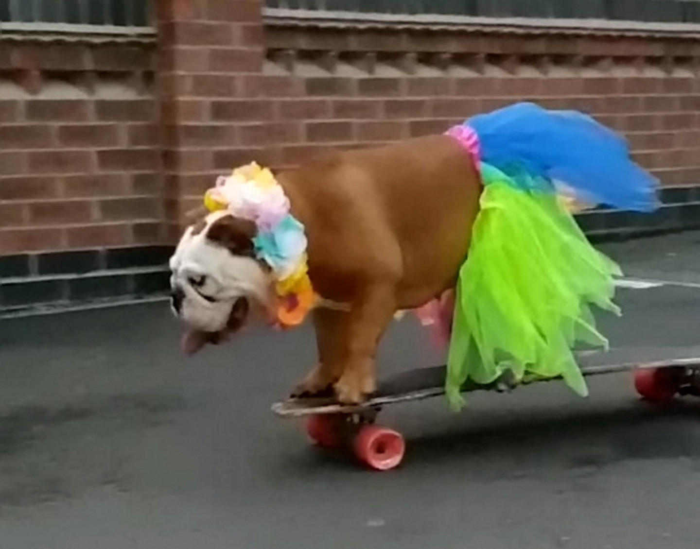 14 mēnešus vecs suņuks vārdā Ķirbis kļuvis par zvaigzni Anglijā, kur apkārtējie ievērojuši, ka viena no mīļākajām zvēriņa nodarbēm ir braukšana ar skeitbordu.