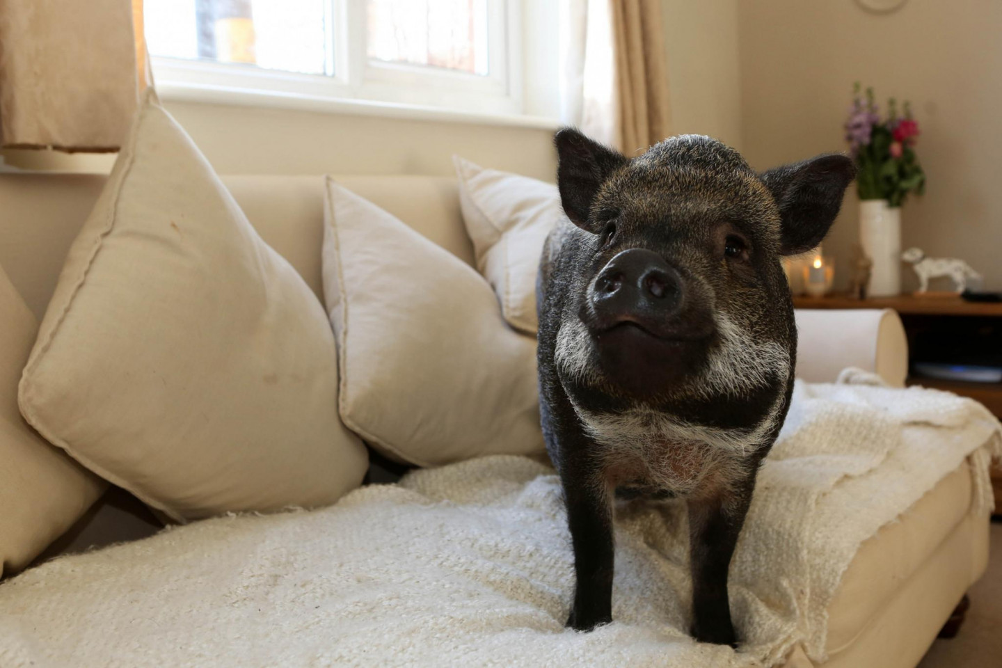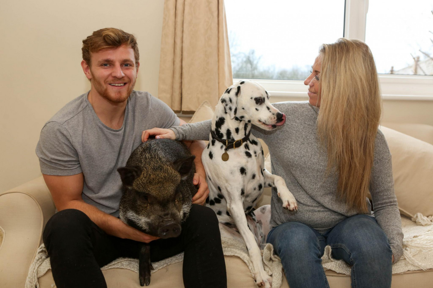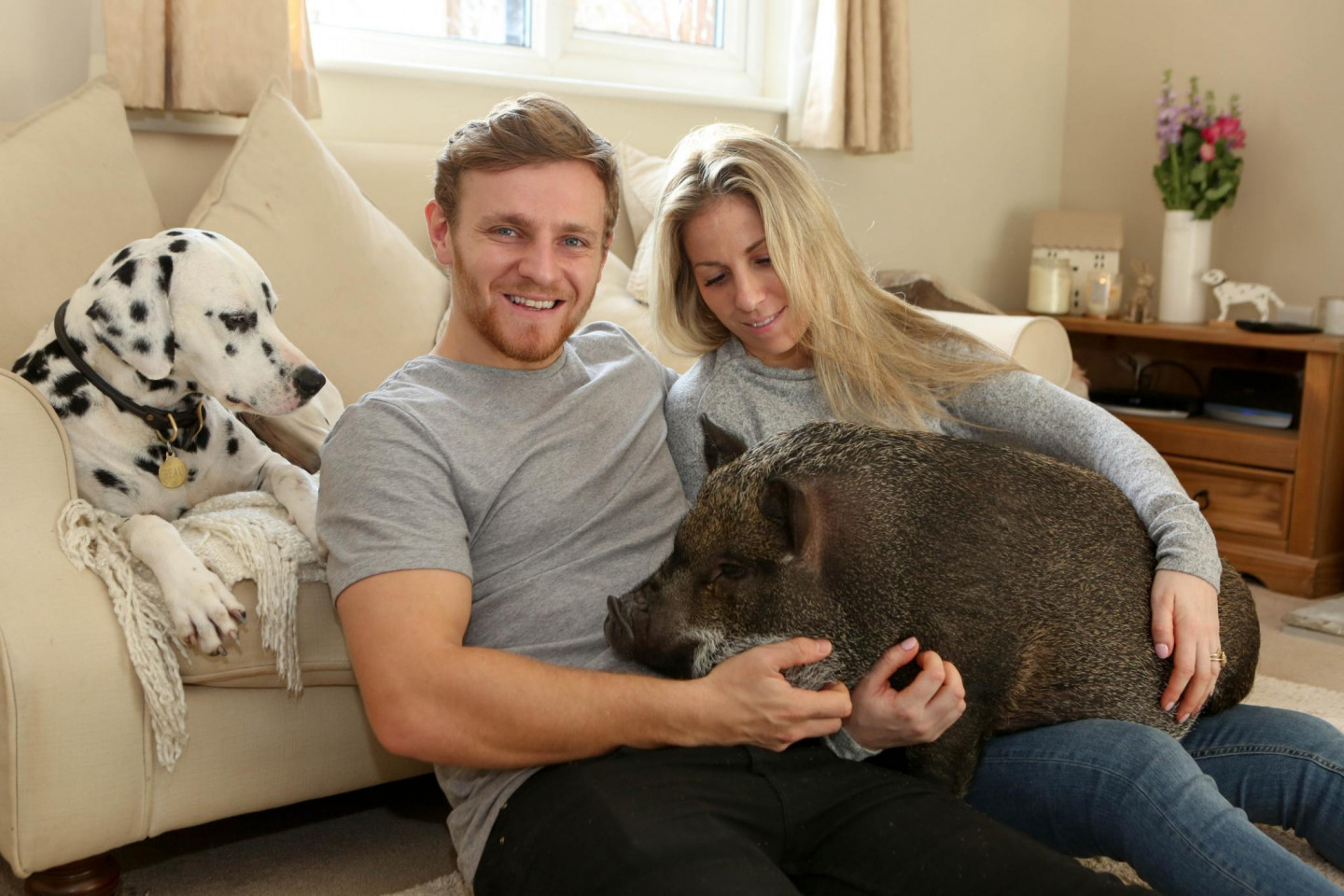 Kāds pāris Anglijā par savu mājdzīvnieku izvēlējušies ne vien dalmācieša šķirnes suni, bet arī cūku.