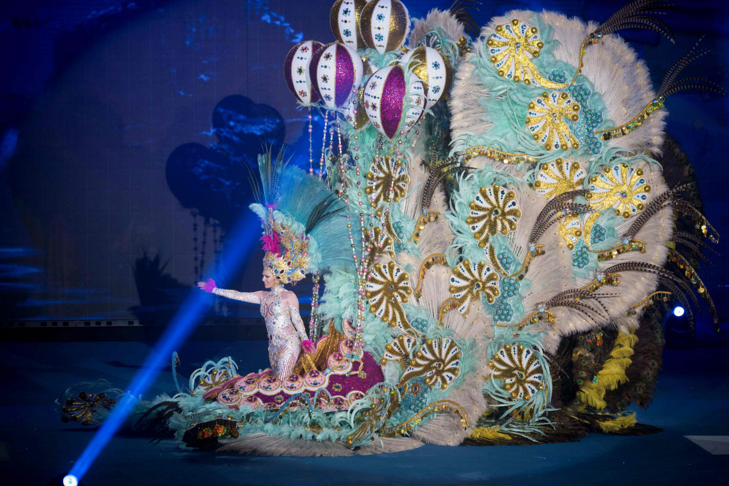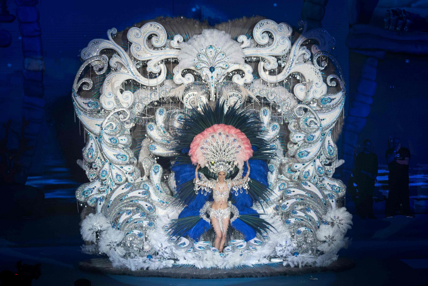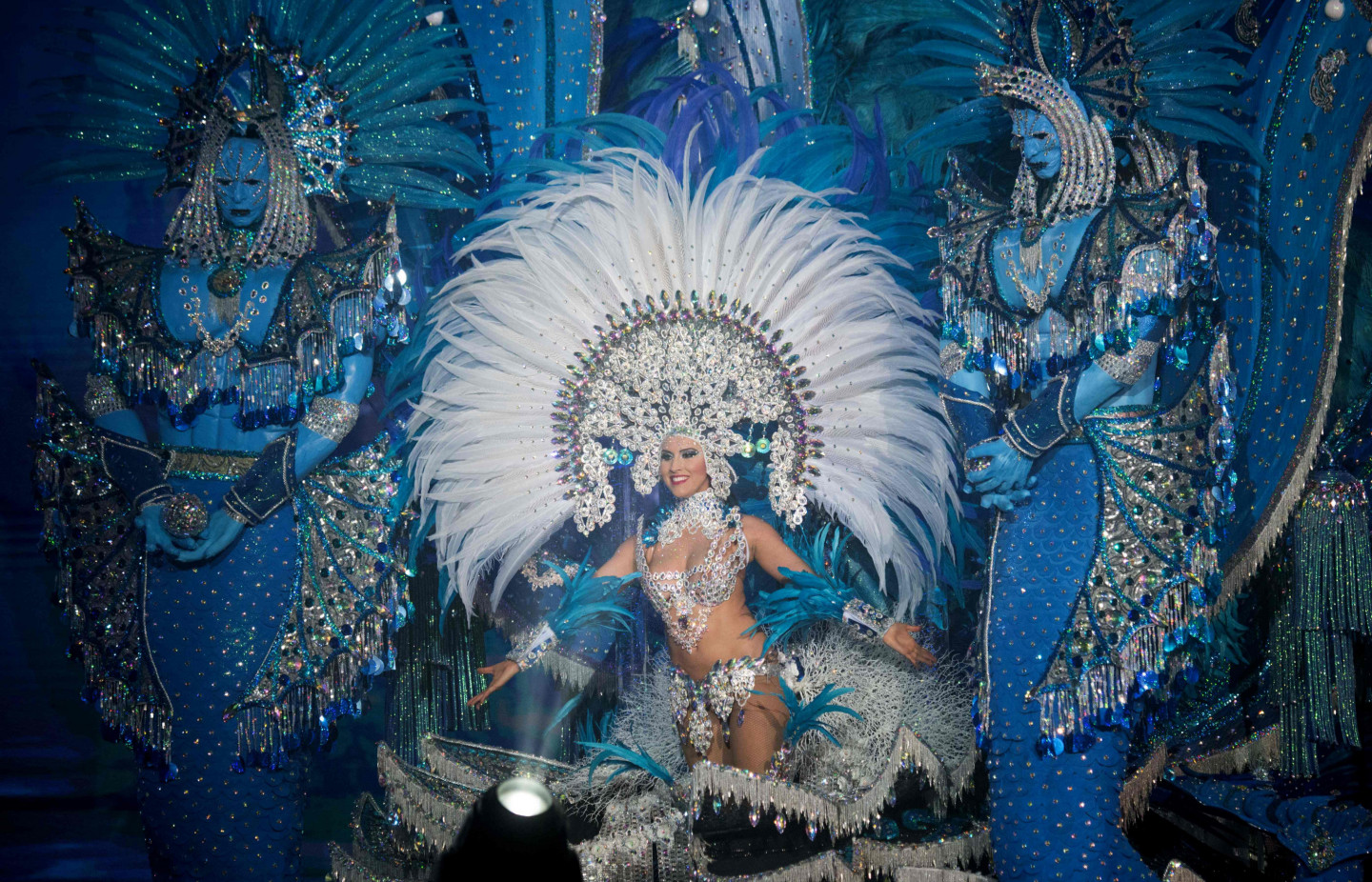 Tenerifē notiek krāšņais Santakrusas karnevāls, kur dalībnieki apbur ar saviem tērpiem.