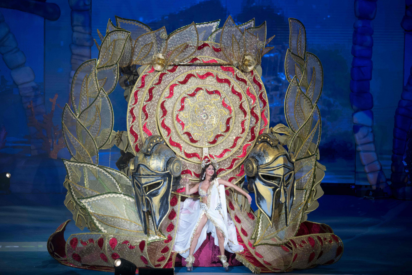 Dāmas krāšņos tērpos sacenšas par Santakrusas karnevāla karalienes titulu