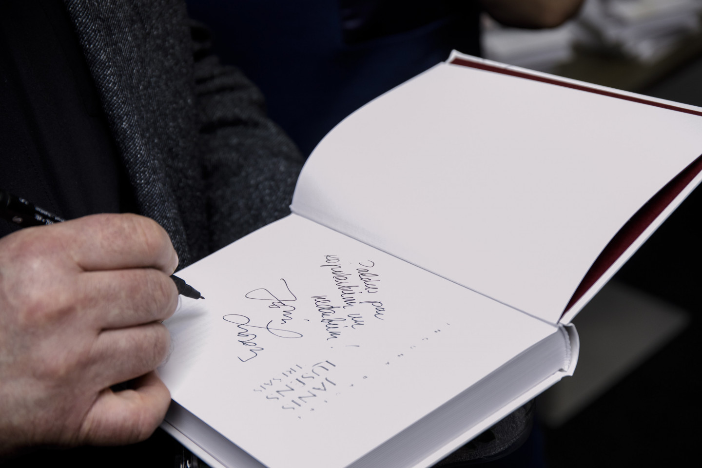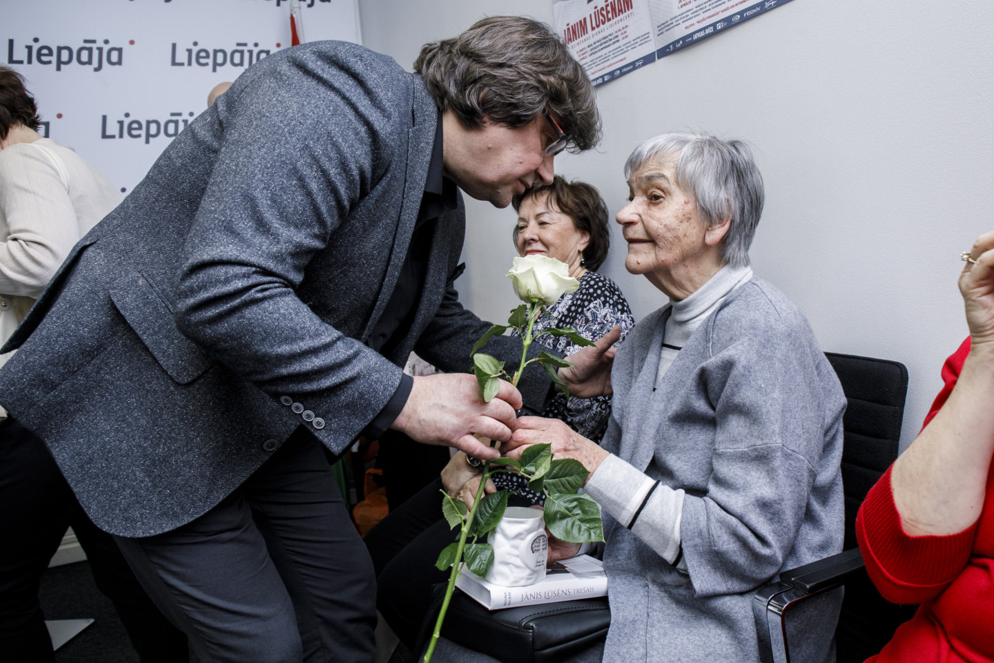 Liepājas pārstāvniecībā Rīgā šodien notika Ingunas Baueres grāmatas "Jānis Lūsēns trešais" atvēršanas svētki, kuros piedalījās pats komponists Jānis Lūsēns ar ģimeni un draugiem.