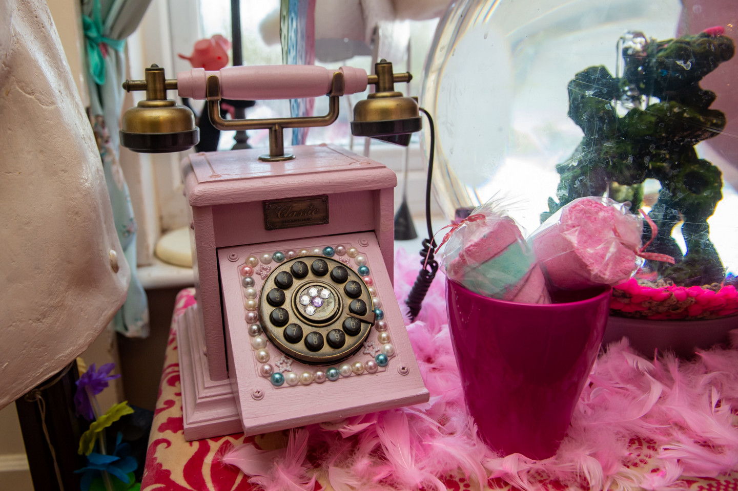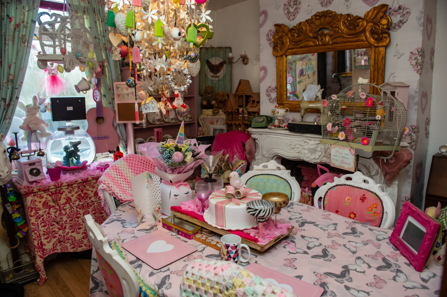 Sallija no Anglijas ir neparasta dāma, kura tik ļoti iecienījusi rozā krāsu, ka teju viss miteklis ir šādos toņos.