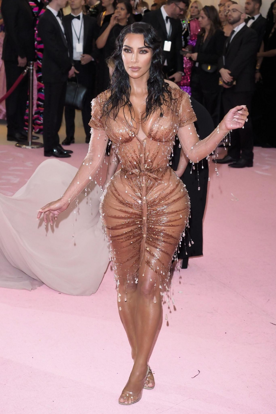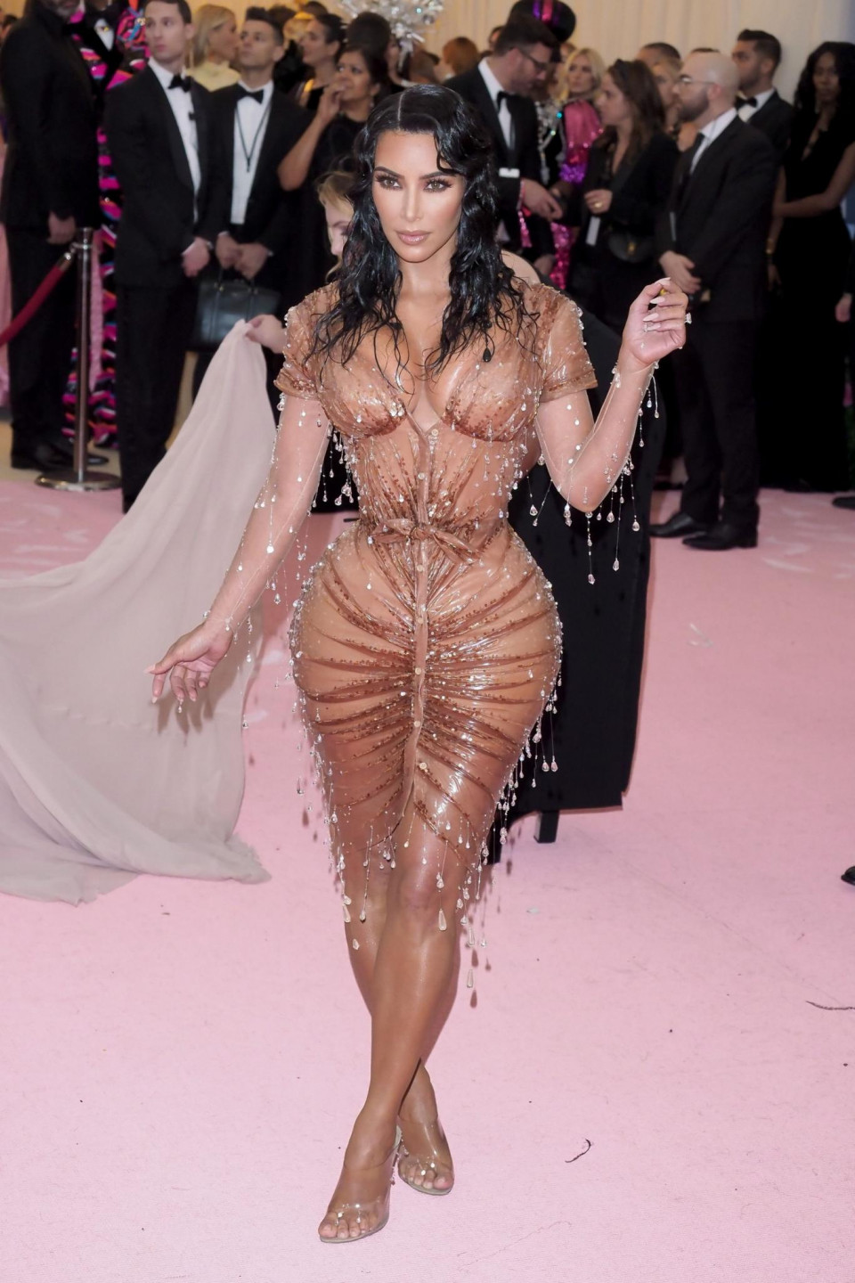 Sabiedrības dāma Kardašjana pat pasākumu muzejā apmeklē pikantā tērpā