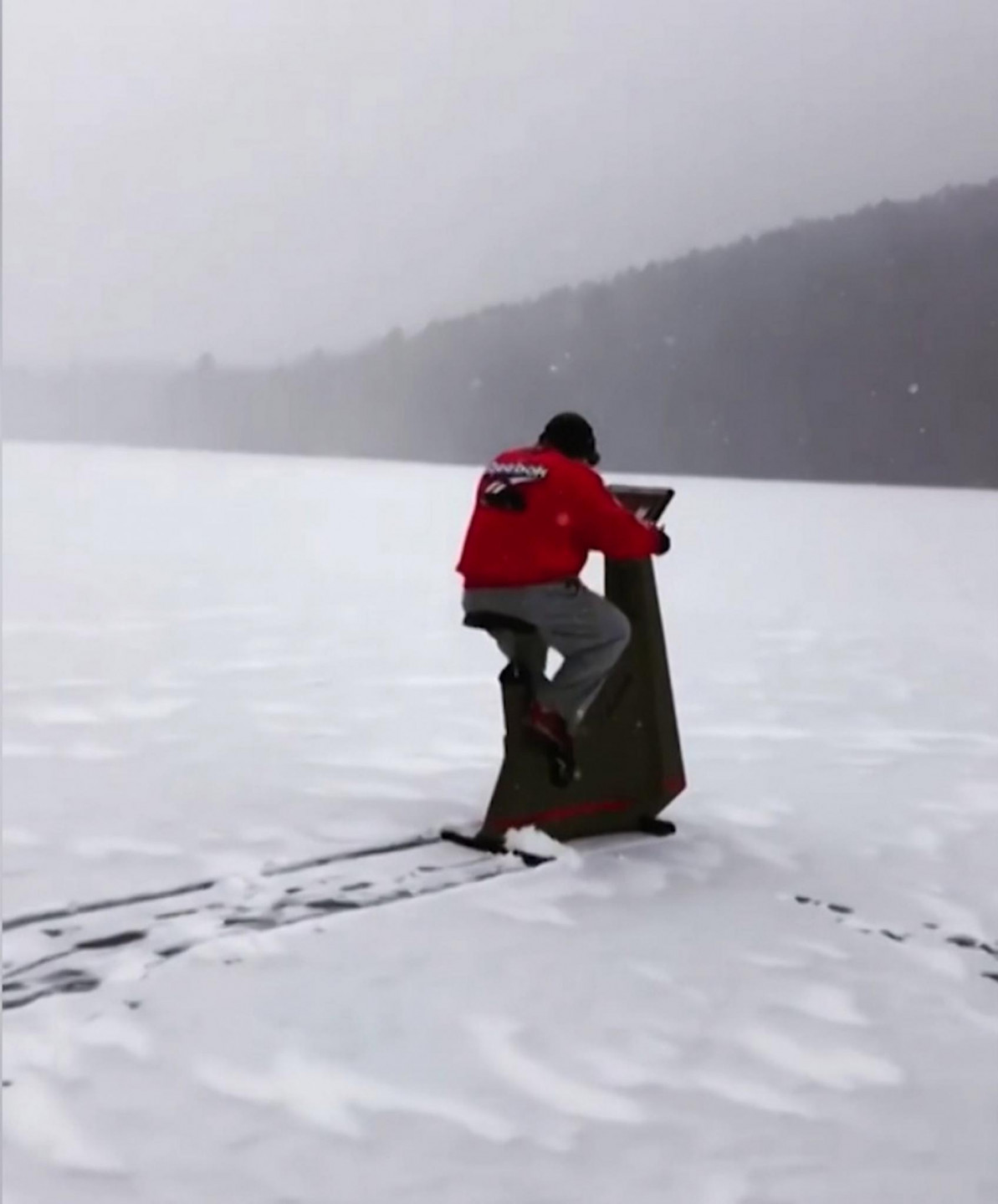 Fitnesa entuziasts demonstrē, kā sportot citādi