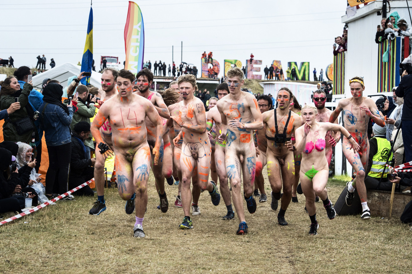 Dānijā “Roskilde Festival” laikā noticis pliko skrējiens, kurā piedalījušies drosmīgākie mūzikas festivāla apmeklētāji. Skrējiena distance bijusi 600 metrus gara.