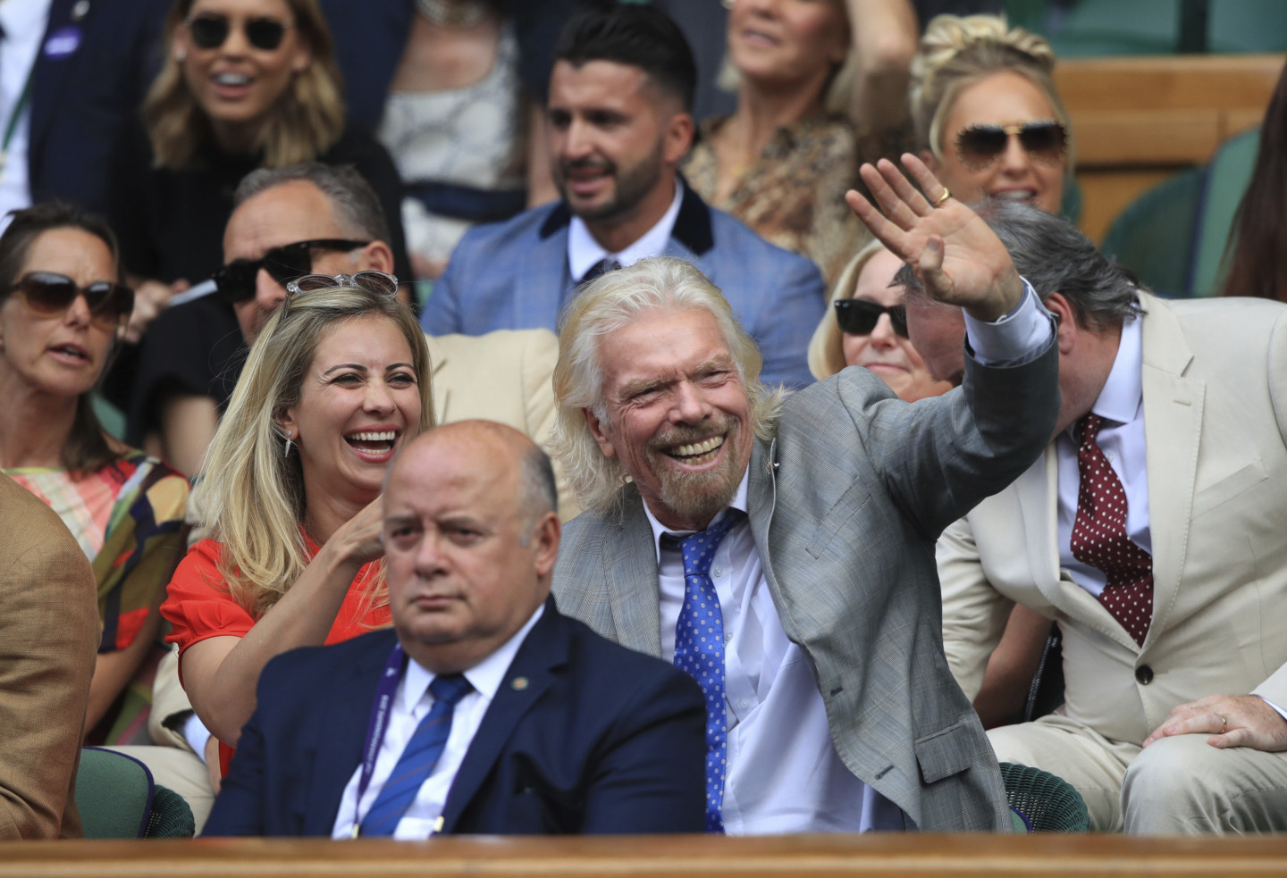 Jau vēstīts, ka prestižo tenisa turnīru apmeklēja Saseksas hercogiene Megana, taču kameras fiksējušas arī citas slavenības – futbola zvaigzni Deividu Bekhemu, biznesa magnātu Ričardu Brensonu un citas zvaigznes.