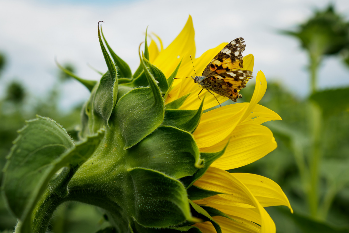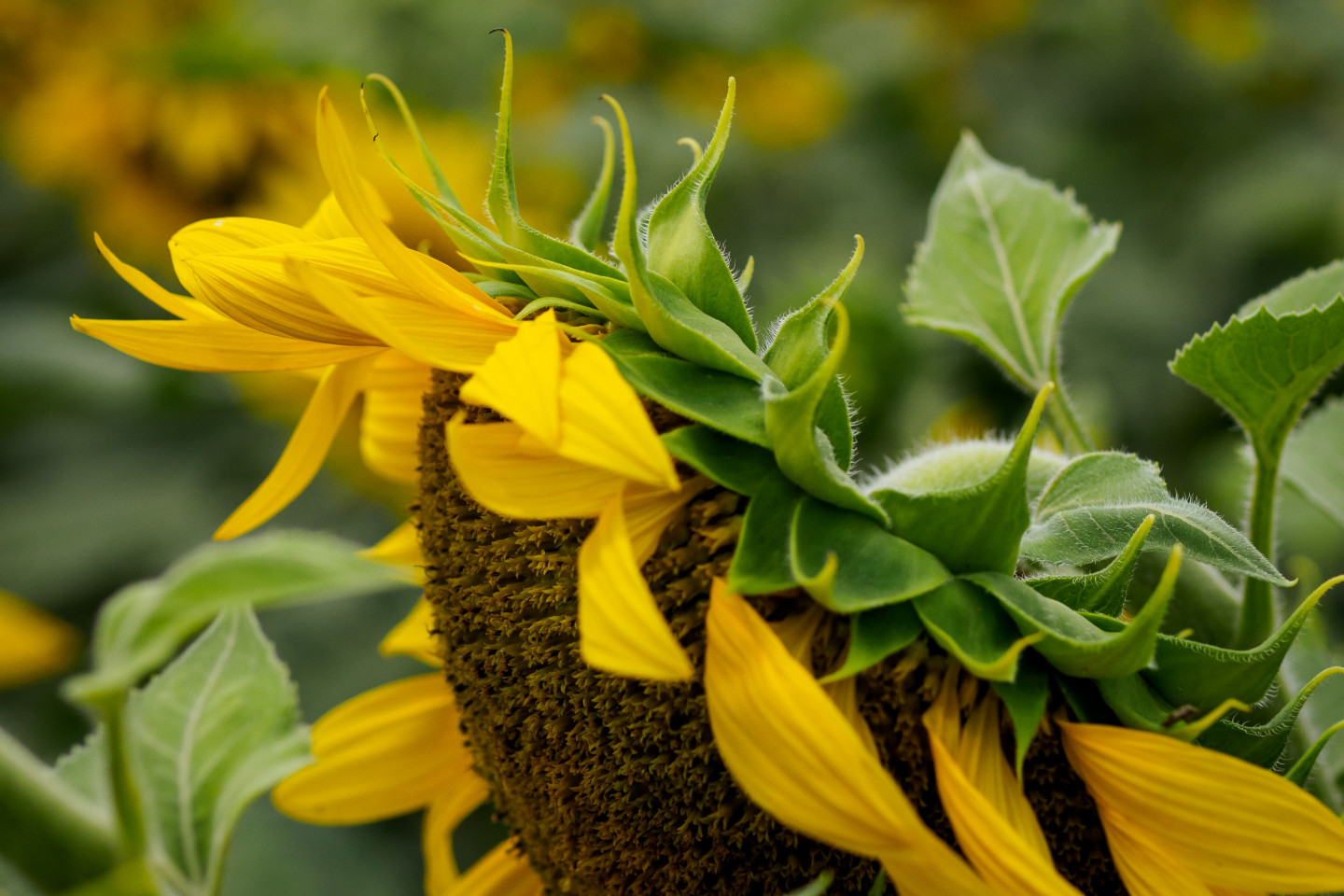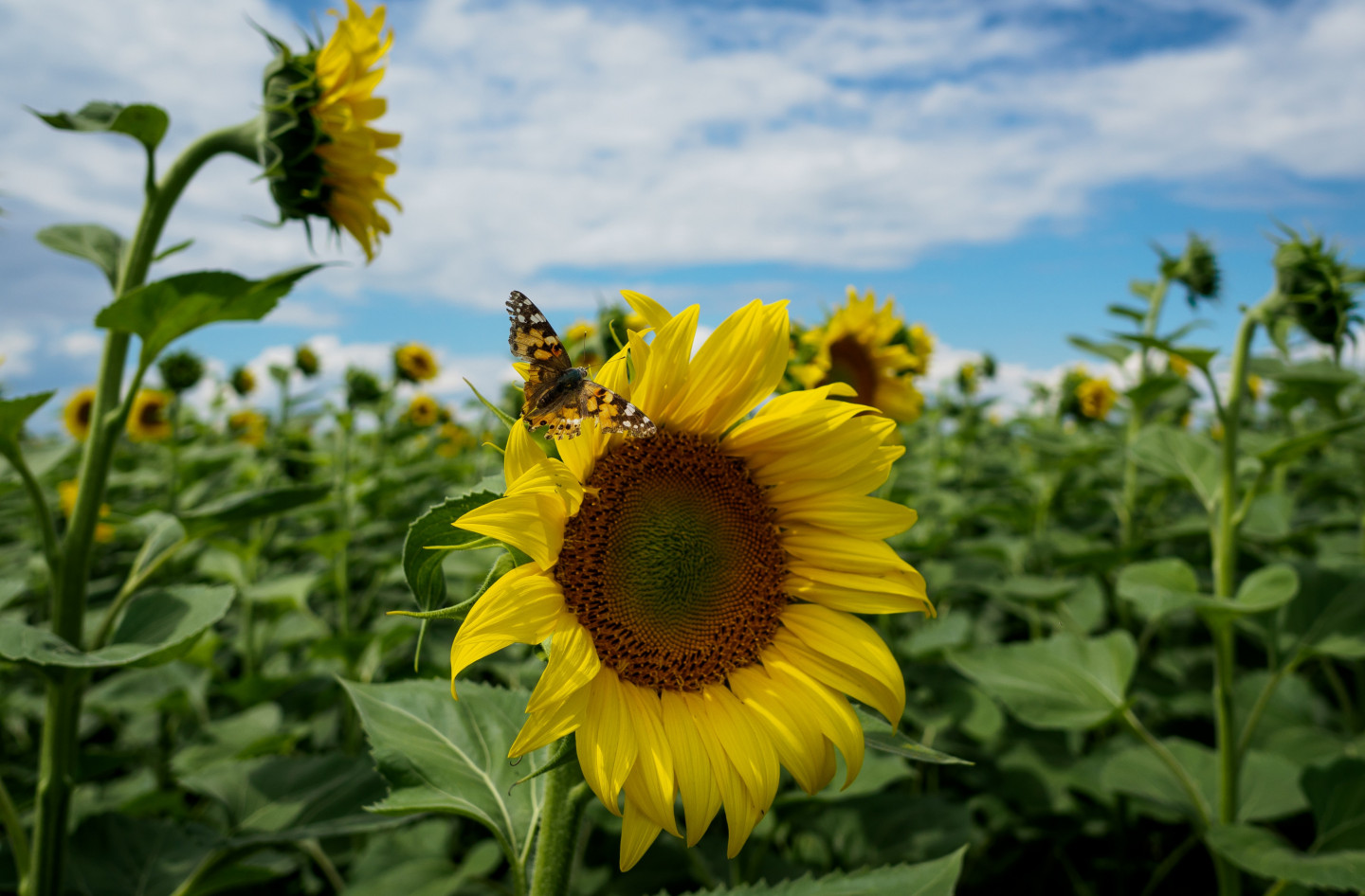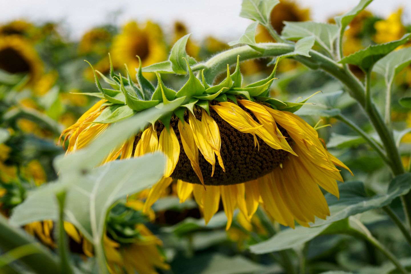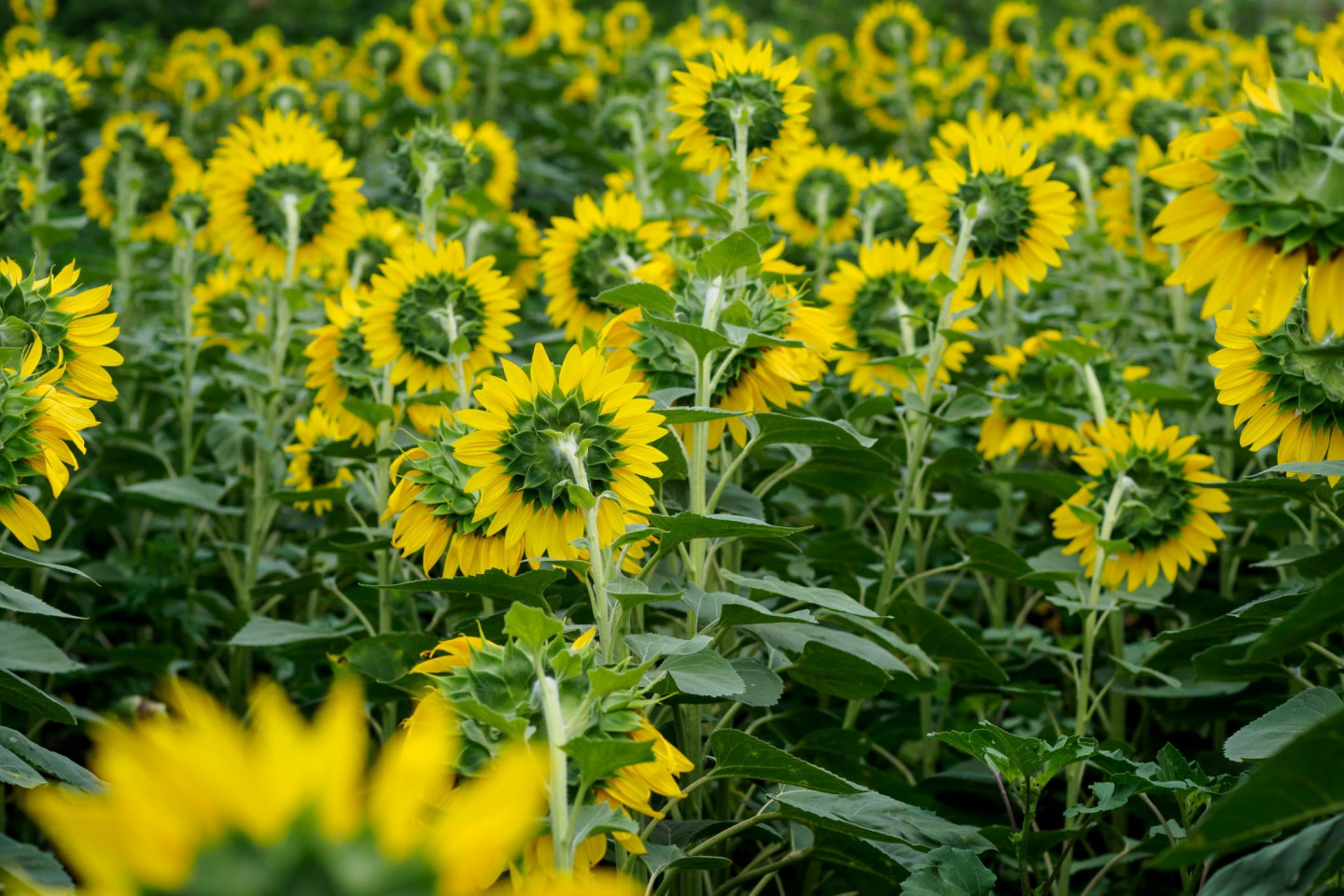 Cik skaisti izskatās ziedošu saulespuķu lauks