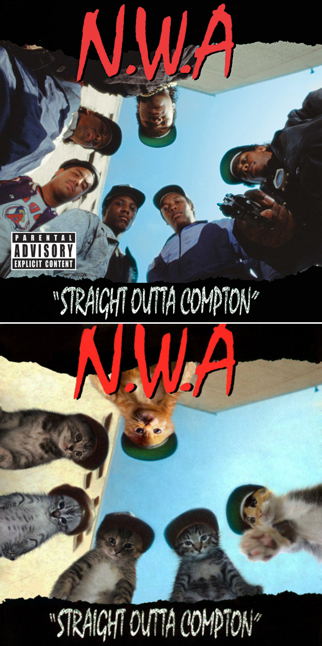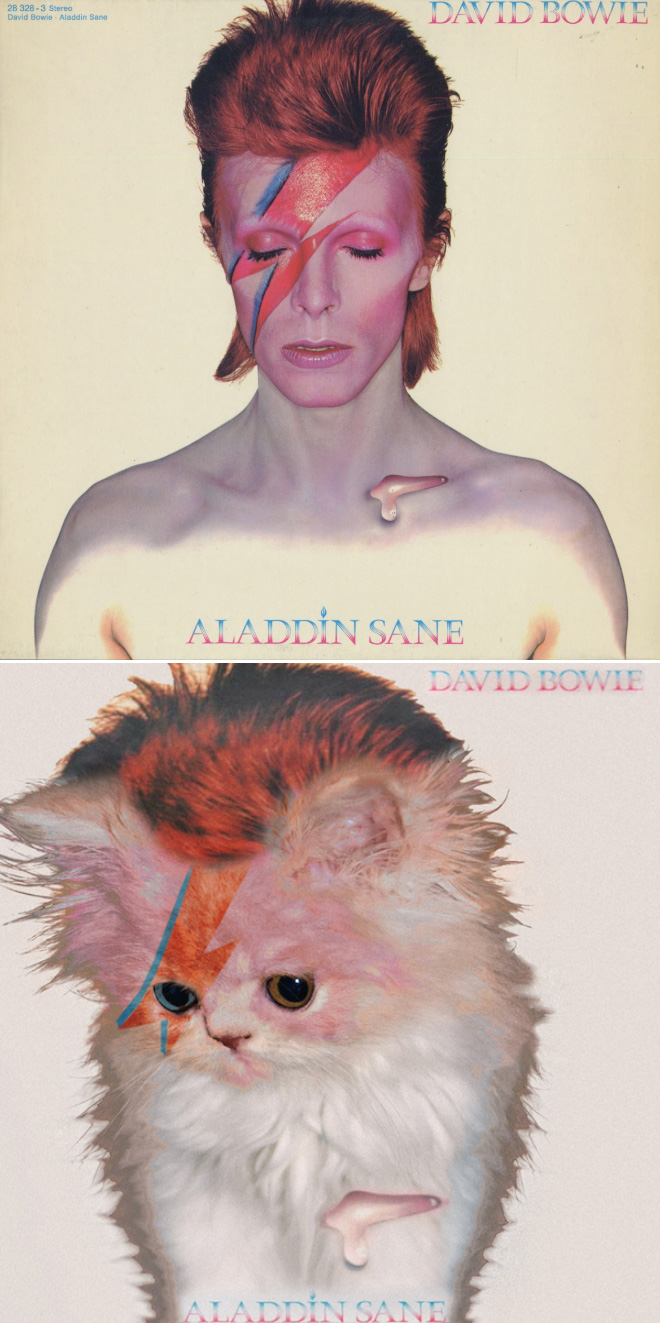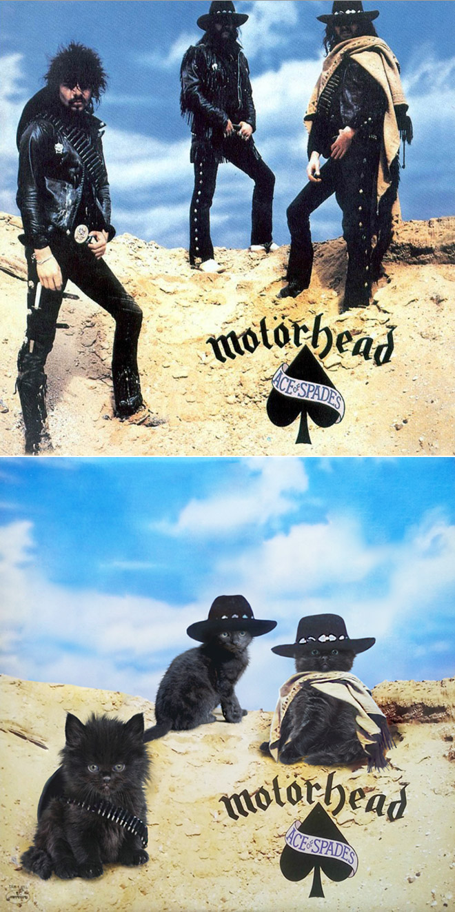 Kaķu mīļiem patiks! Pūkaiņi pārņem ikoniskos mūzikas albumu vāciņus
