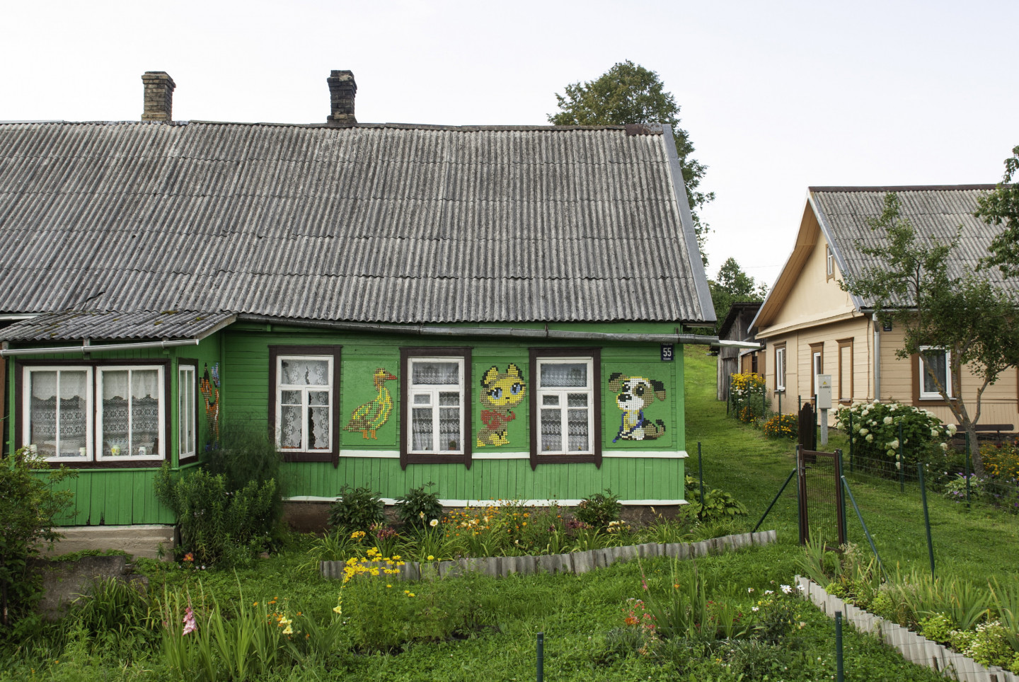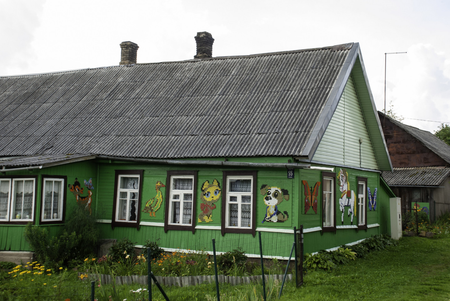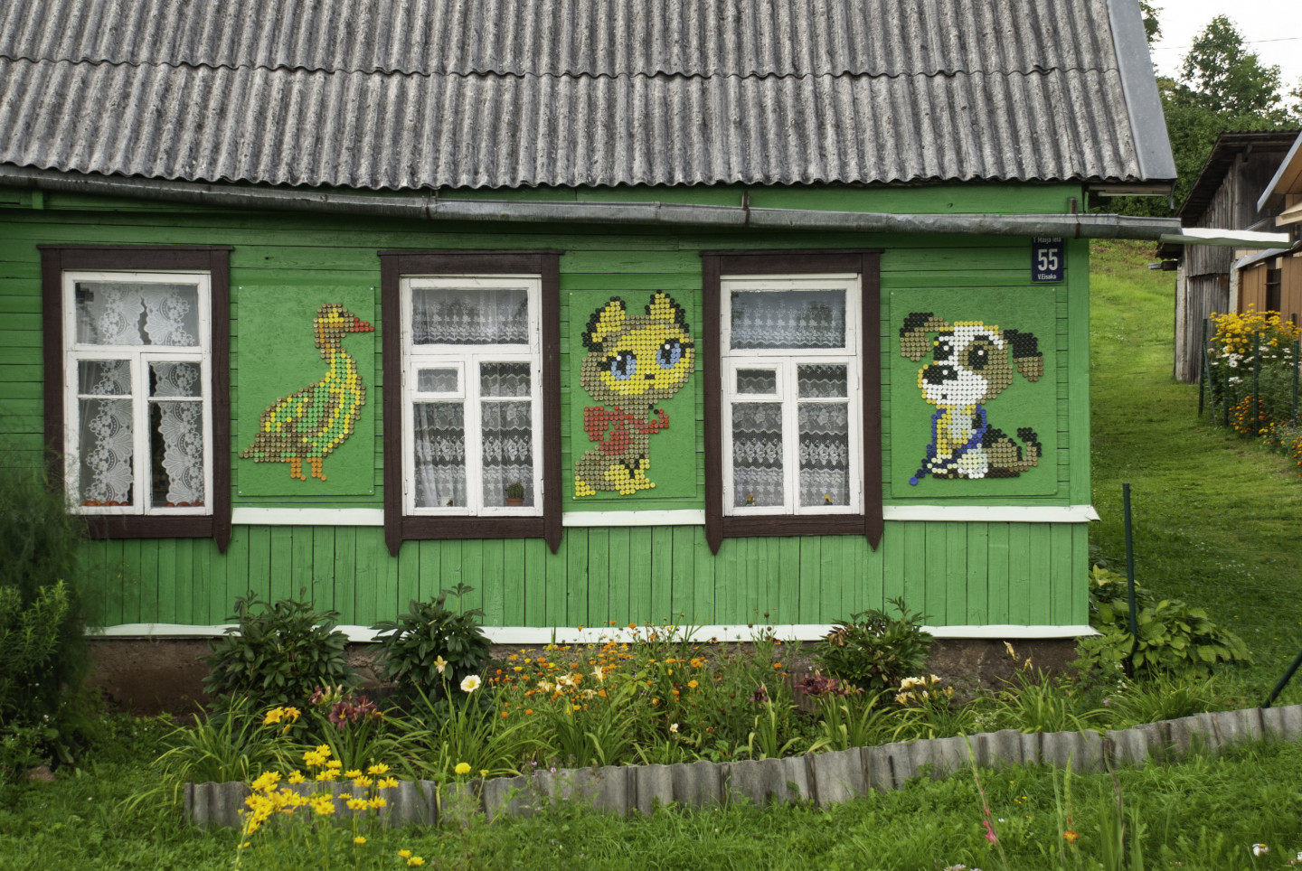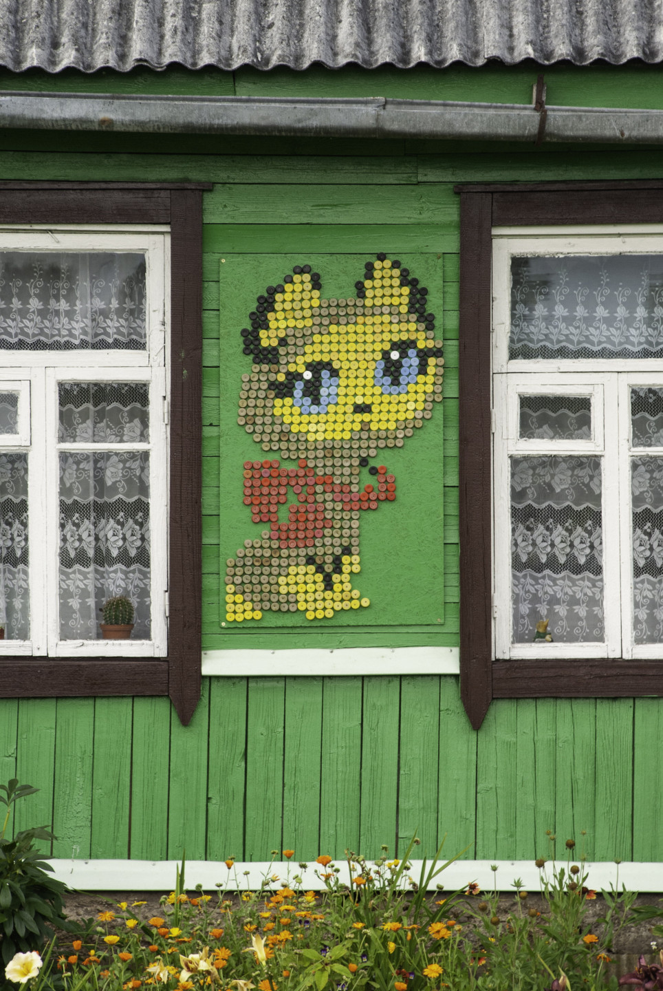 Latgales viensētas sienas rotātas ar dekoriem, kas veidoti no pudeļu korķiem