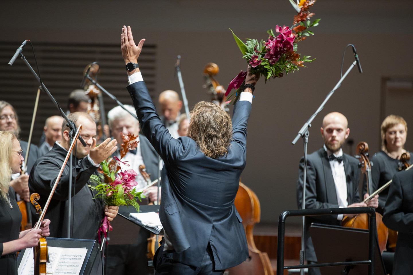 Piektdien, 4.oktobrī Liepājas koncertzālē "Lielais dzintars" pasaules pirmatskaņojumu piedzīvoja Kārļa Lāča Latvju simfonija. Pie Liepājas Simfoniskā orķestris diriģenta diriģenta pults stājās Atvars Lakstīgala. Šajā vakarā publika baudīja arī pasaulslaveno Rahmaņinova Trešo klavierkoncertu Vestarda Šimkus interpretācijā.