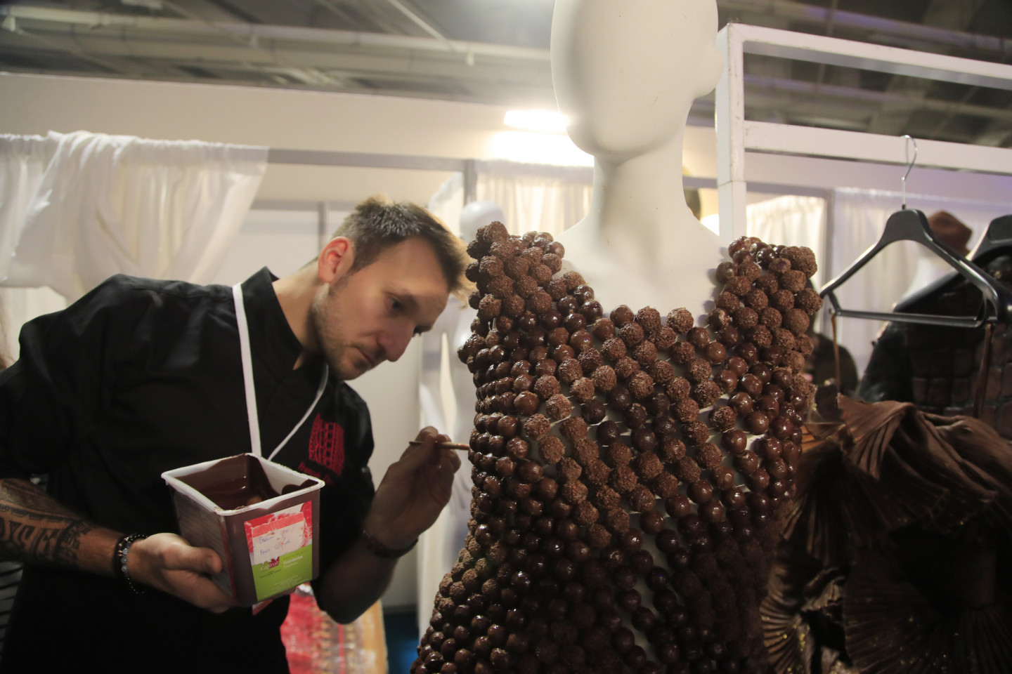 Parīzē demonstrēti no šokolādes radīti tērpi