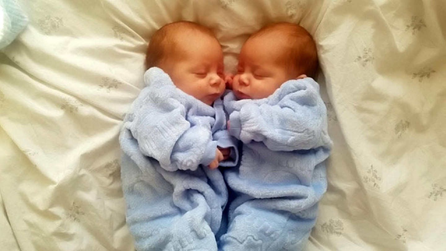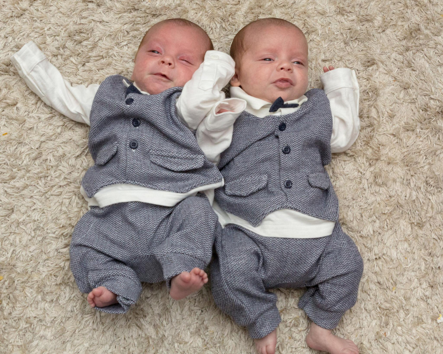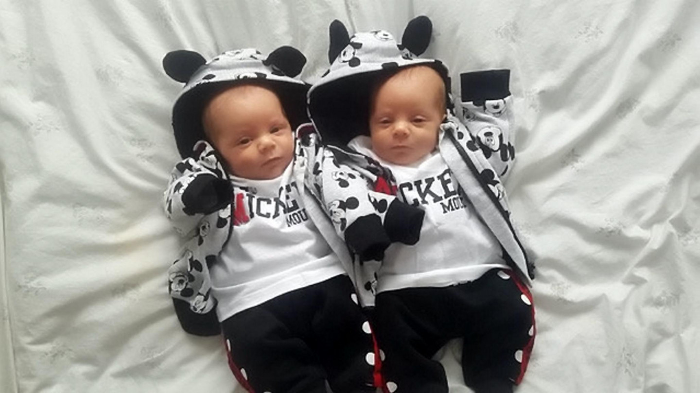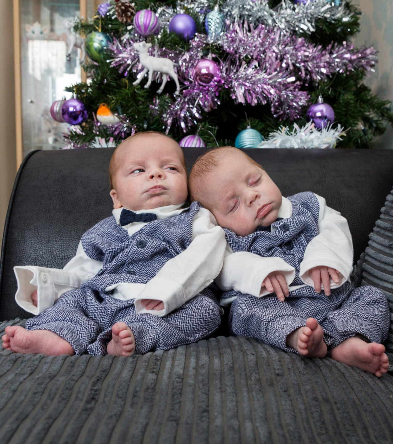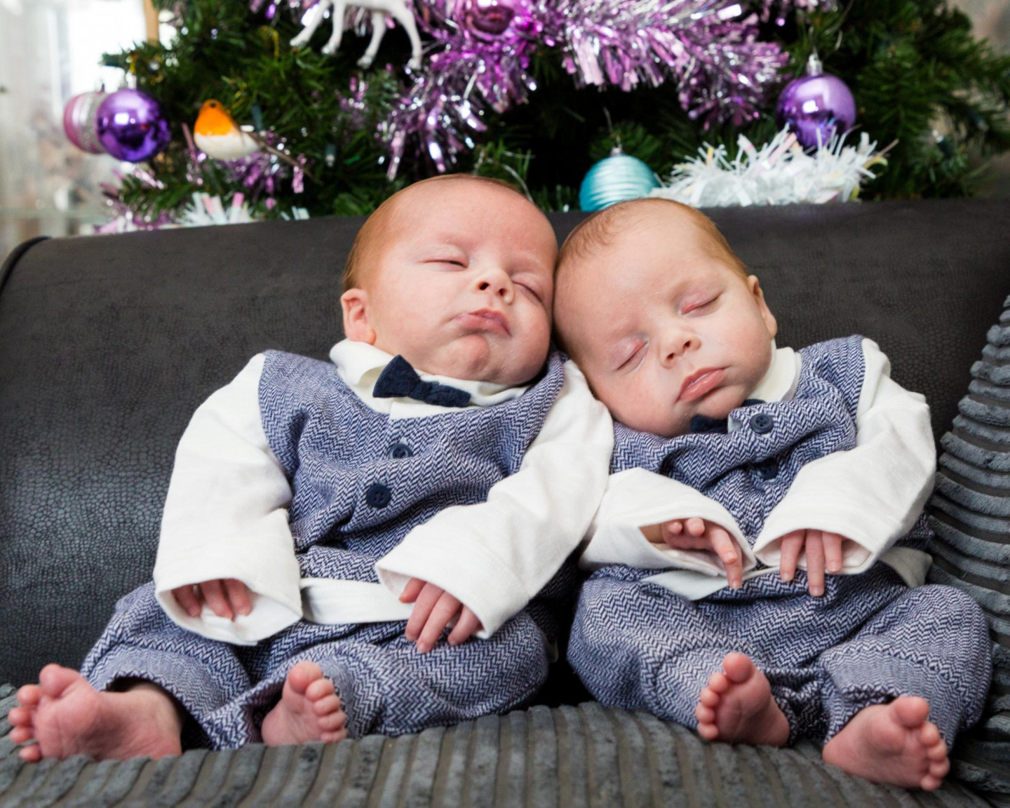 Māmiņa parāda, kā Ziemassvētku laikā ģērbj dvīnīšus