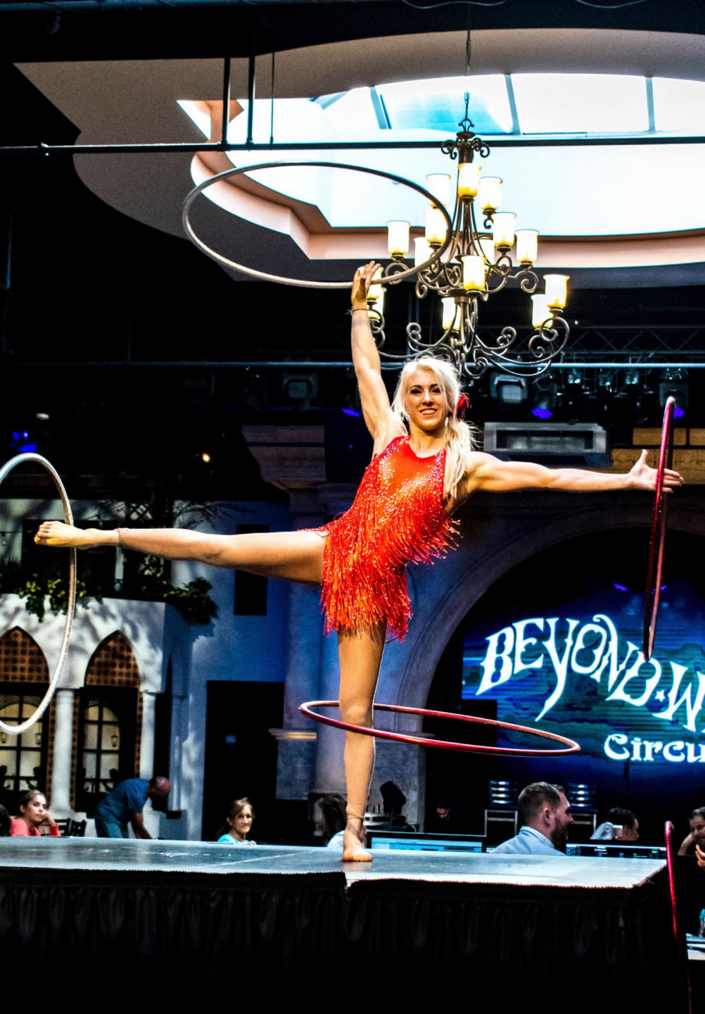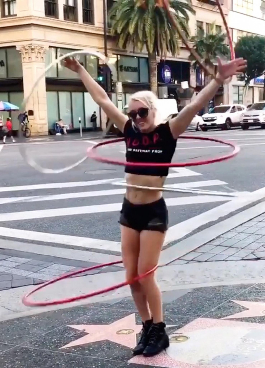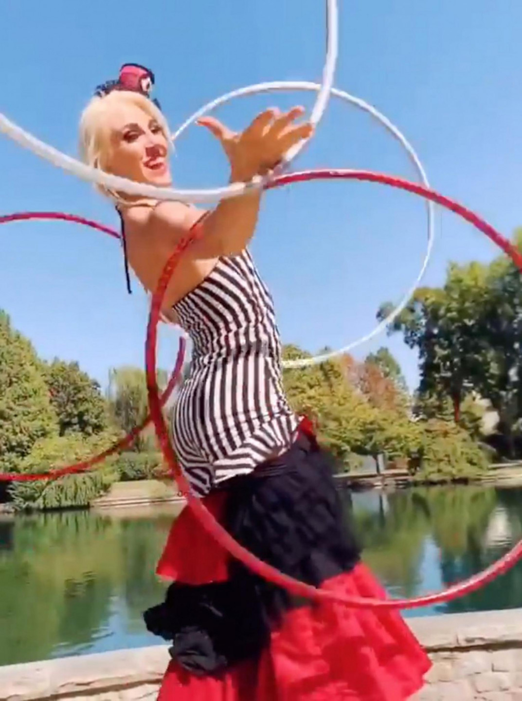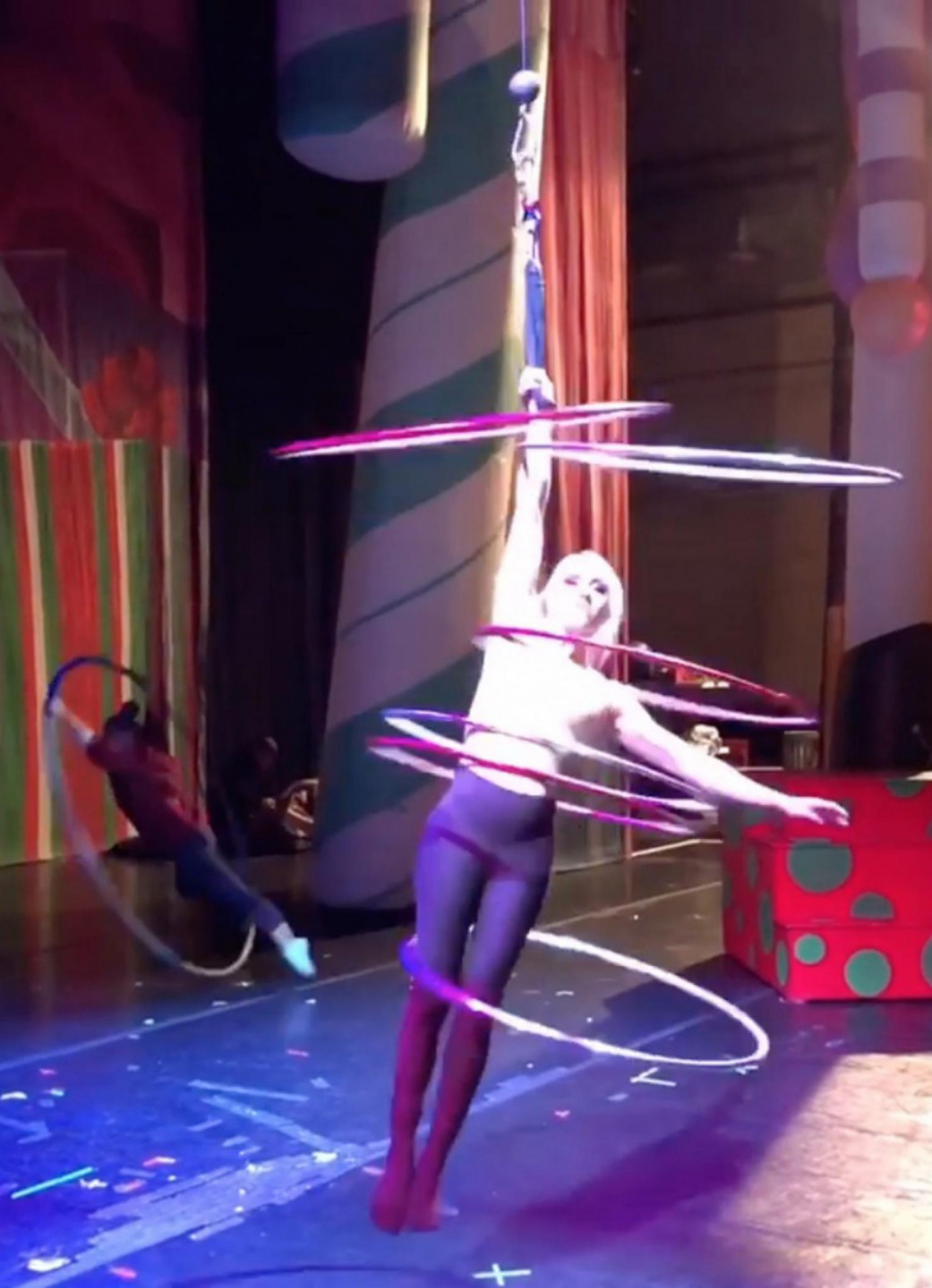 Re, cik veikli dāma spēj darboties ar vingrošanas rinķiem