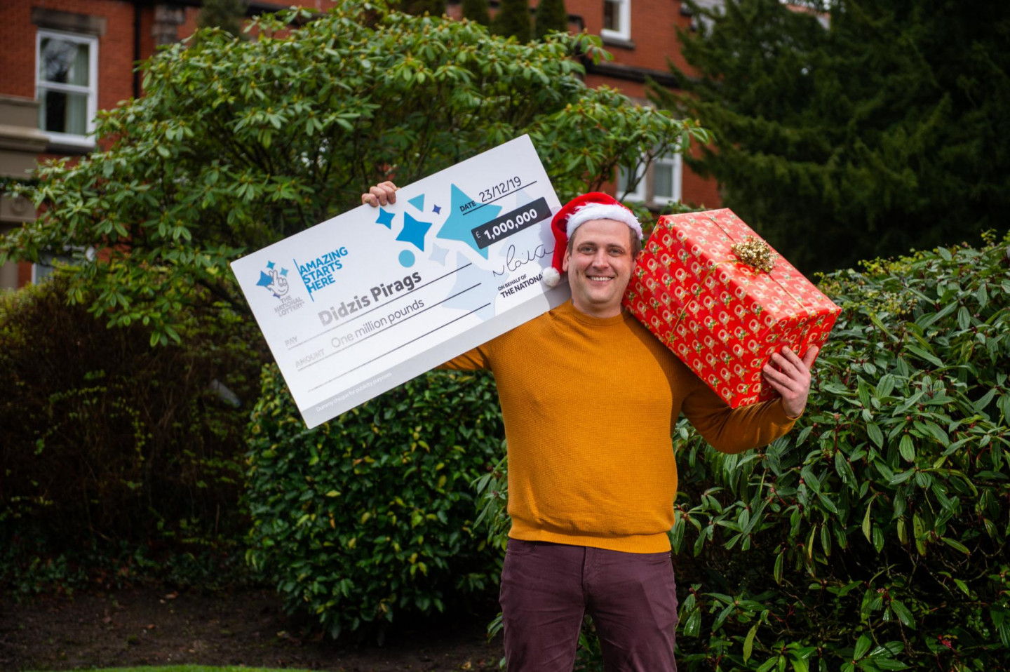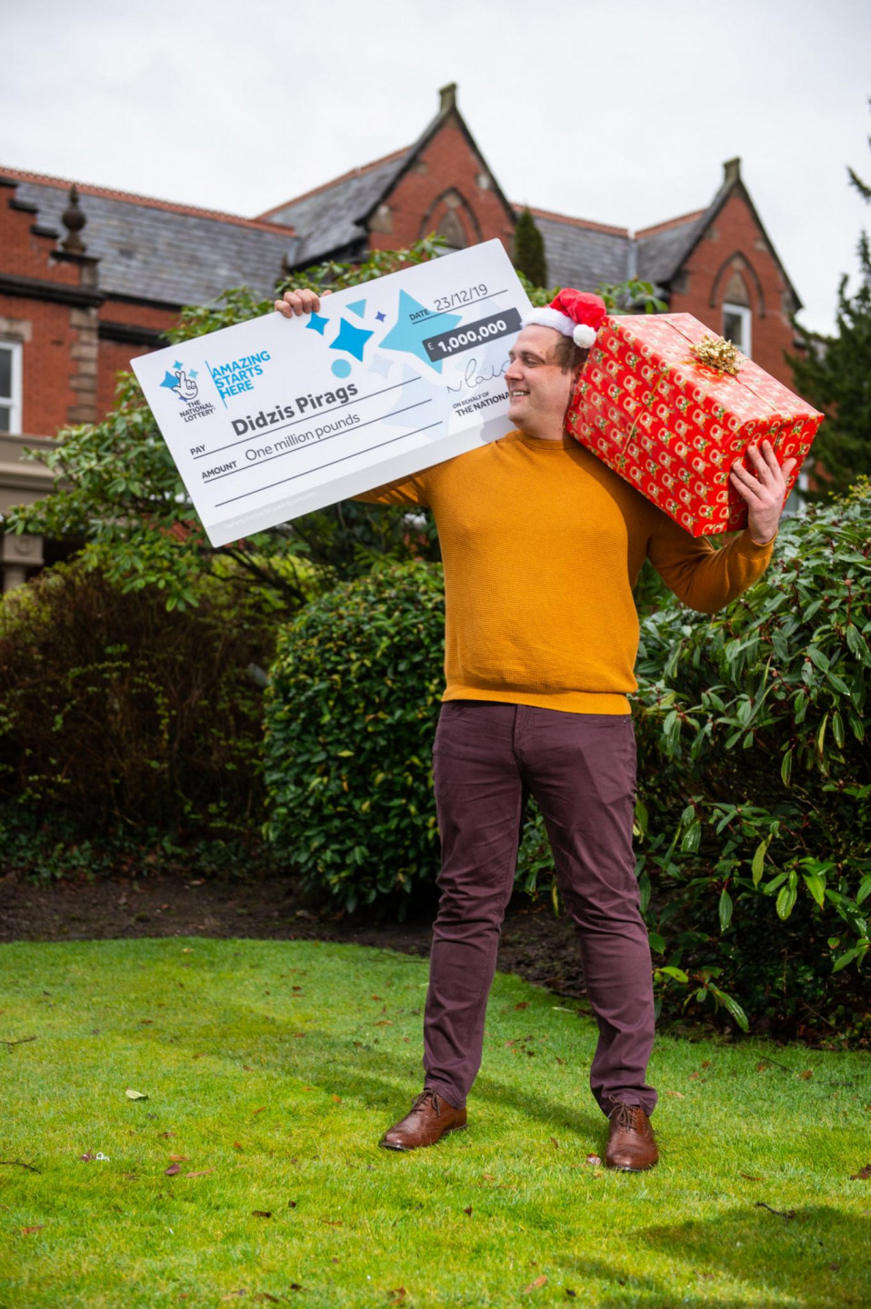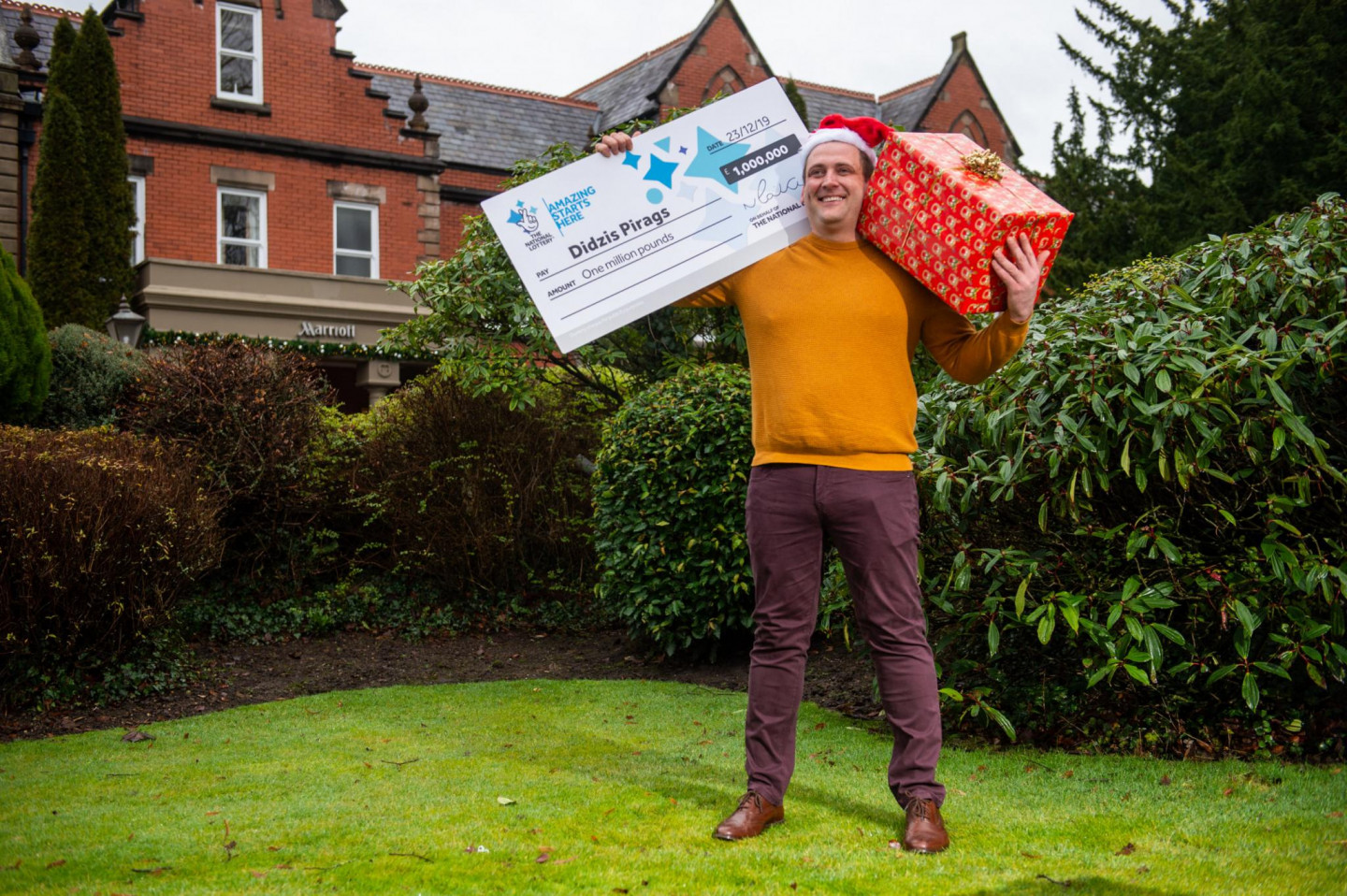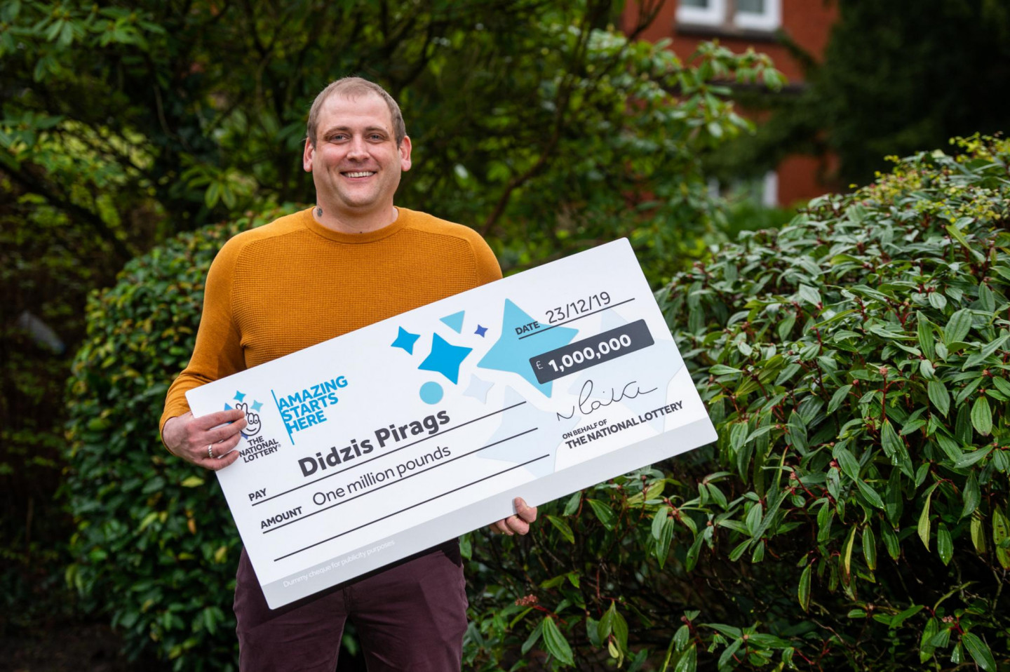 Jau vēstīts, ka gada izskaņā Anglijā veiksme uzsmaidījusi vientuļajam tēvam Didzim Pīrāgam no Latvijas, kurš loterijā laimējis miljonu mārciņu. Fotogrāfs steidzis iemūžināt, kā tad veiksminieks līksmojis vērtīgā laimesta pasniegšanas brīdī.