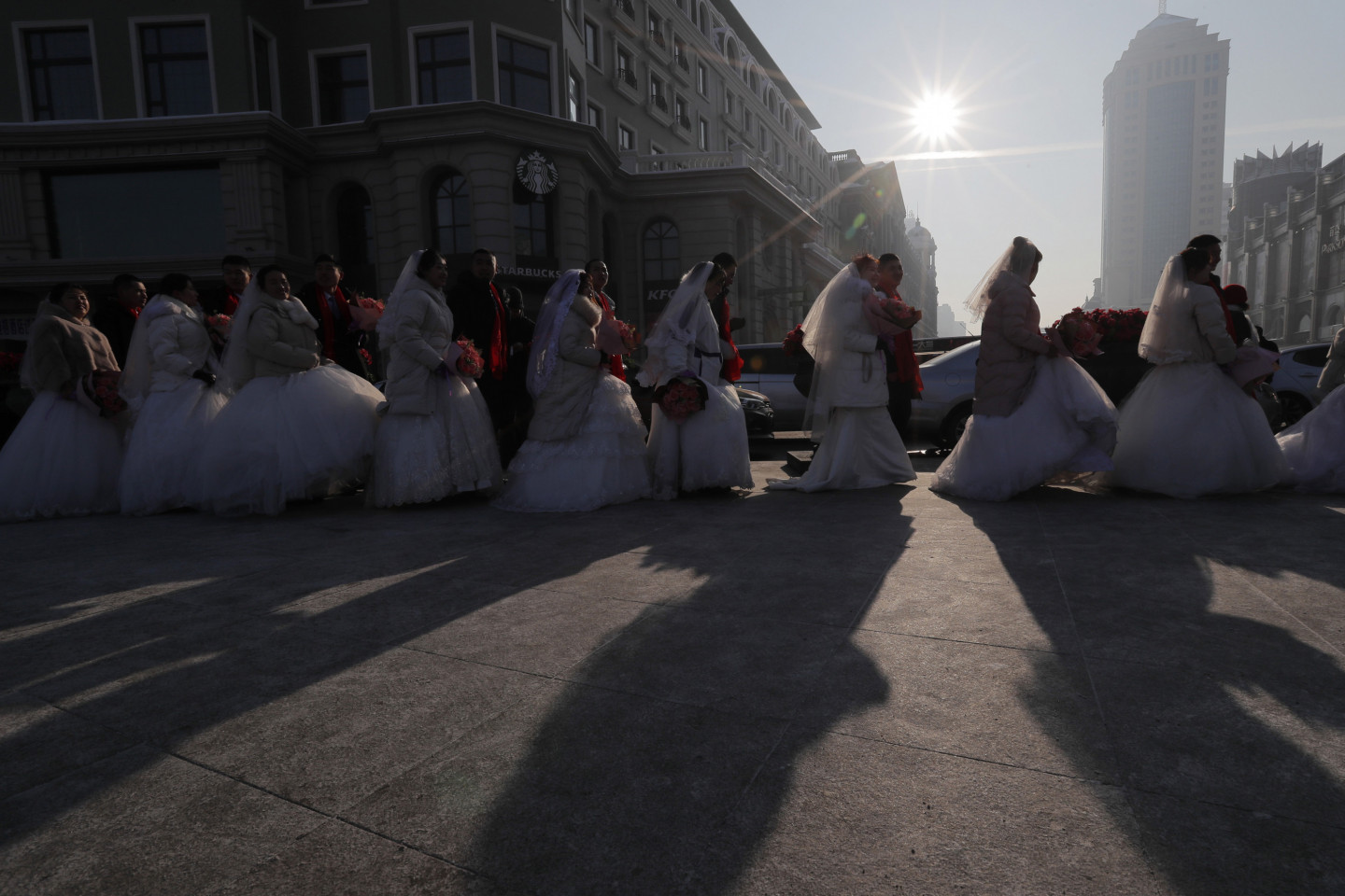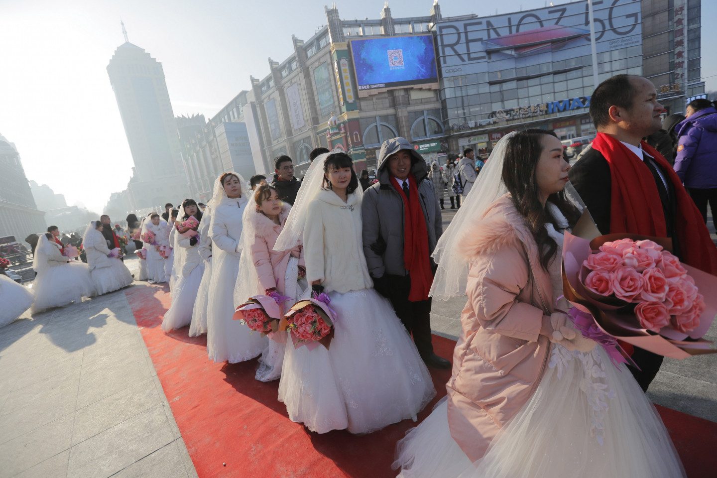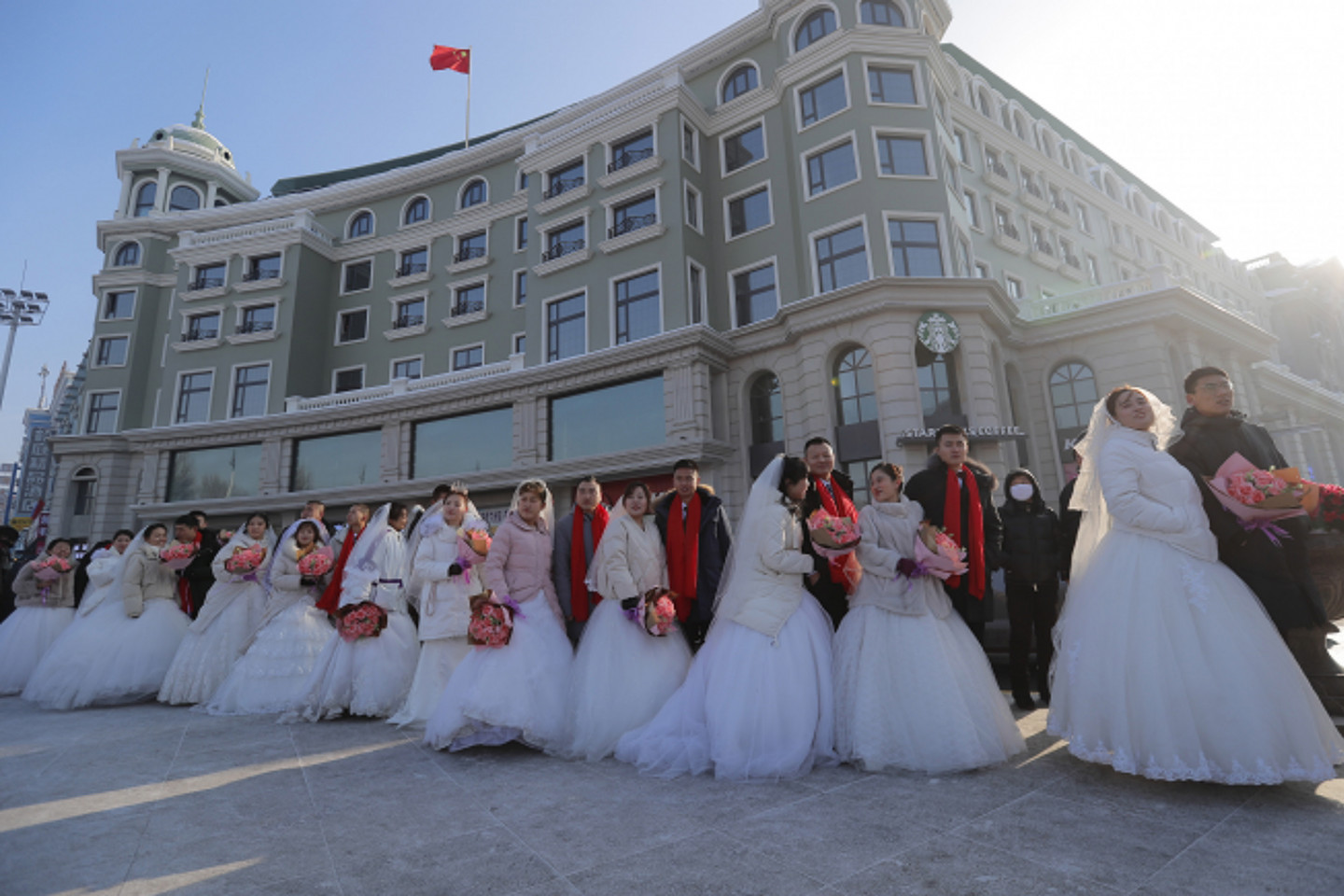 Ķīnā vienlaikus apprecējušies 43 pāri