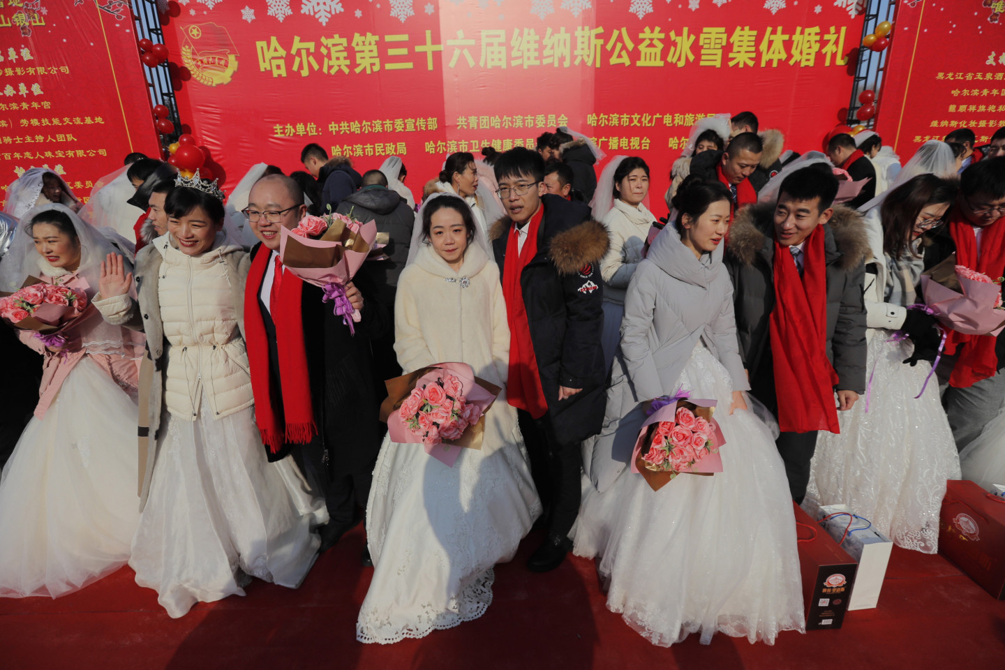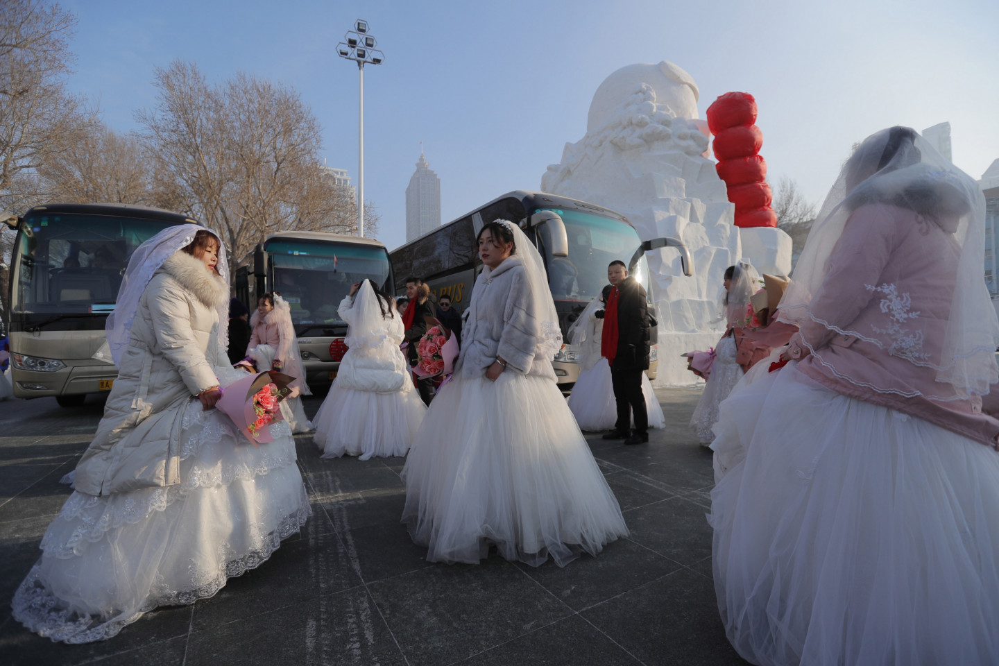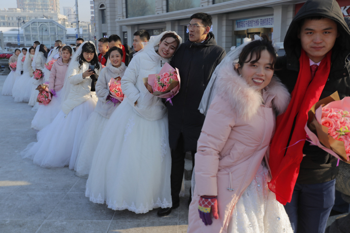 Ķīnā vienlaikus apprecējušies 43 pāri
