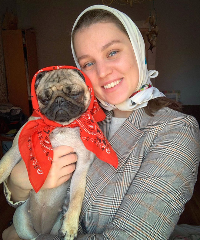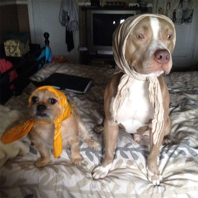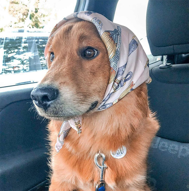 Sociālajā tīklā Instagram radies neparasts tā saucamais trends - ar lakatiņa palīdzību pārvērst savus četrkājainos draugus par vecmāmiņām. Rezultātu un suņu reakciju par šo saimnieku joku Instagram var atrast ar tēmturi #babushkadogs.