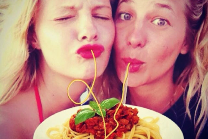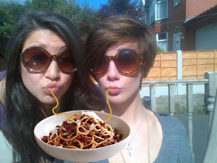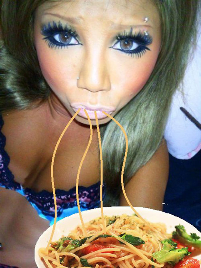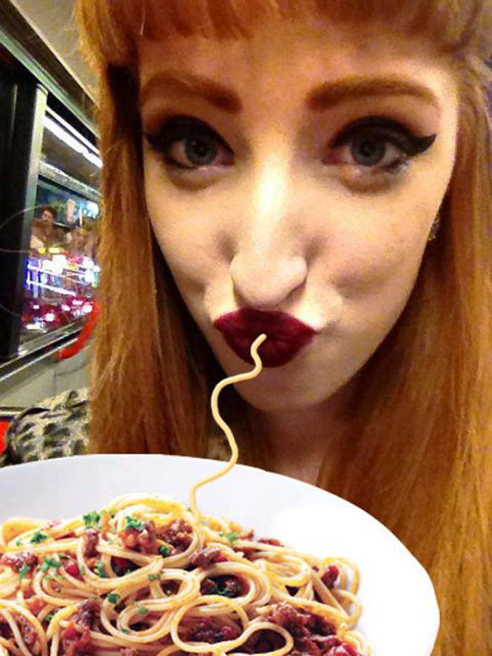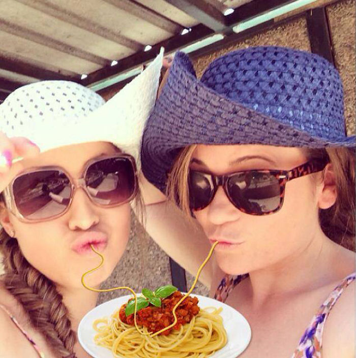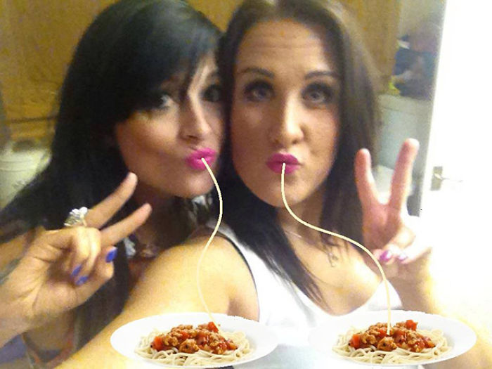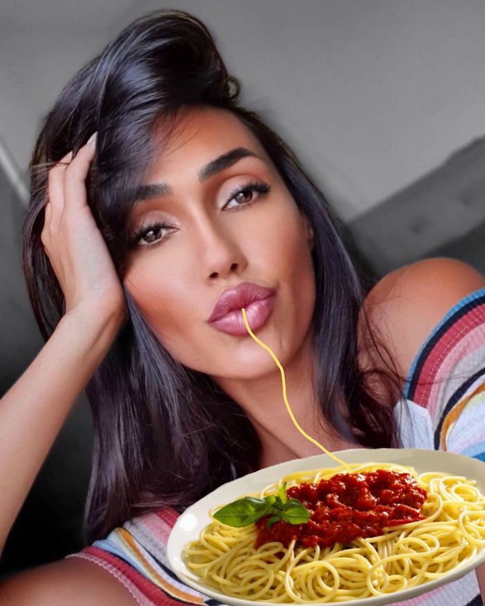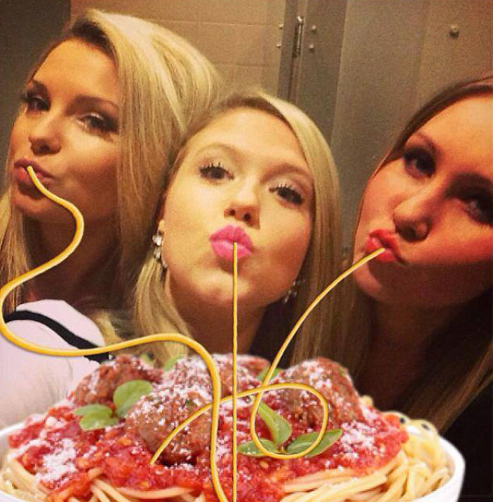 Uzjautrinoties par cilvēkiem, kuriem pozējot kamerai patīk atveidot tās sauktās "pīļu lūpas", jokdari fotogrāfijas “uzlabojuši” - tagad izskatās, ka bilžu varoņi ēd spageti. Godīgi sakot, izskatās ticami!