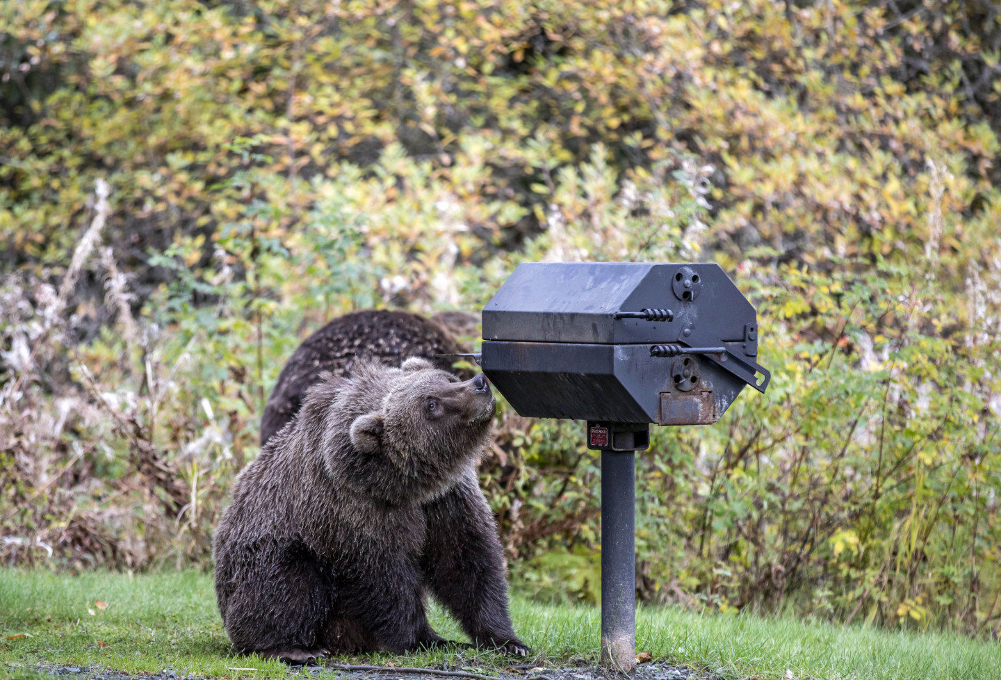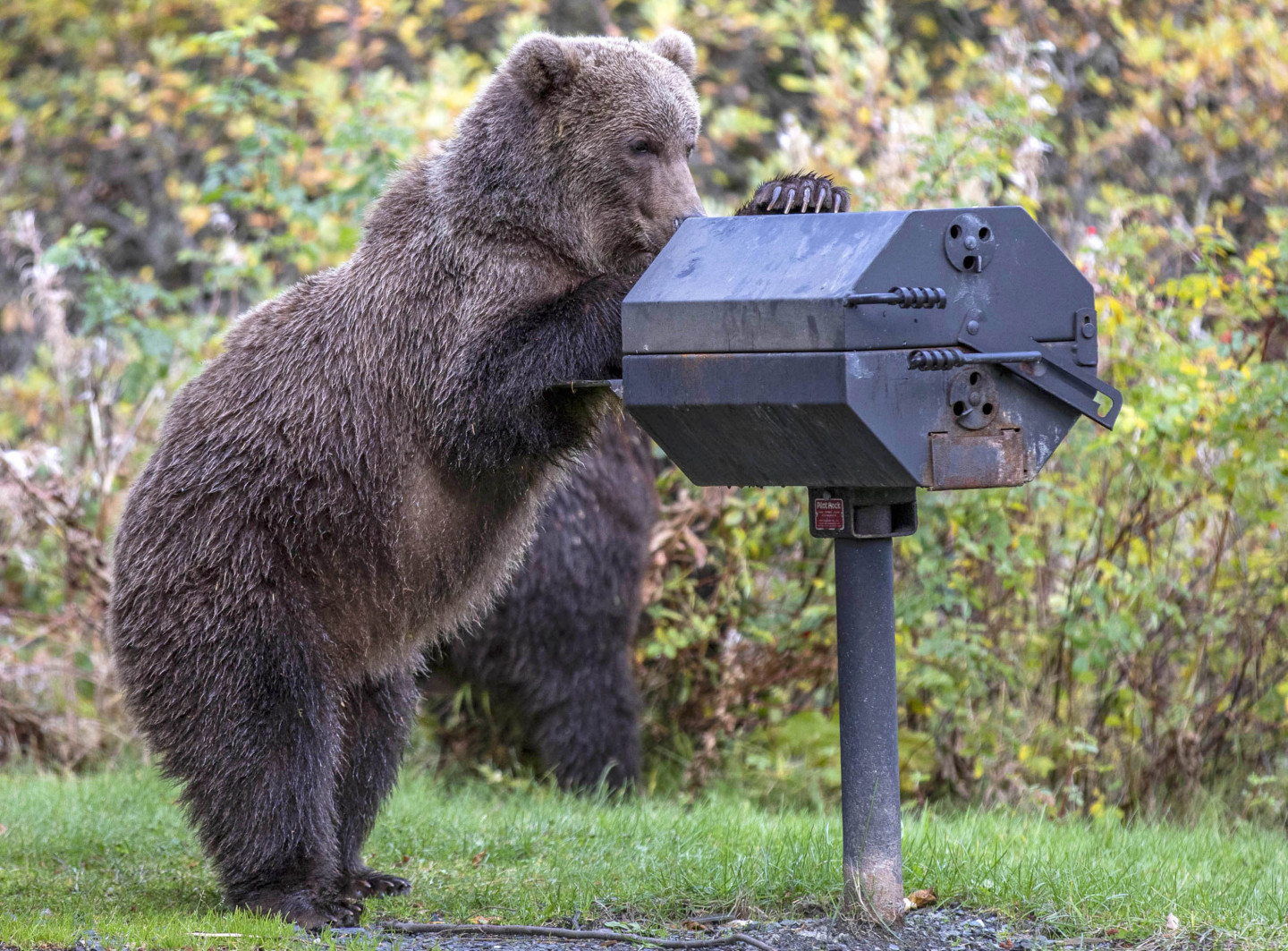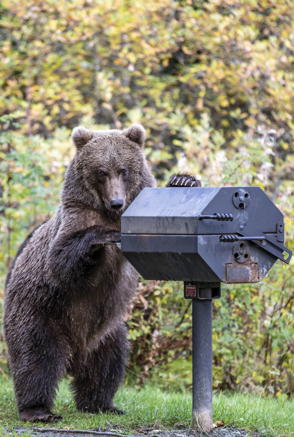 Neparasti foto- kā lācis pārbauda piknika vietu