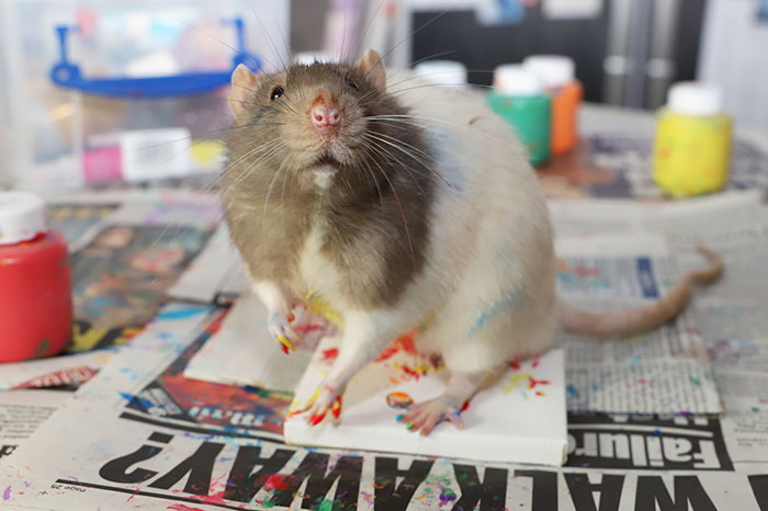 21 gadu vecajai Stefai no Lielbritānijas, kura kļūs par vetārsti, mājās ir veselas 12 žurciņas, kuras spēj radīt mākslas darbus.