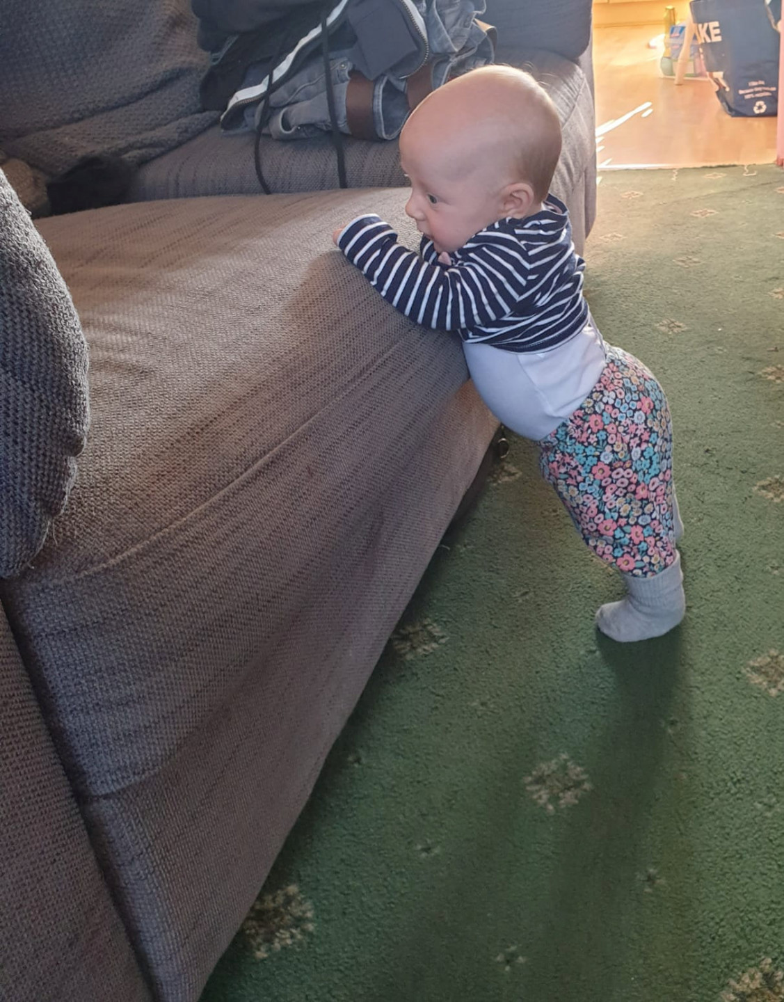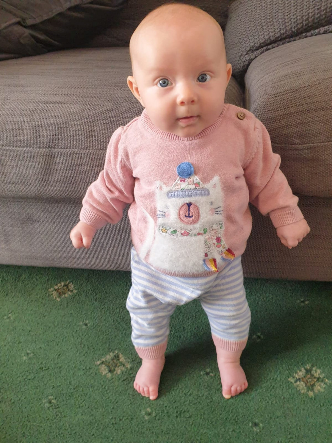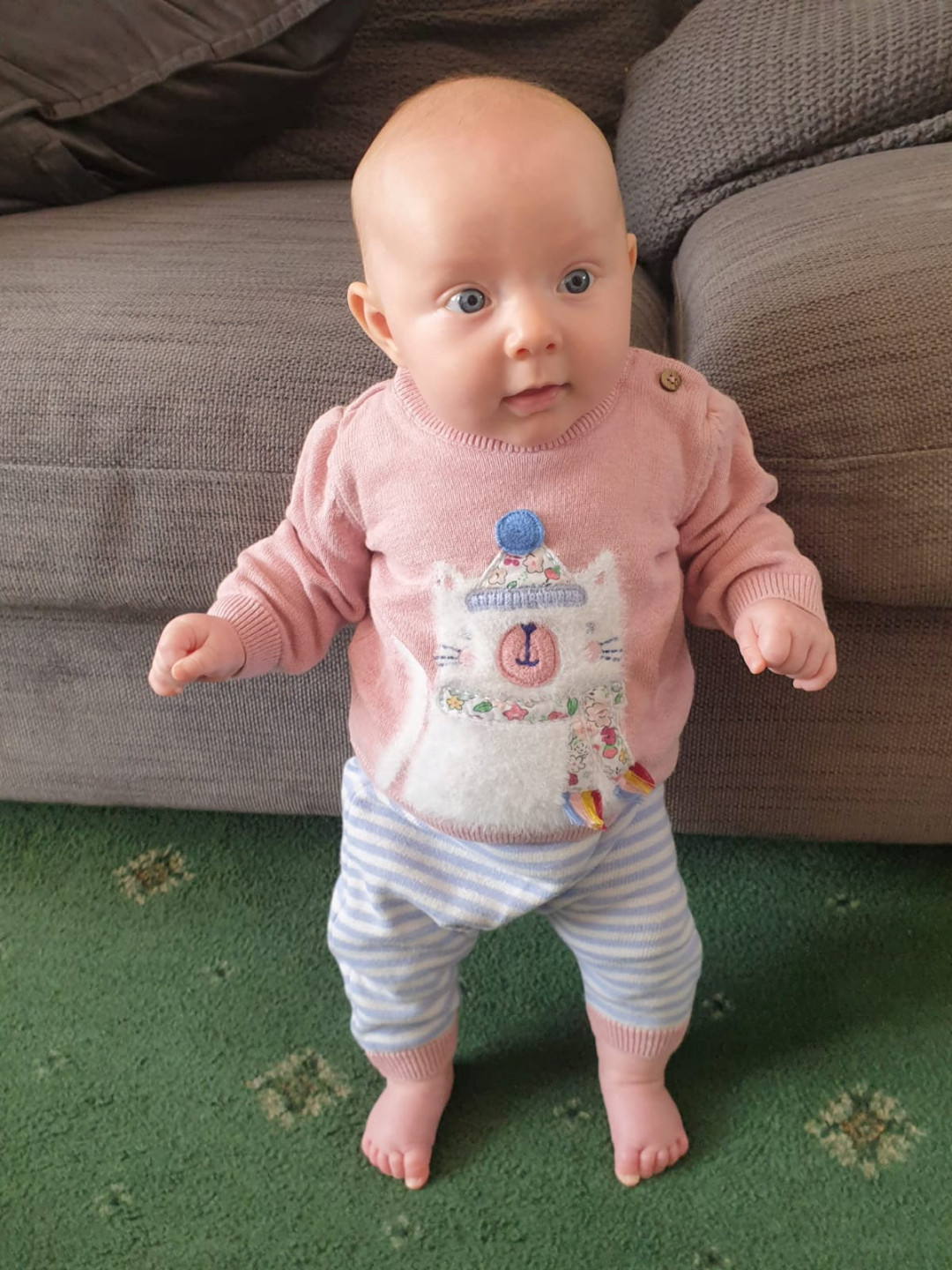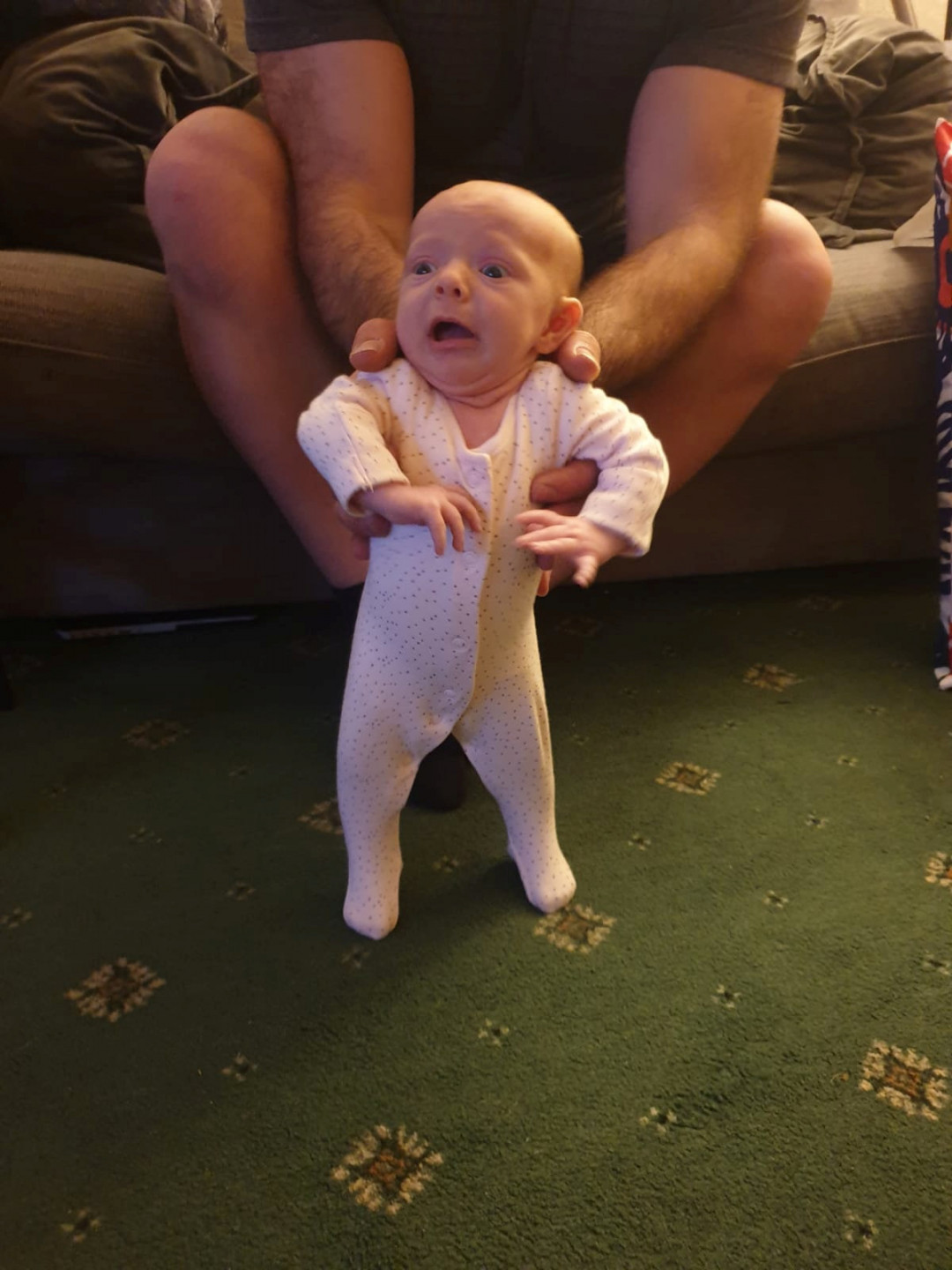 Vecāki apgalvo, ka šī 8 nedēļas vecā meitene jau spēj nostāvēt kājās