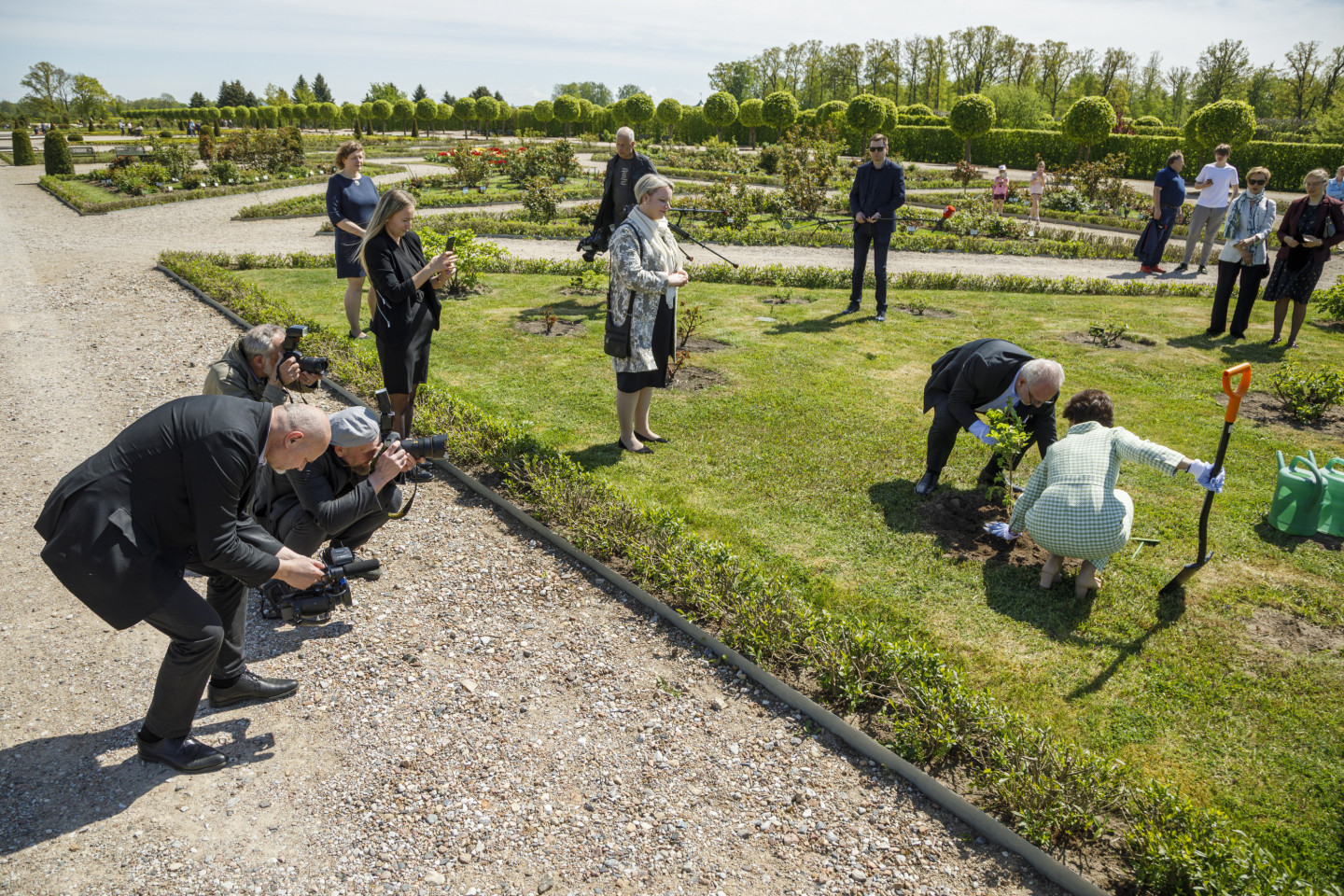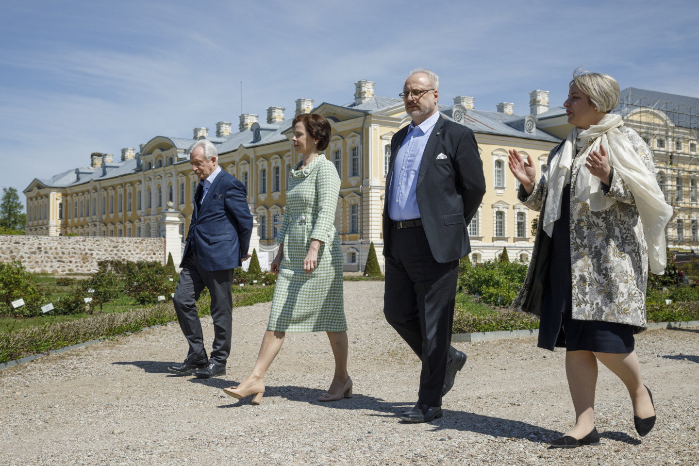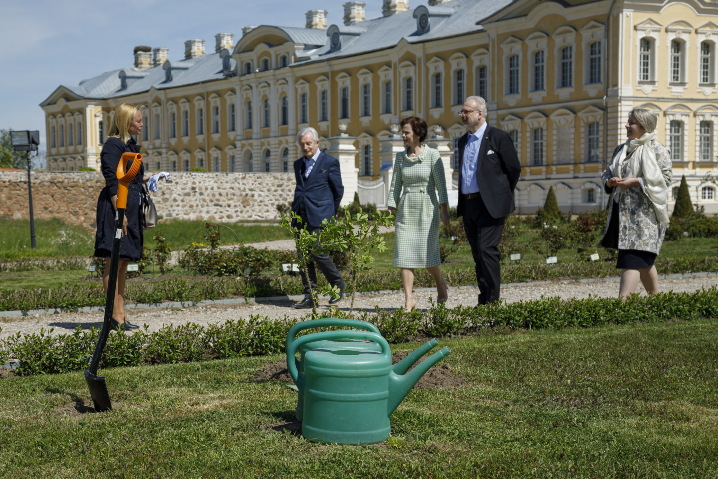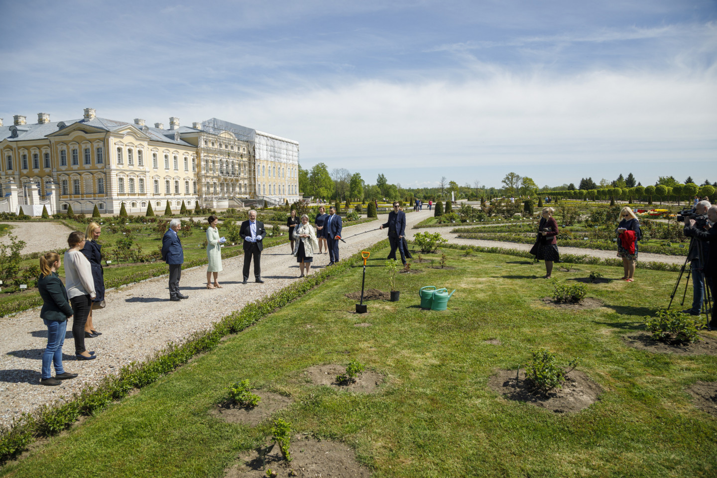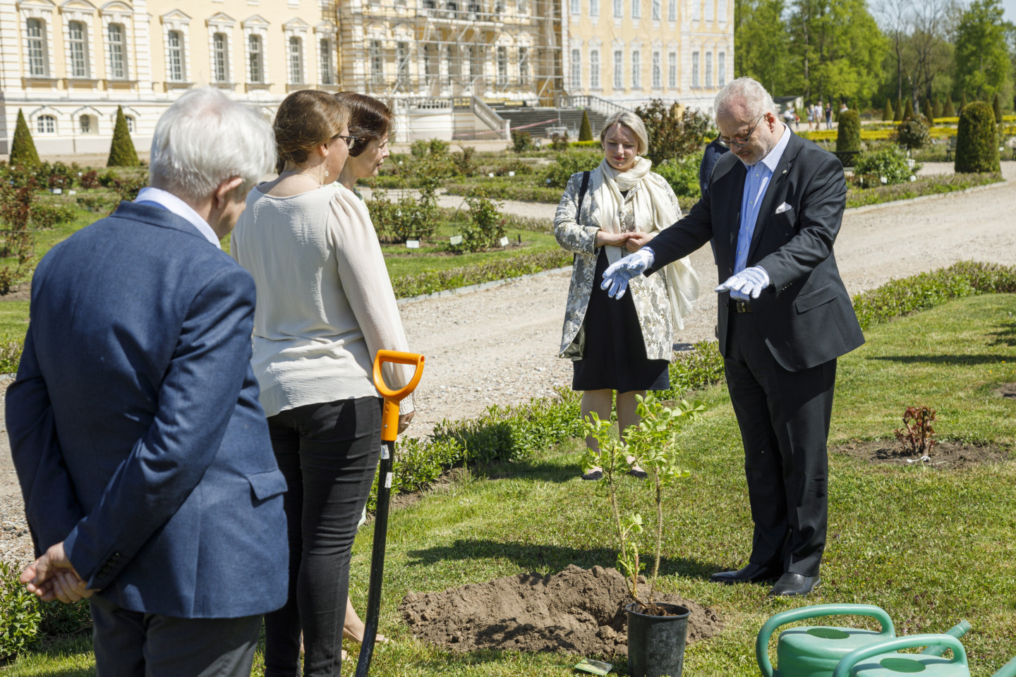 Valsts prezidents Egils Levits ar dzīvesbiedri Andru Leviti Rundāles pilī tikās ar muzeja darbiniekiem un apskatīja aktuālo ekspozīciju, kā arī pils Rožu dārzā iestādīja rozes stādu.