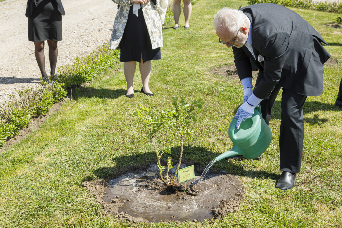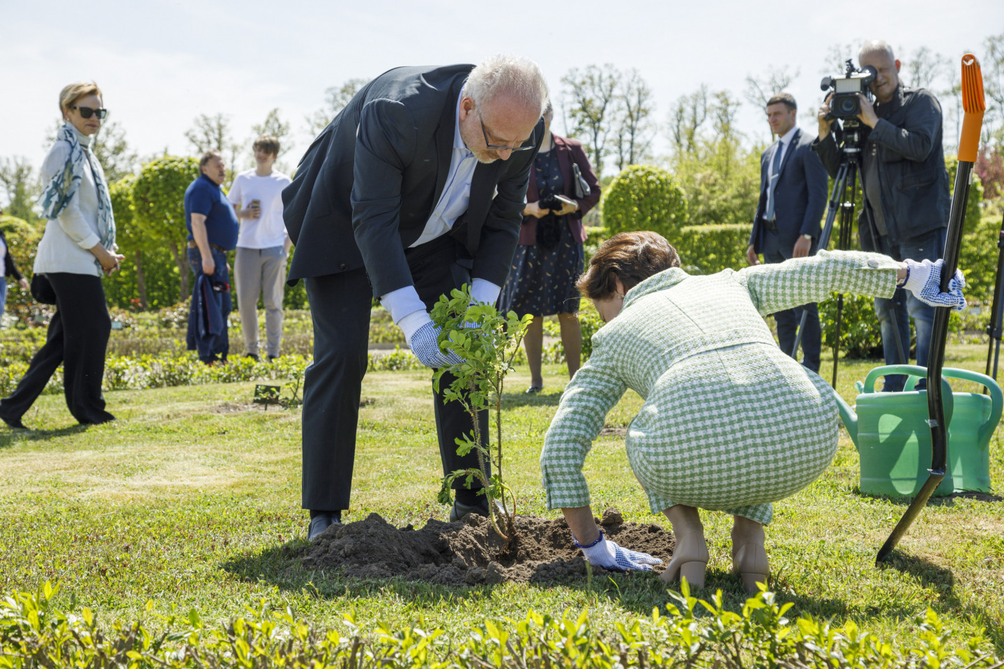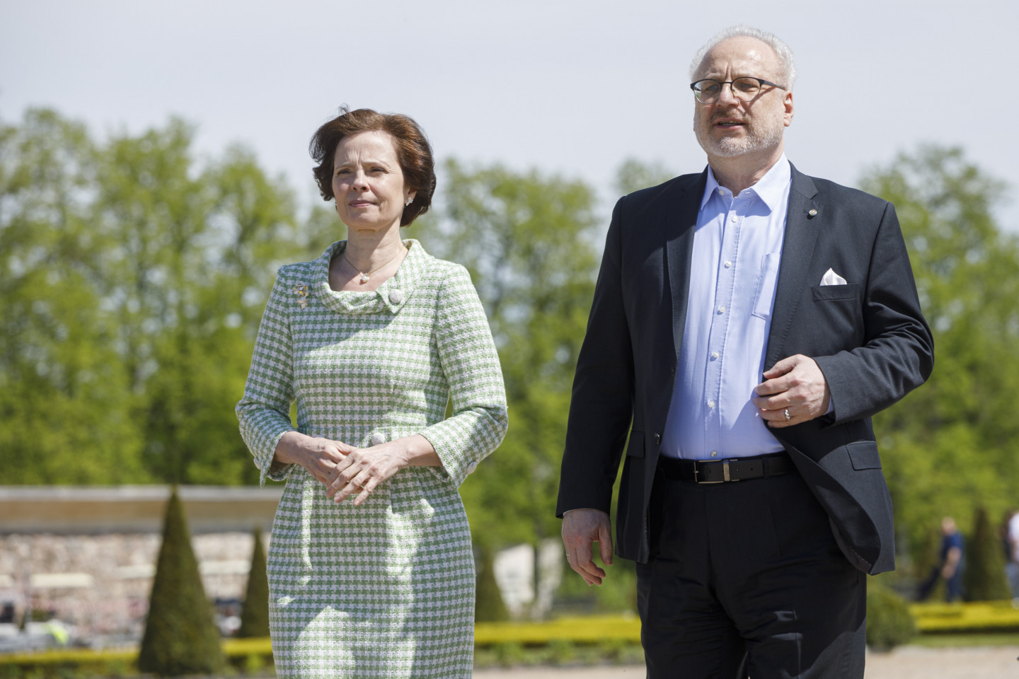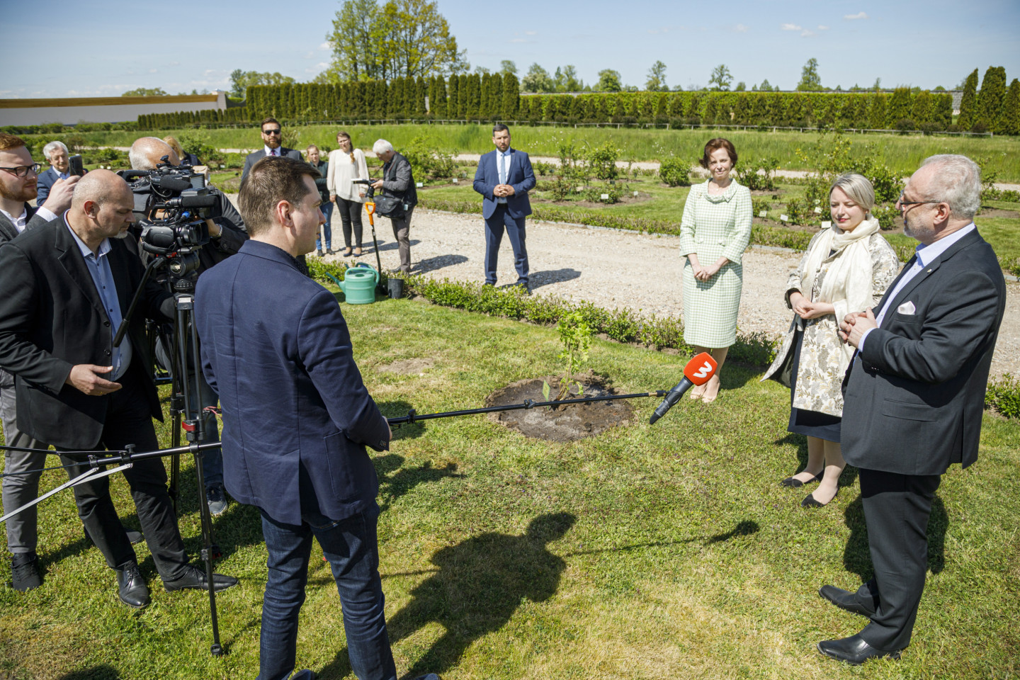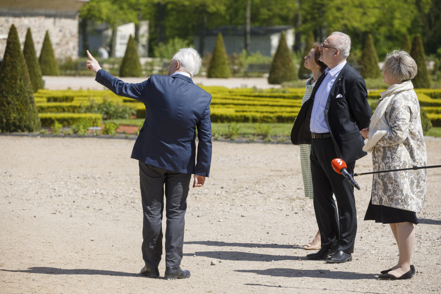 Valsts prezidents Egils Levits ar dzīvesbiedri Andru Leviti Rundāles pilī tikās ar muzeja darbiniekiem un apskatīja aktuālo ekspozīciju, kā arī pils Rožu dārzā iestādīja rozes stādu.