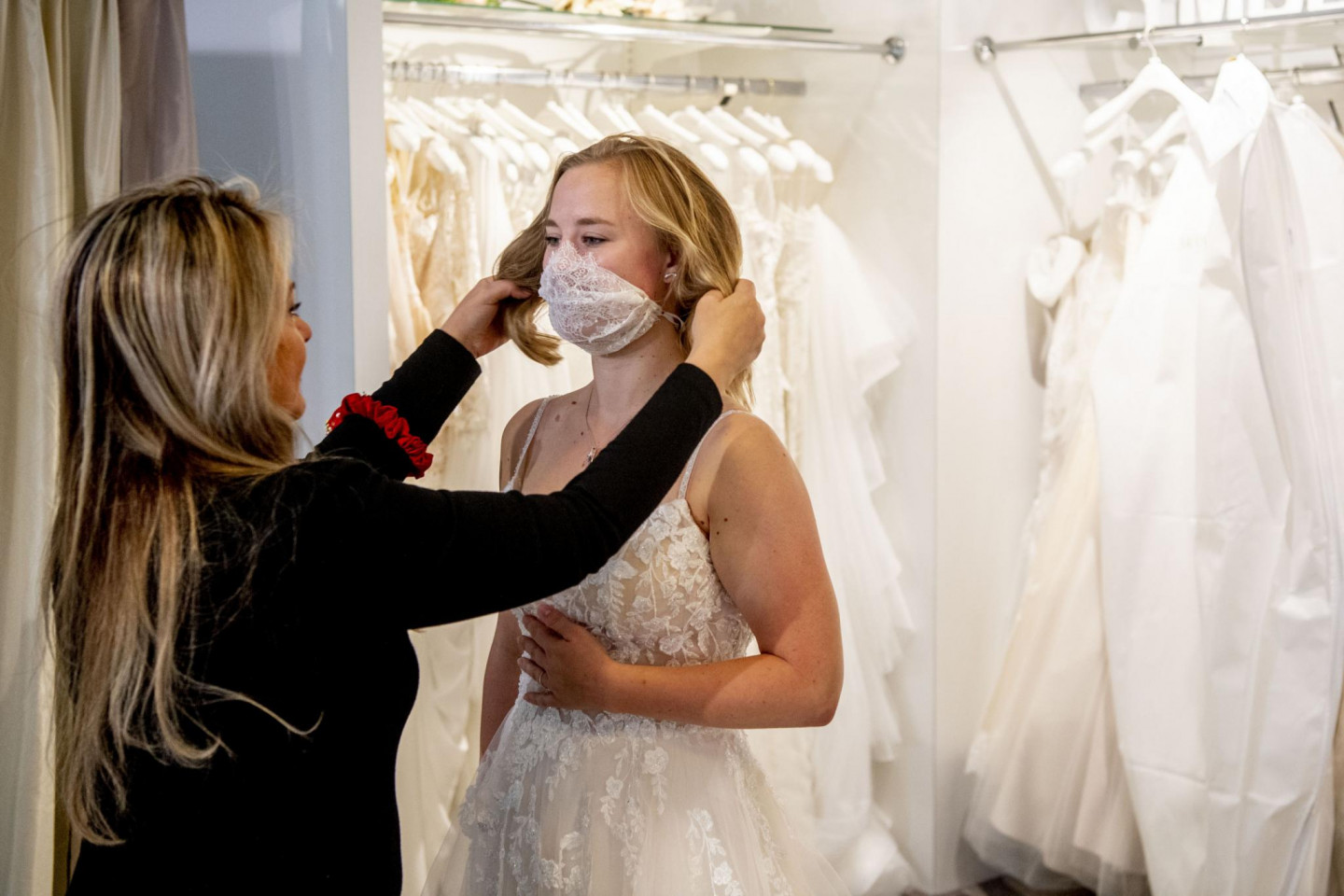 Nīderlandē radītas līgavas kleitām pieskaņotas sejas maskas