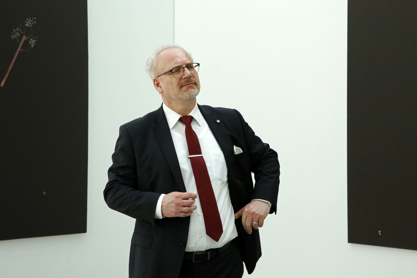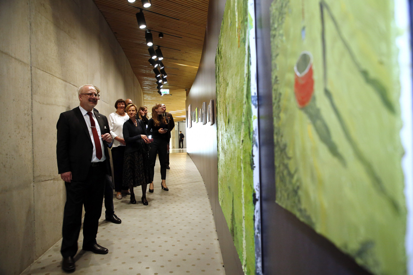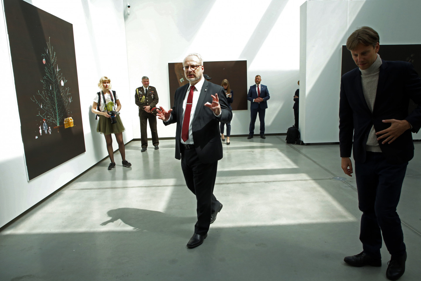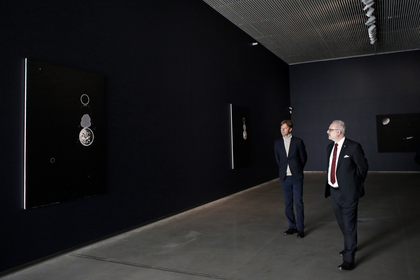Valsts prezidents Egils Levits apmeklēja Ērika Apaļā mākslas izstādi "Ģimene" Latvijas Nacionālajā mākslas muzejā.