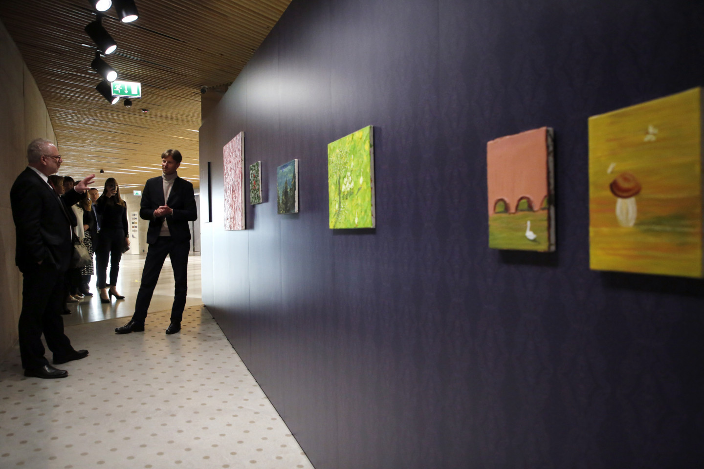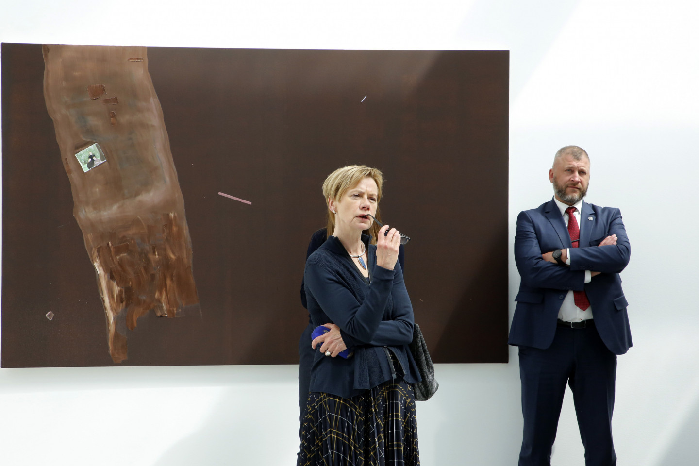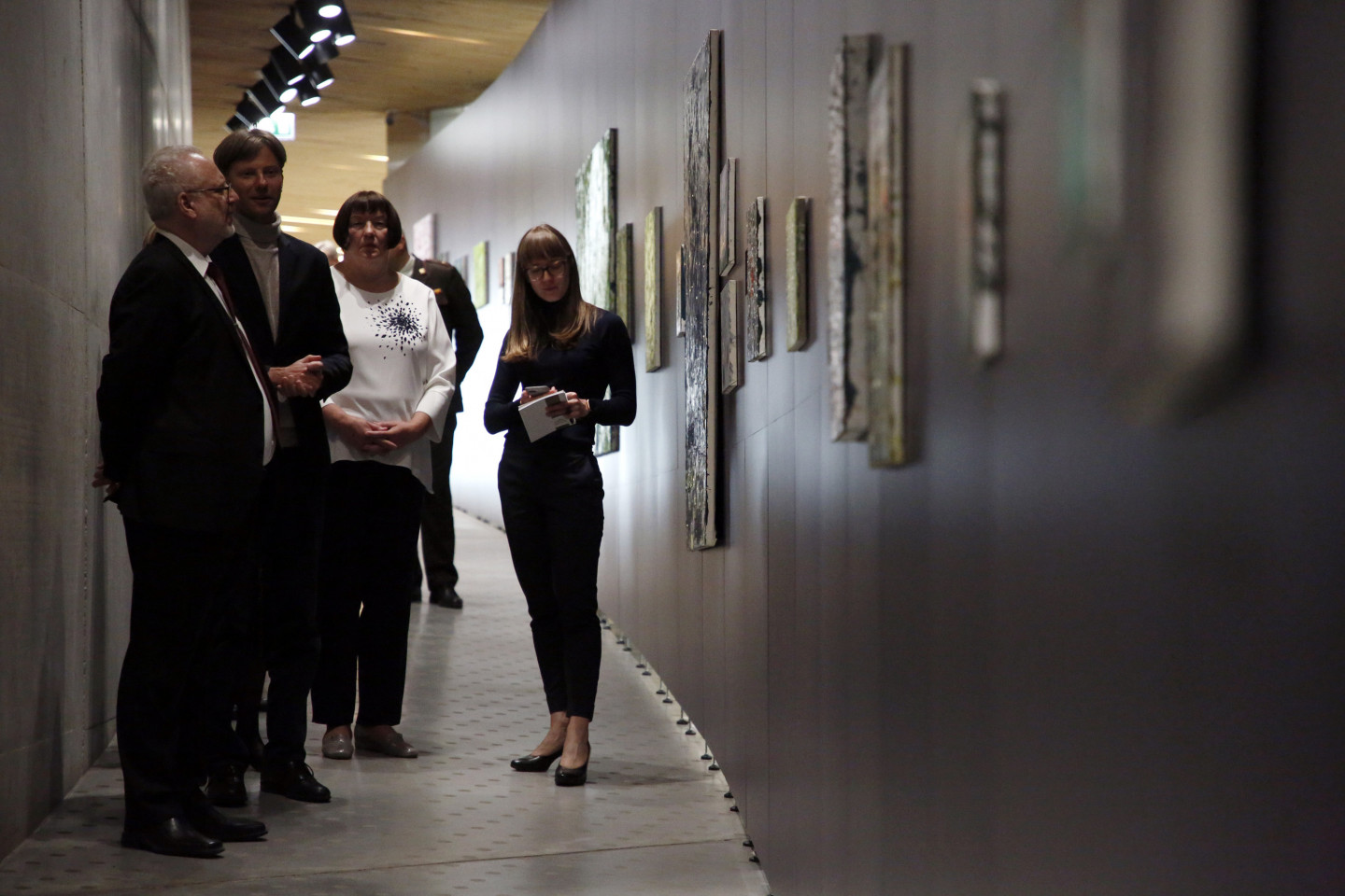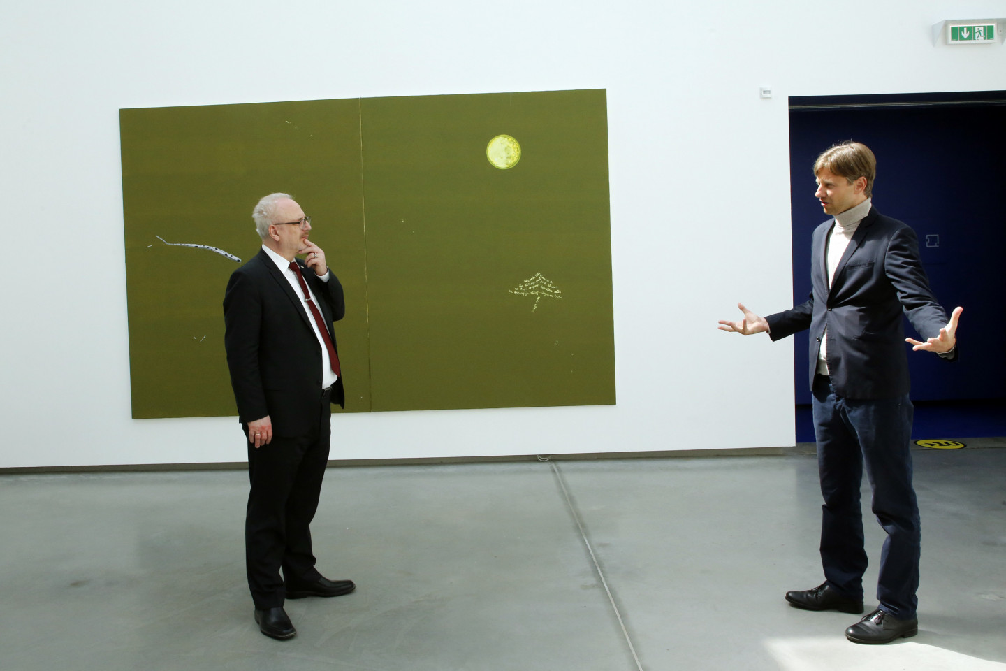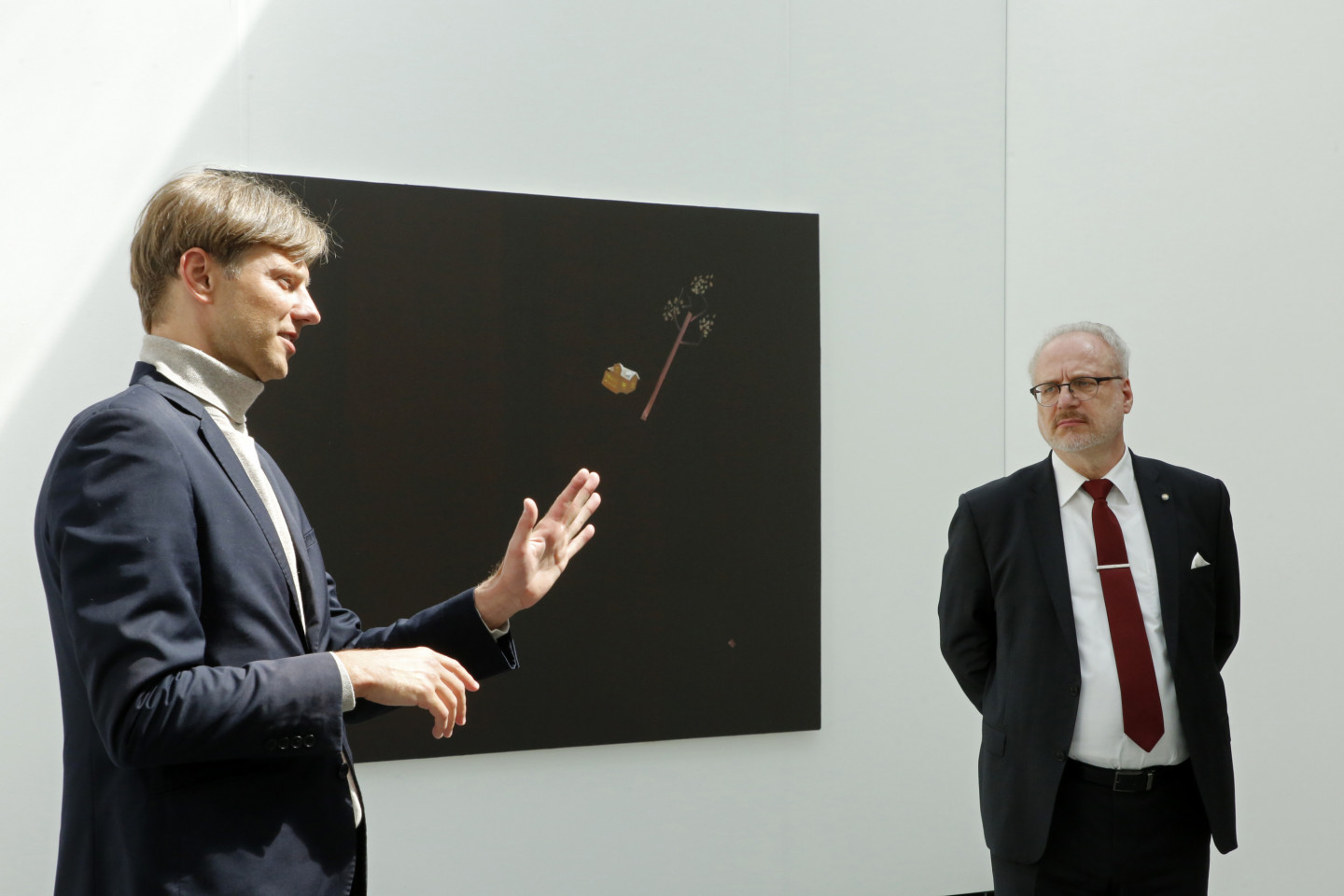 Valsts prezidents Egils Levits apmeklēja Ērika Apaļā mākslas izstādi "Ģimene" Latvijas Nacionālajā mākslas muzejā.