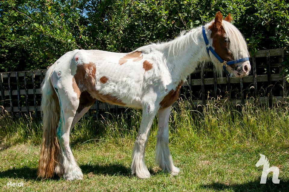Pirms diviem gadiem Anglijā, kādā saimniecībā tika atrasta novārtā pamesta un ļoti novārgusi ķēve. Dzīvnieku draugi jau nodomāja, ka zirgs ir miris, taču ķēvīte piecēla galvu no dubļiem un izrādīja vēlmi dzīvot. Sākās garš atlabšanas ceļš. Tagad Heidija ir veselīga ķēve, kas apveltīta ar drosmi un nesalaužamu garu.