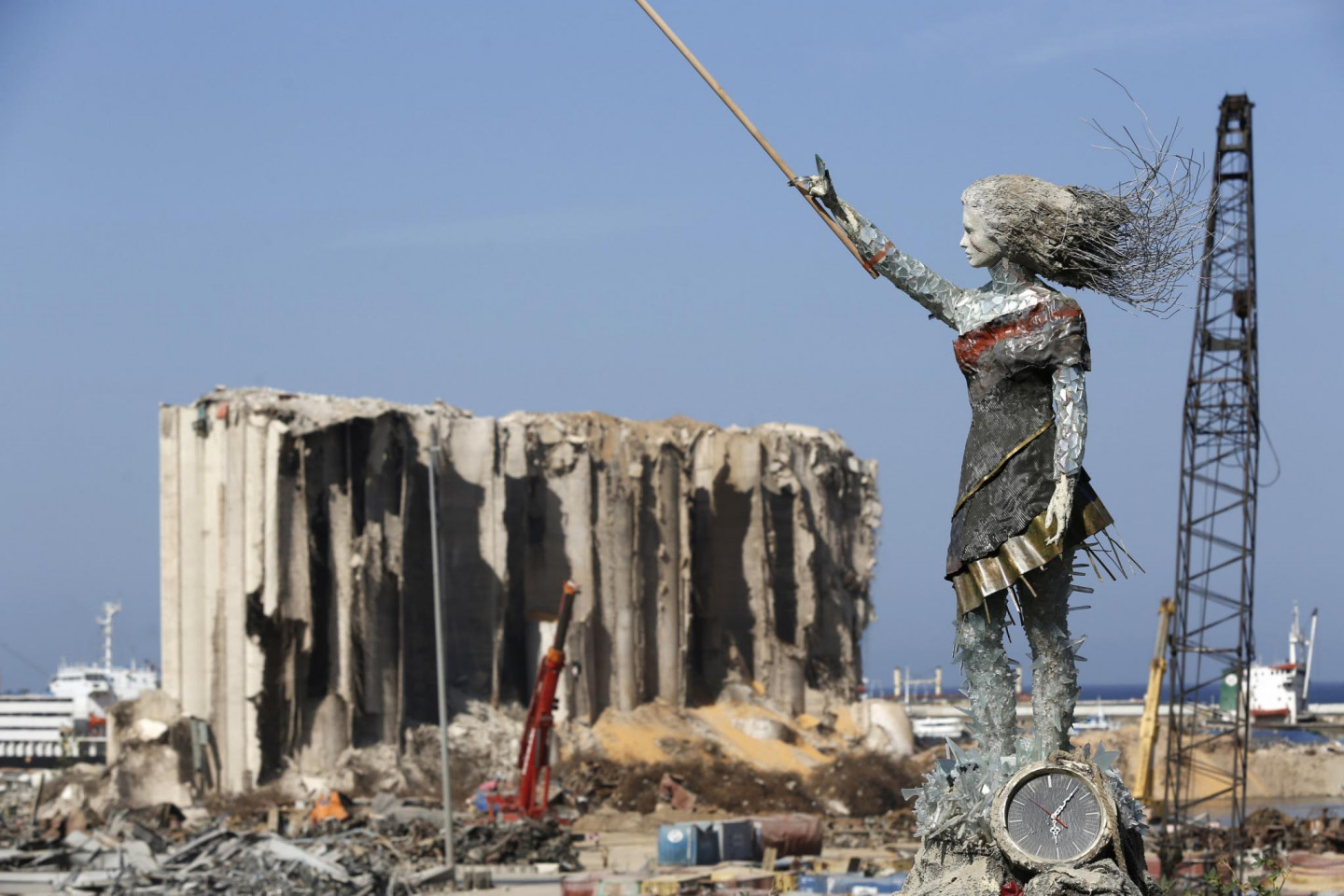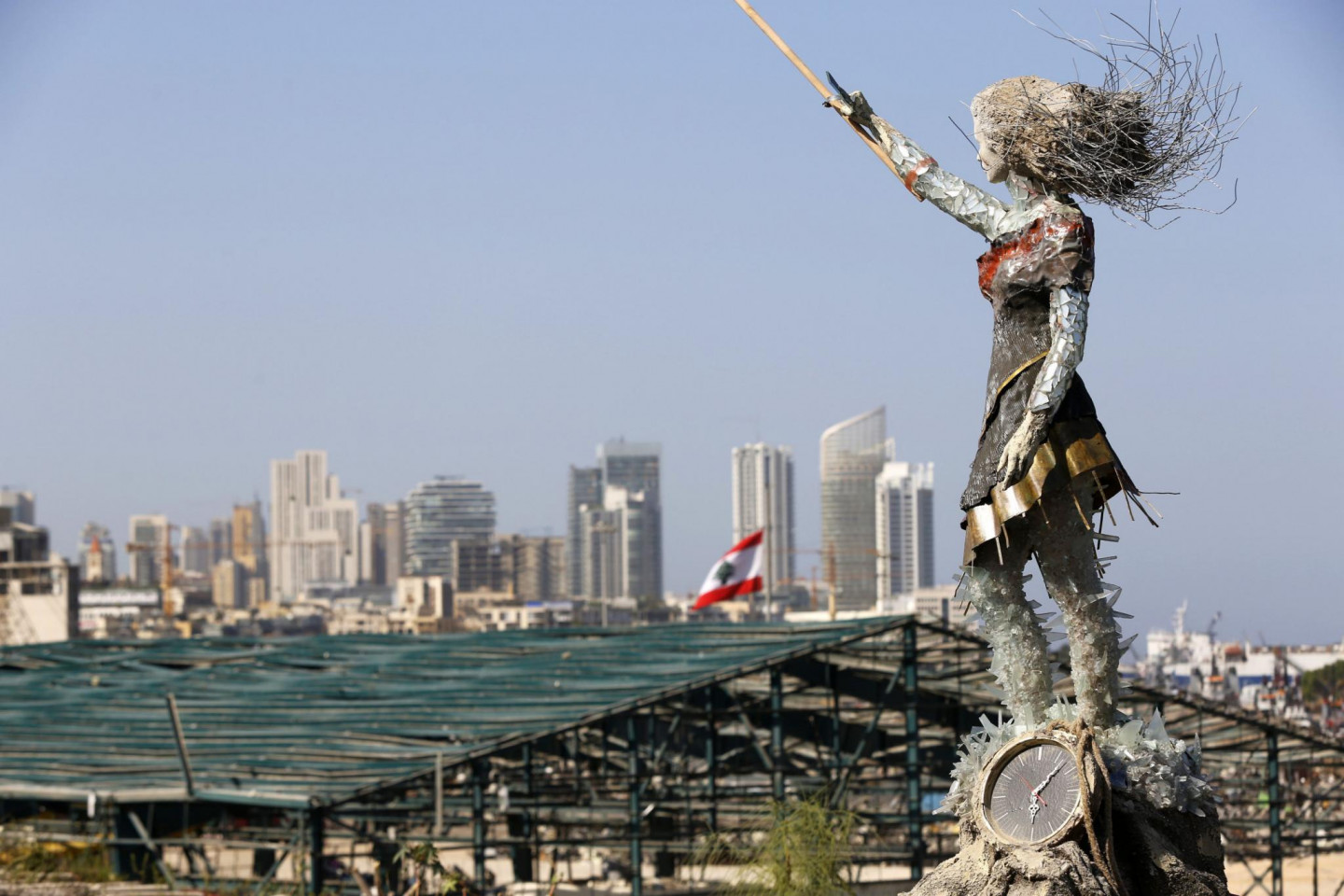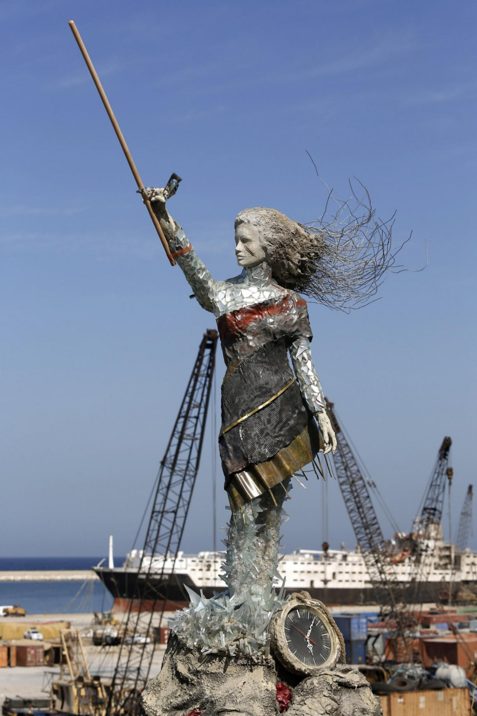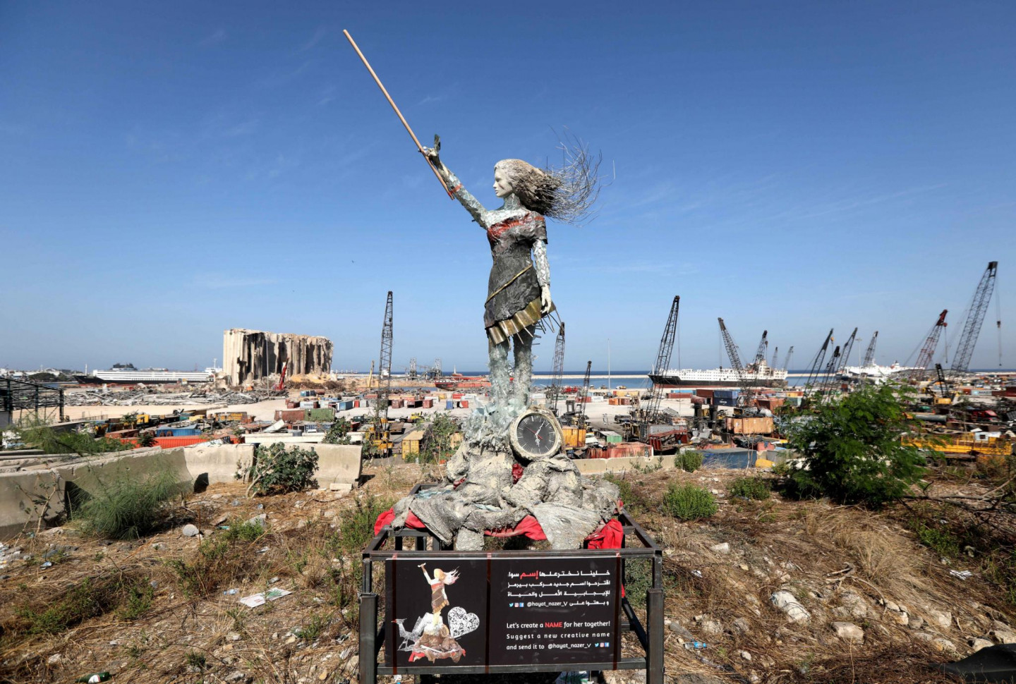Izmantojot Beirūtas ostā notikušā sprādziena "atkritumus" mākslinieks radījis skulptūru.