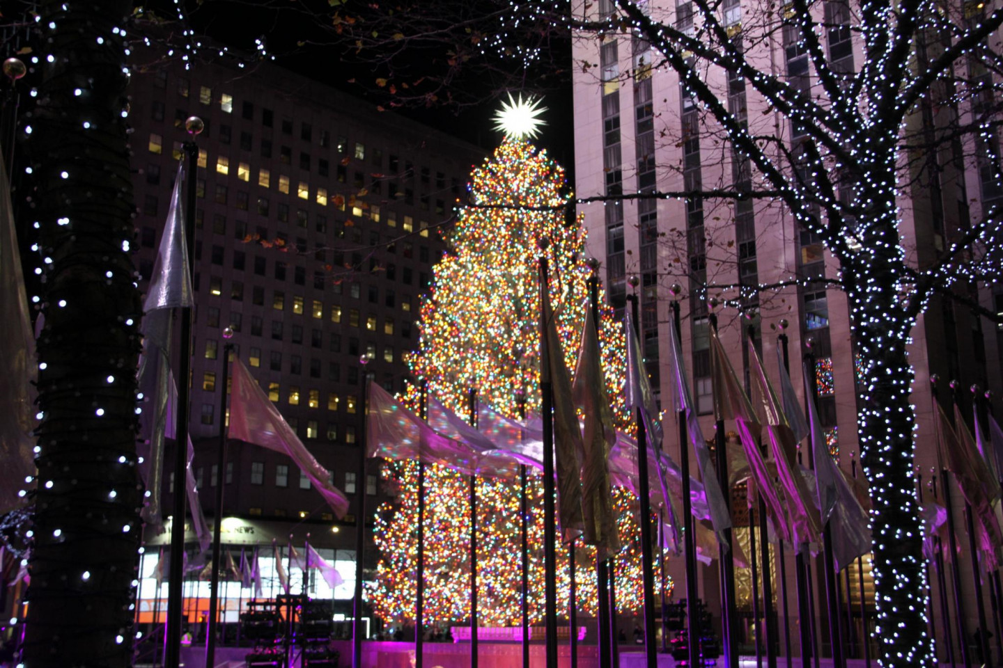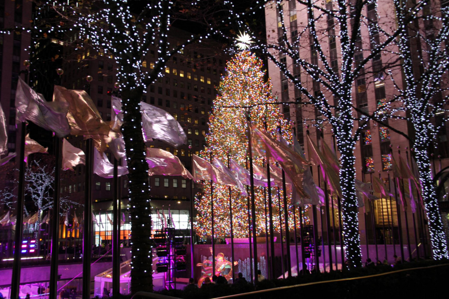 Ņujorkā iemirdzējusies slavenā Rokfellera centra Ziemassvētku egle