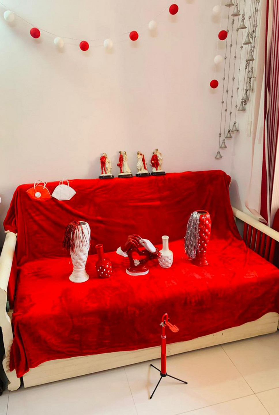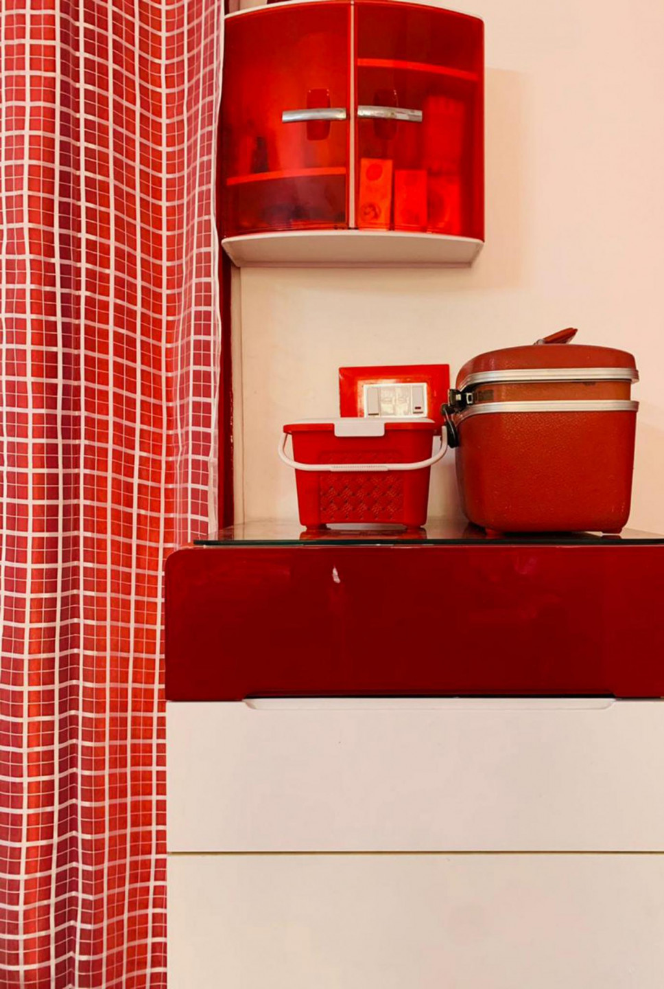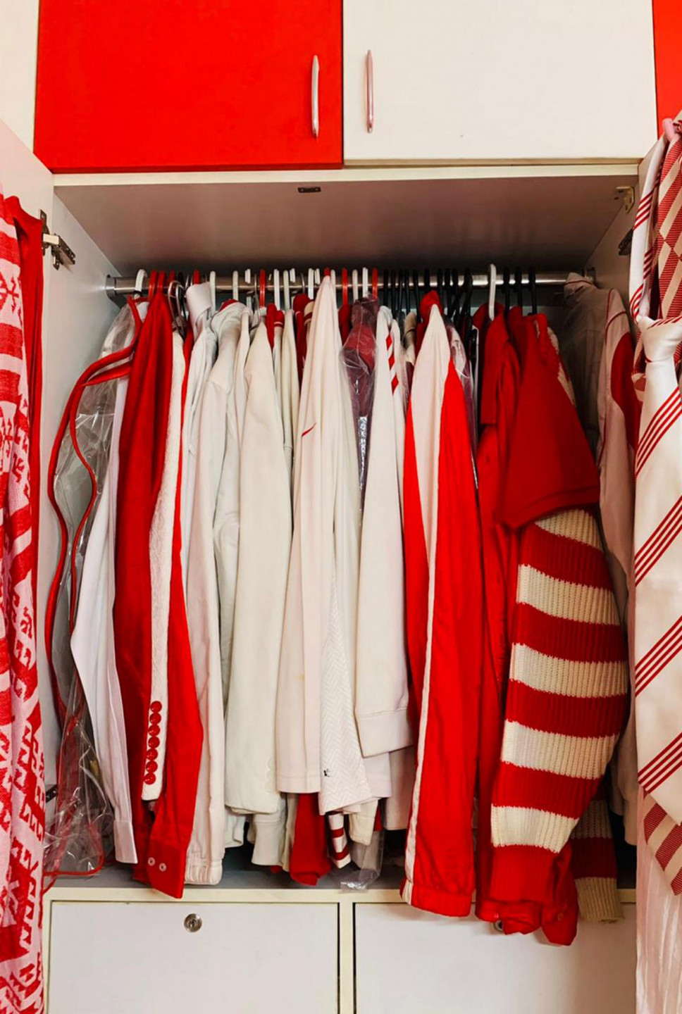 Šīs ģimenes māja lietas un apģērbs sastāv tikai no divām krāsām - sarkanās un baltās.