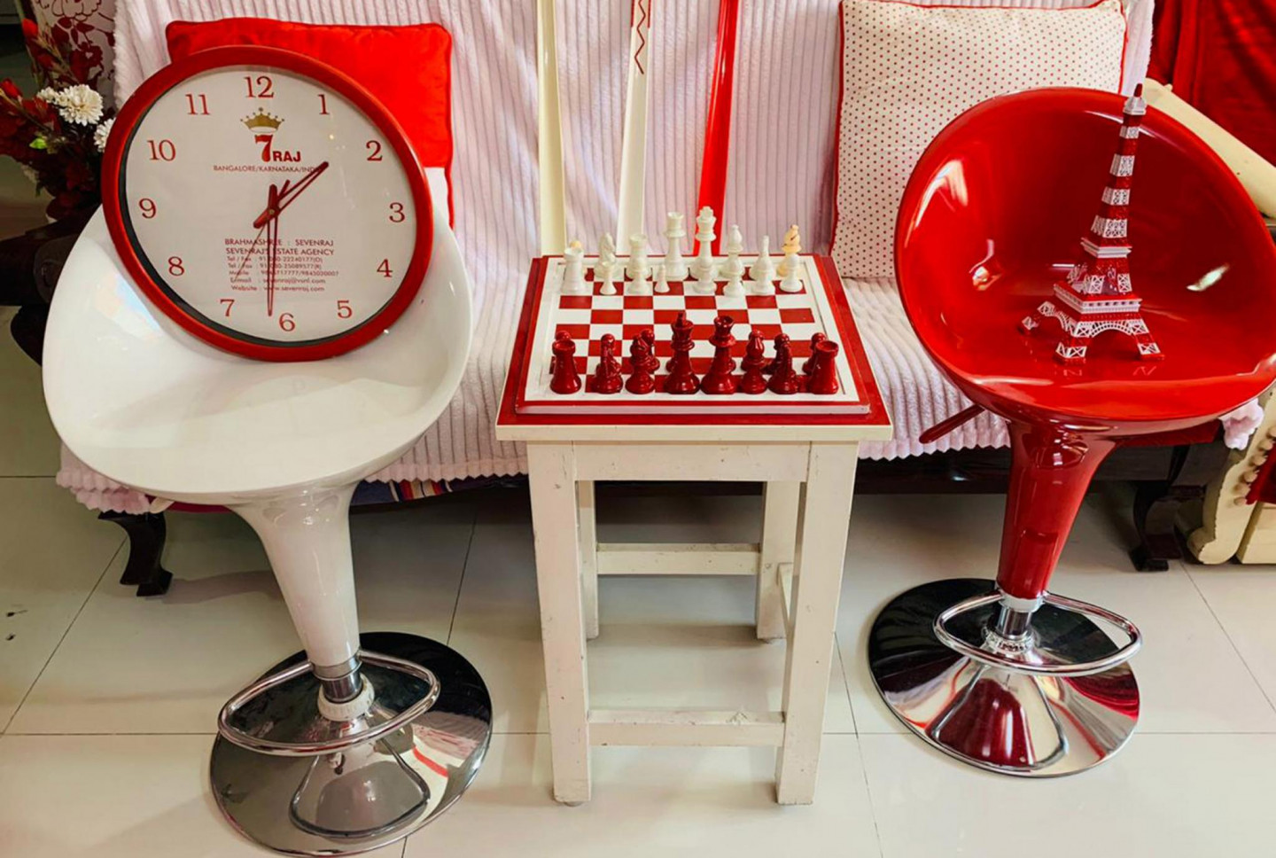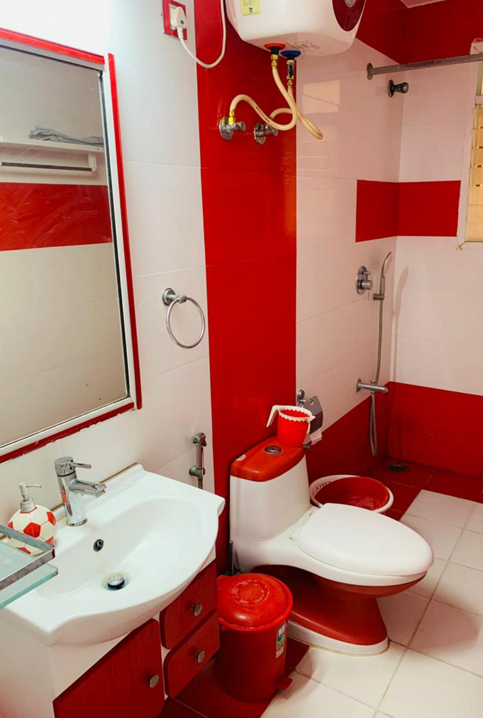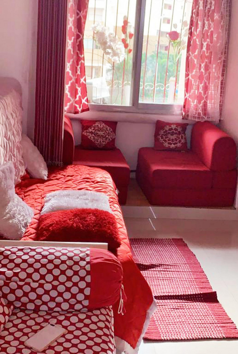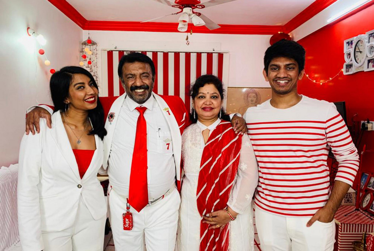 Šīs ģimenes māja lietas un apģērbs sastāv tikai no divām krāsām - sarkanās un baltās.
