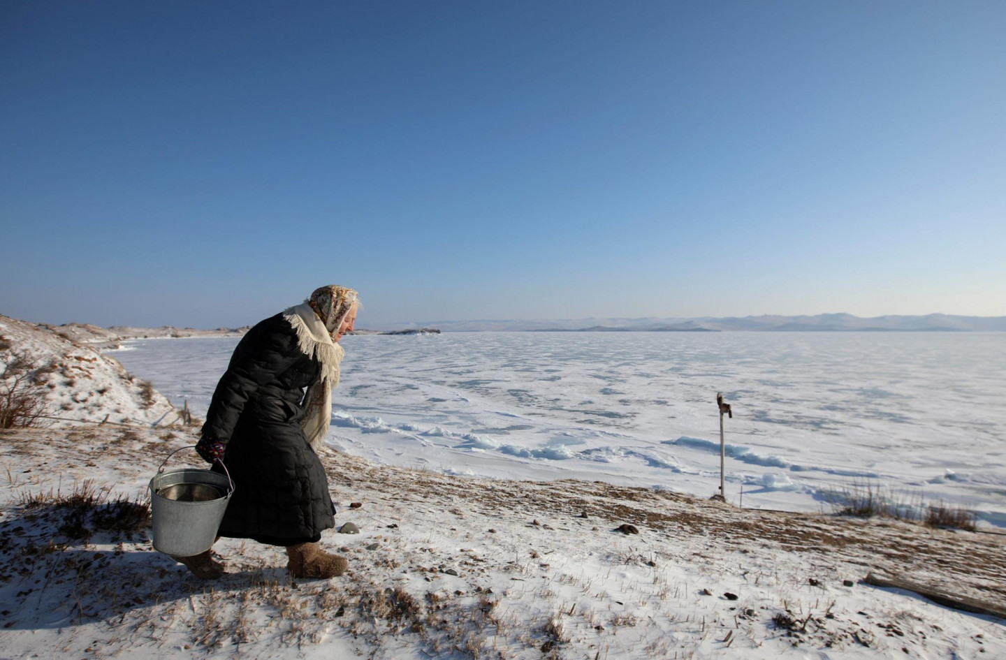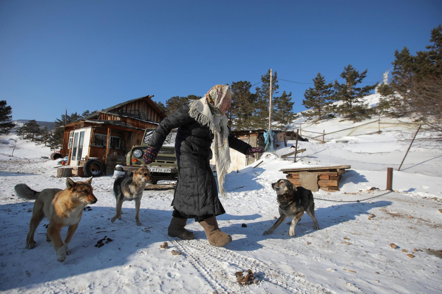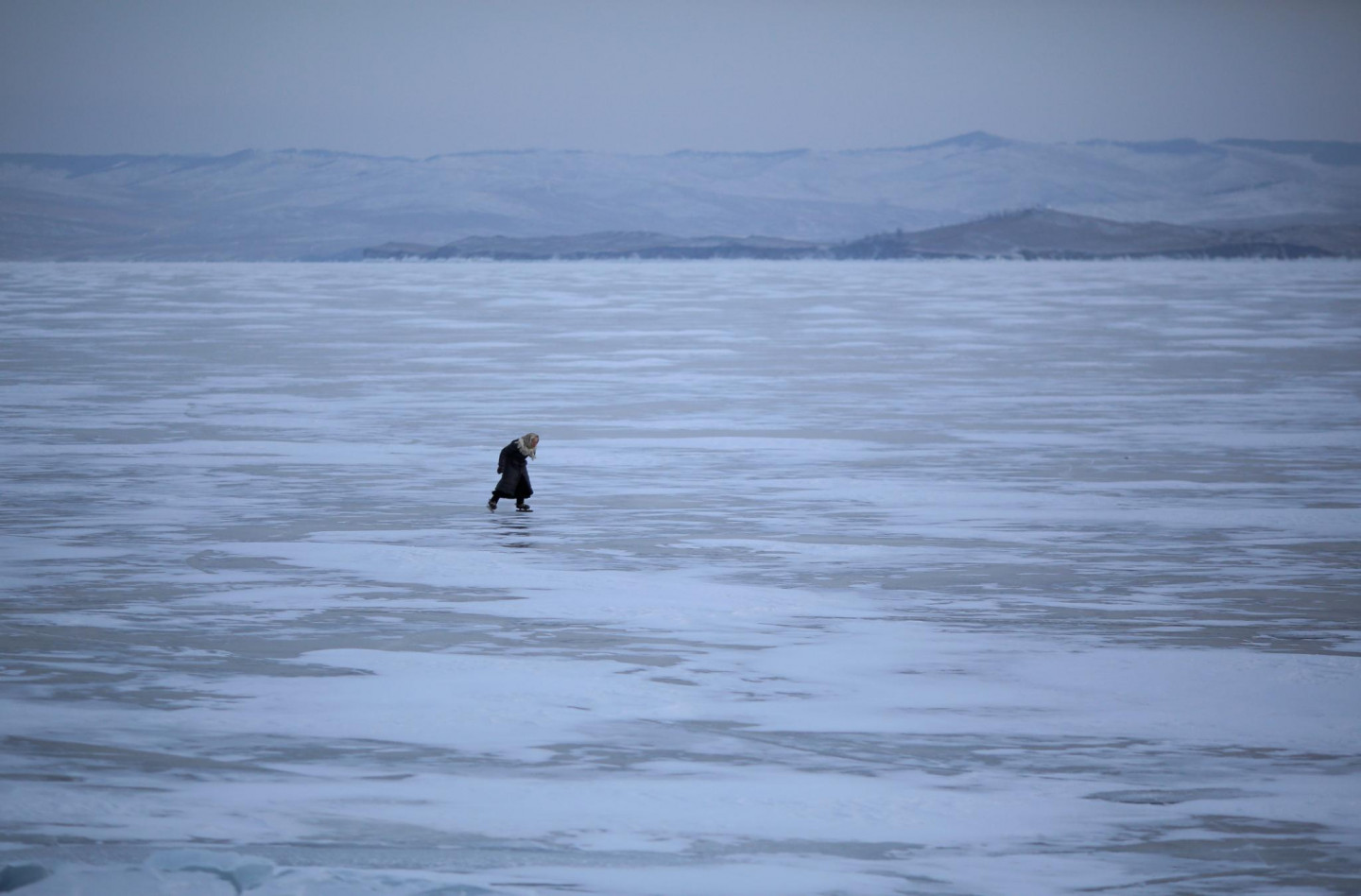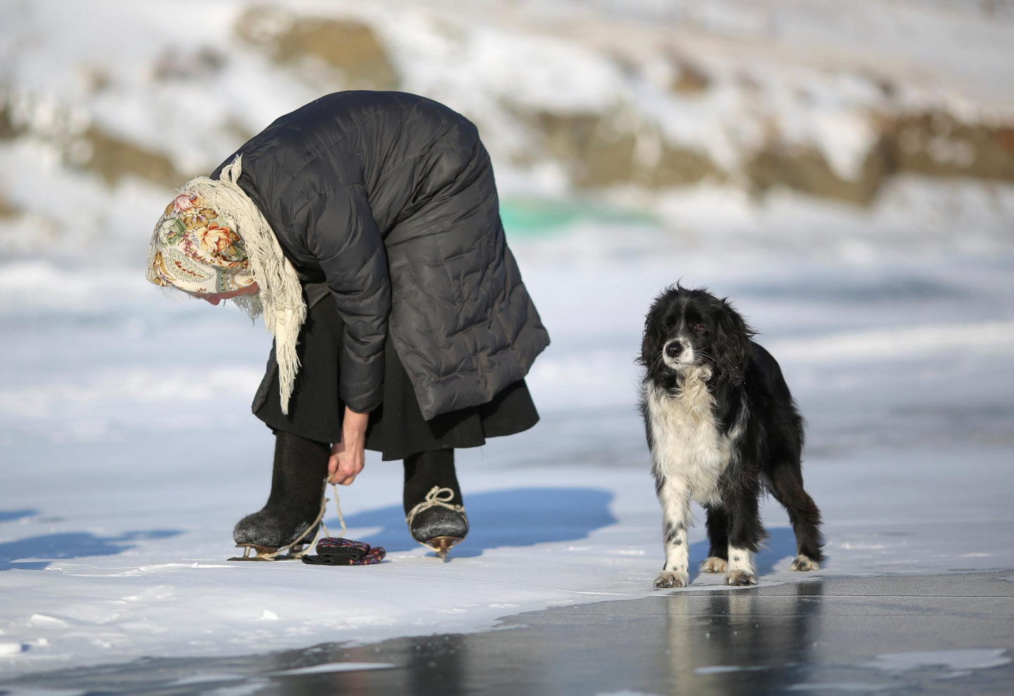 79 gadus vecas omītes aizraušanās - slidošana pa Baikāla ezeru