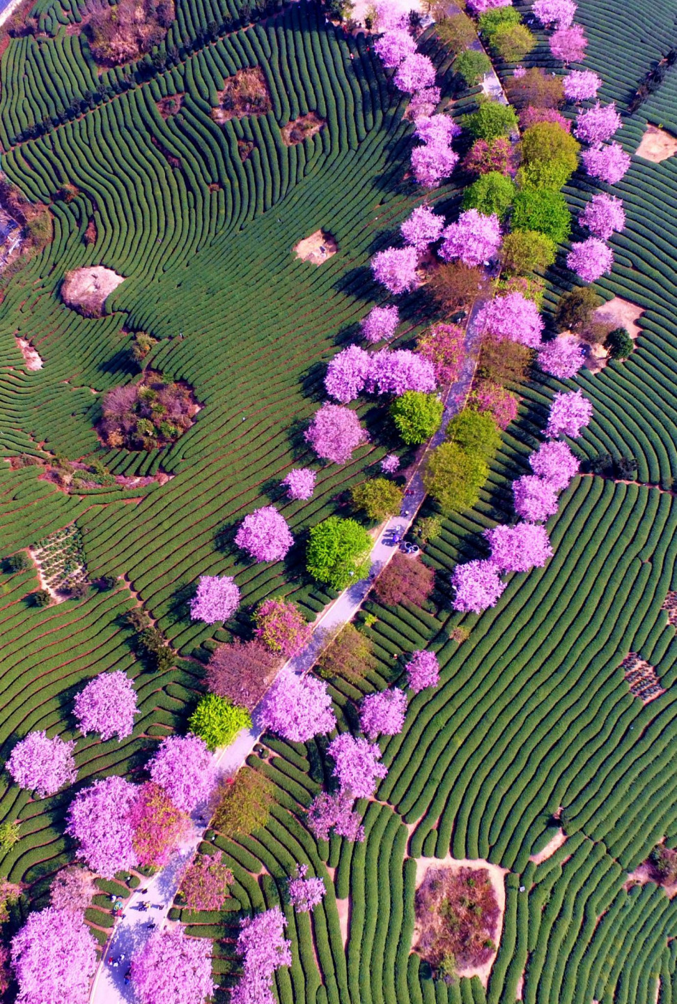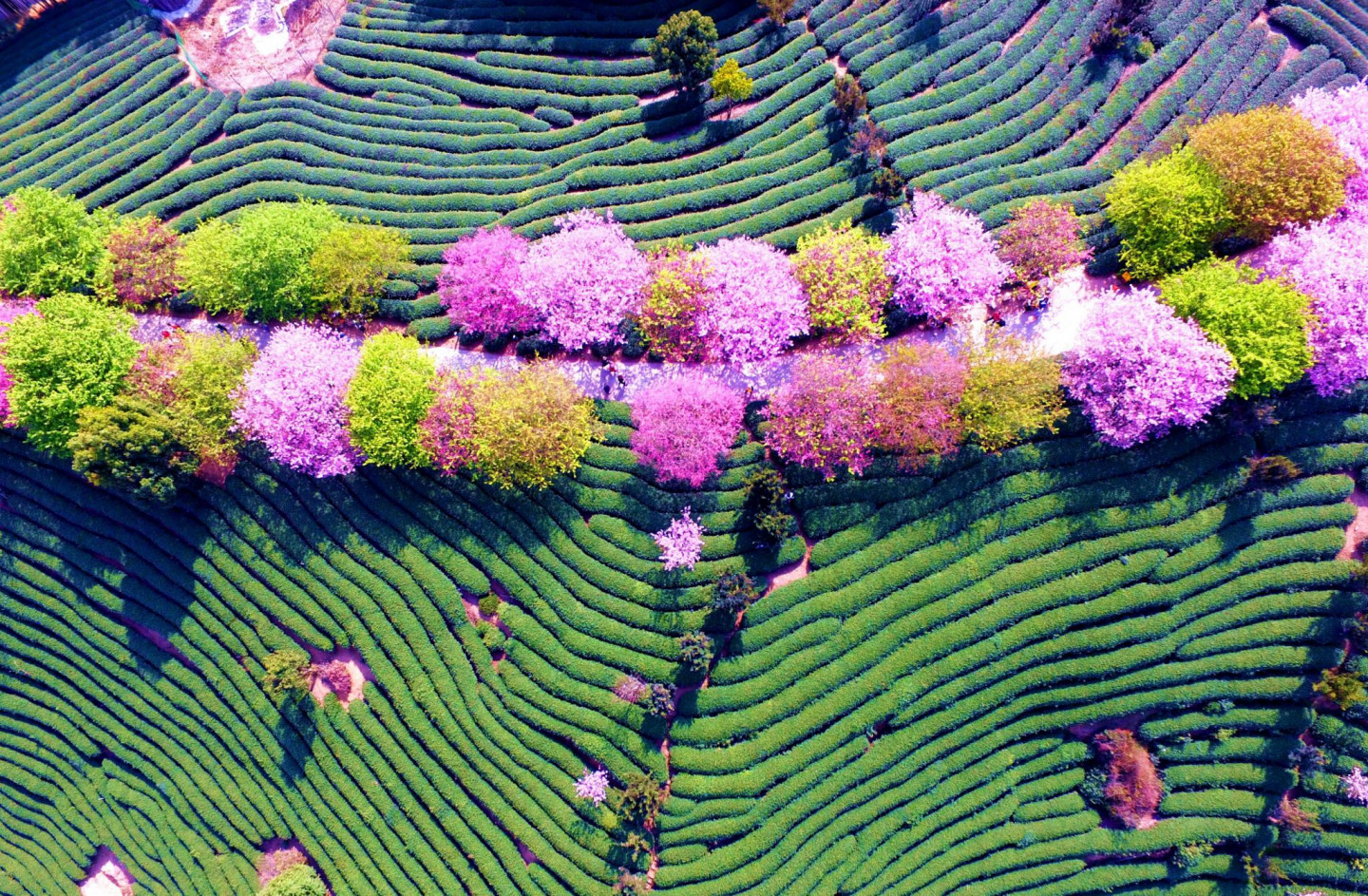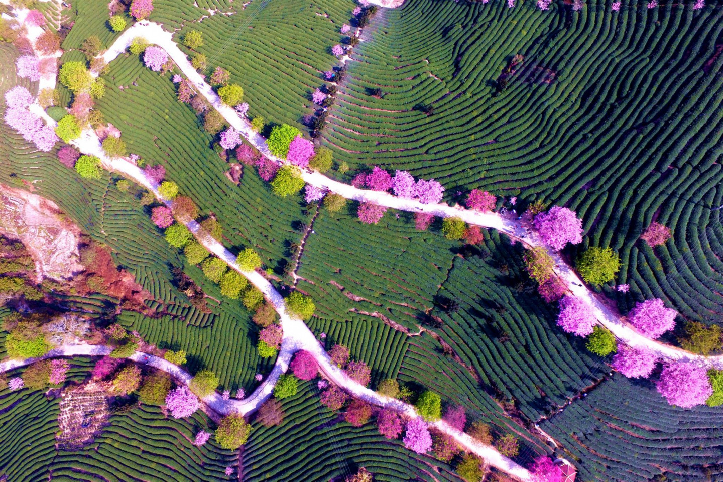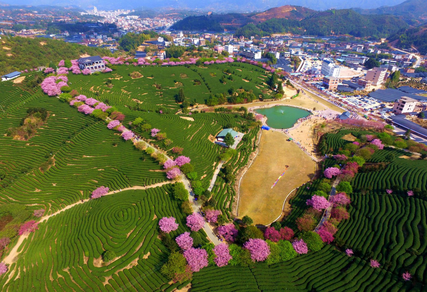 Pasakains skats! Ziedošie ķiršu koki Ķīnā no putna lidojuma