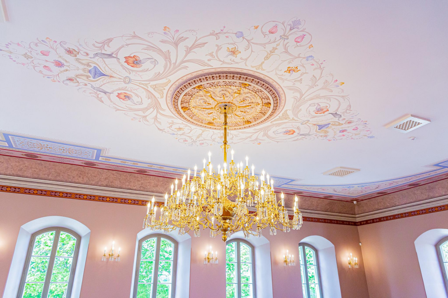 "Gandrīz astoņsimt gadu vecajā Krustpils pilī pilnībā pabeigti Lielās zāles apdares un griestu gleznojumu atjaunošanas, kā arī vēsturiskā parketa restaurācijas darbi, ko, sadarbībā ar vietējo būvnieku SIA "Erbauer Group", paveica AS "Būvuzņēmums Restaurators". Kopā ar zāles apdari tika rekonstruēta arī krāšņā lustra un pārējie sienu apgaismes ķermeņi. Tomēr vissarežģītākais uzdevums bija atjaunot skaistos griestu gleznojumus, jo liecībās par telpas izskatu bija saglabājušas vien dažas melnbaltas fotogrāfijas, ar kurām tad nācās strādāt restauratoriem un arhitektei Ilzei Mekšai."