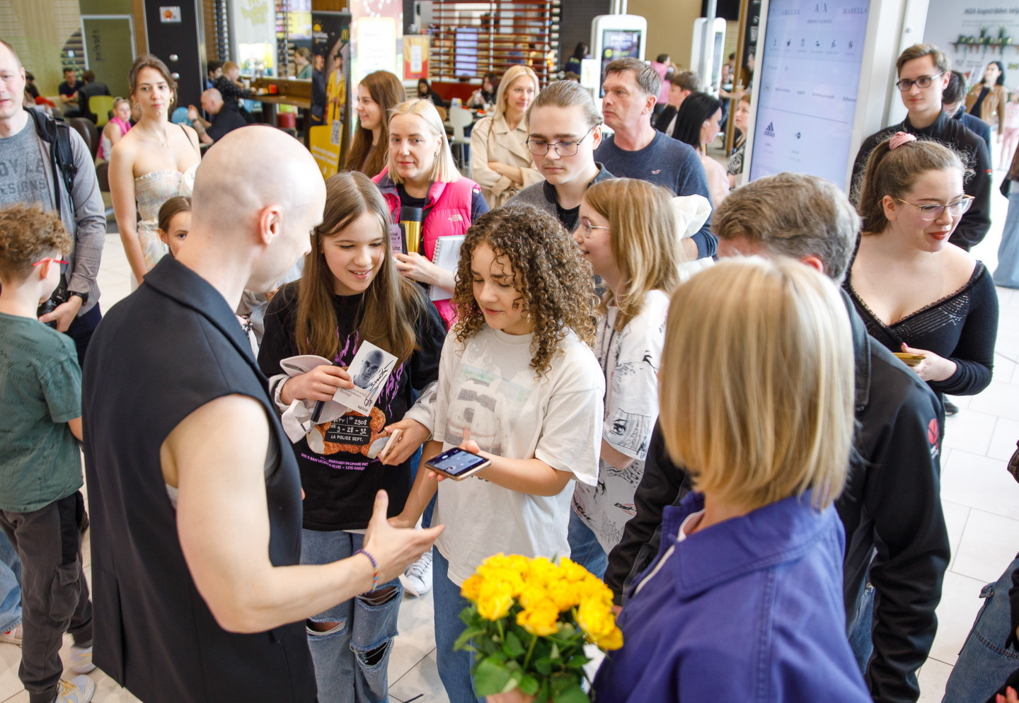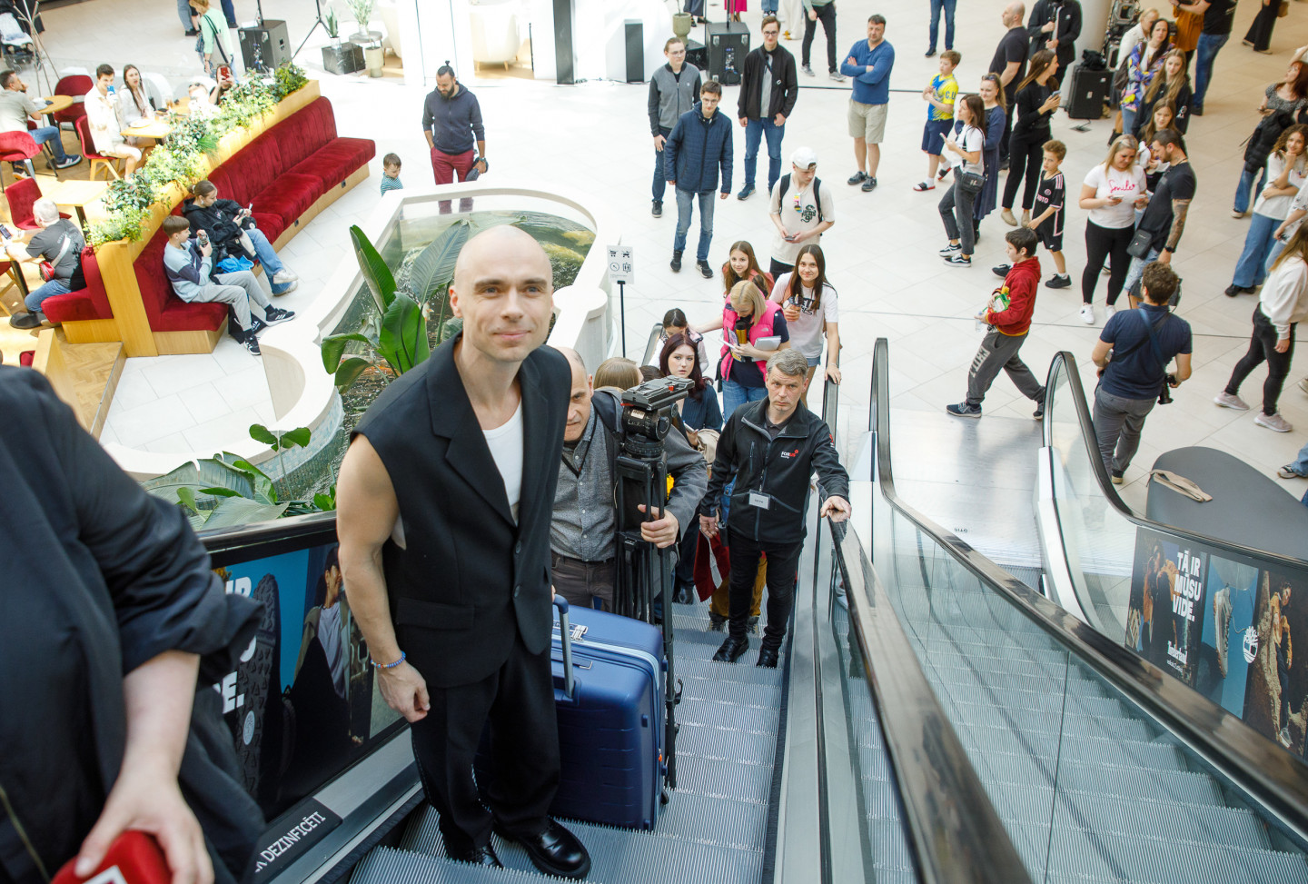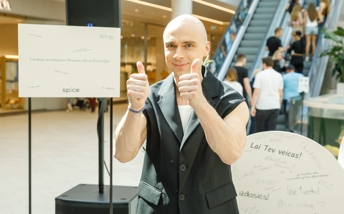 Tirdzniecības centrā "Spice" ikvienam bija iespēja novēlēt veiksmi Eirovīzijā Latvijas pārstāvim mūziķim Donam.