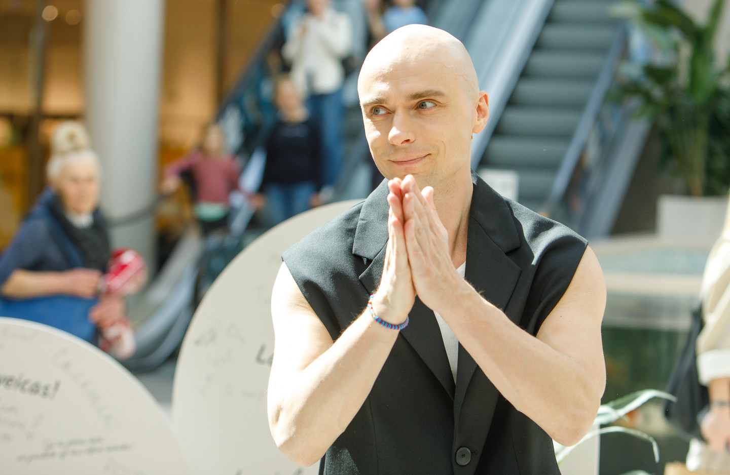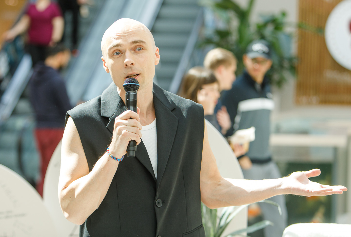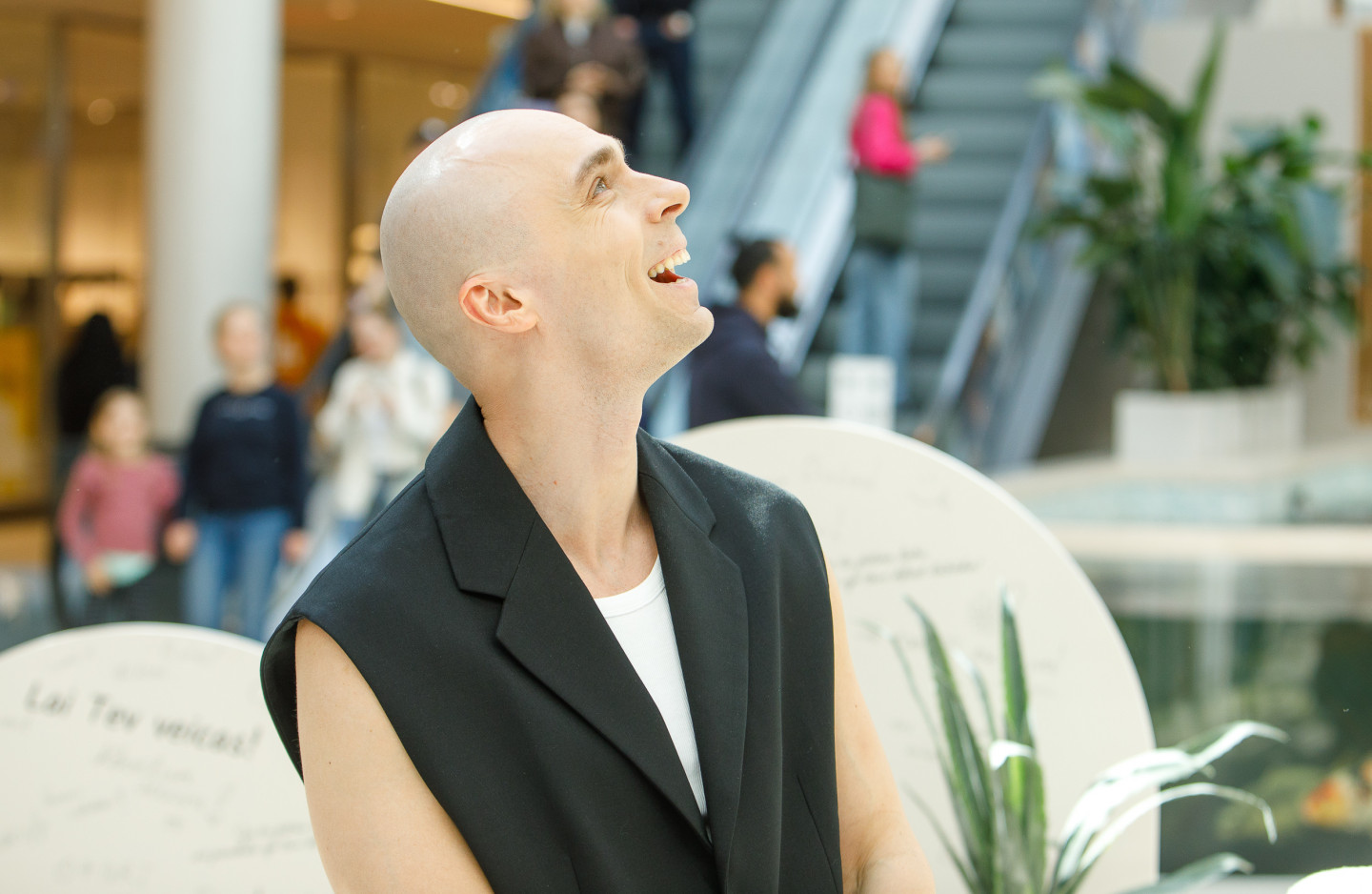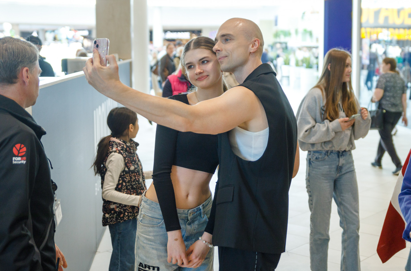 Tirdzniecības centrā "Spice" ikvienam bija iespēja novēlēt veiksmi Eirovīzijā Latvijas pārstāvim mūziķim Donam.