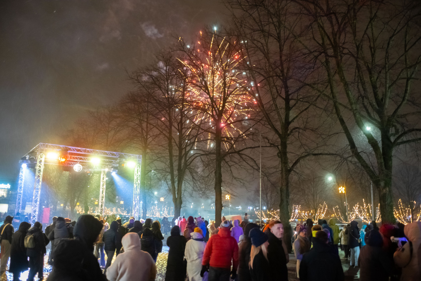 2025. gadu rīdzinieki un pilsētas sagaidīja vairākos Vecrīgas laukumos – Rātslaukumā, Līvu laukumā, Doma laukumā, Pils laukumā, laukumā pie Pulvertorņa, 11. novembra krastmalas paralēlajā ielā starp Poļu un Bīskapa gāti un Kaļķu ielas posmā starp Vaļņu ielu un Aspazijas bulvāri, kur jautrā atmosfērā varēja izdejoties, izdziedāties un līksmi sagaidīt jauno gadu.