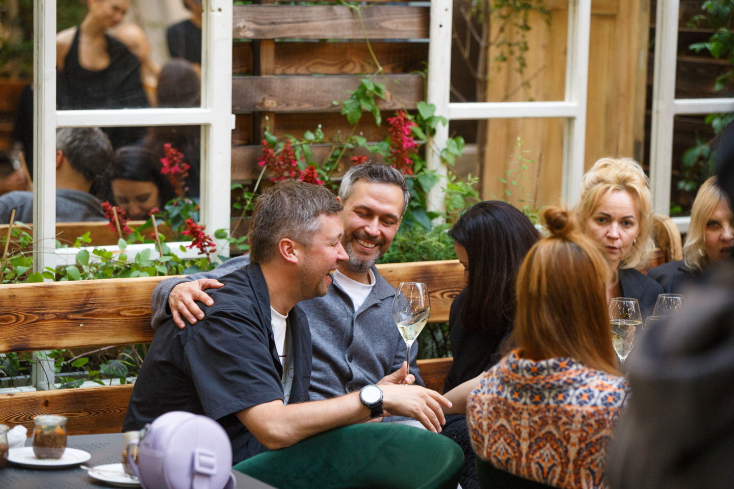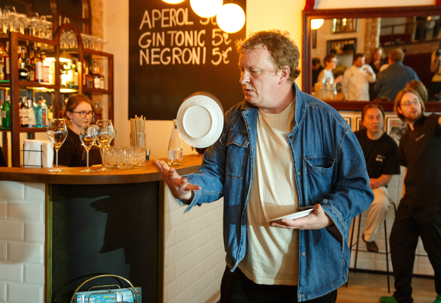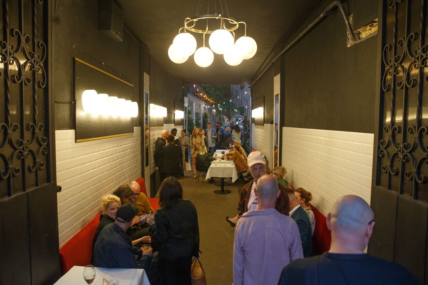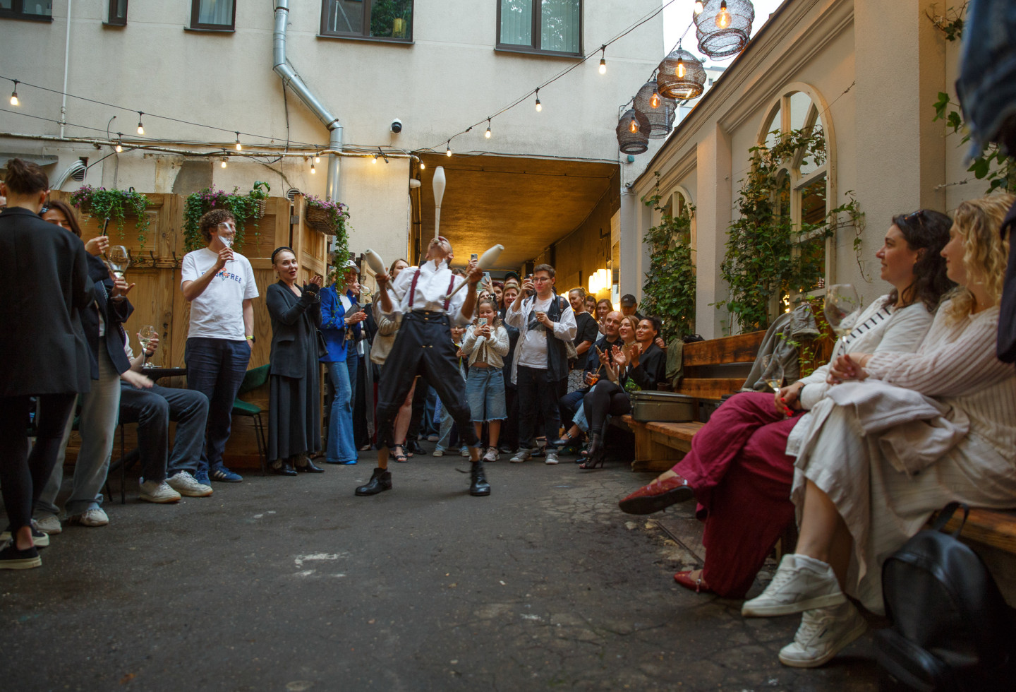 Ļaudis līksmo jaunā bāra "brasserie VIVIEN" atvēšanas svētkos