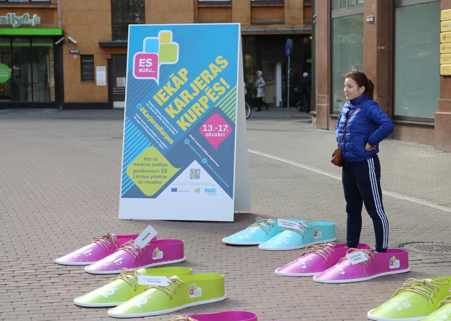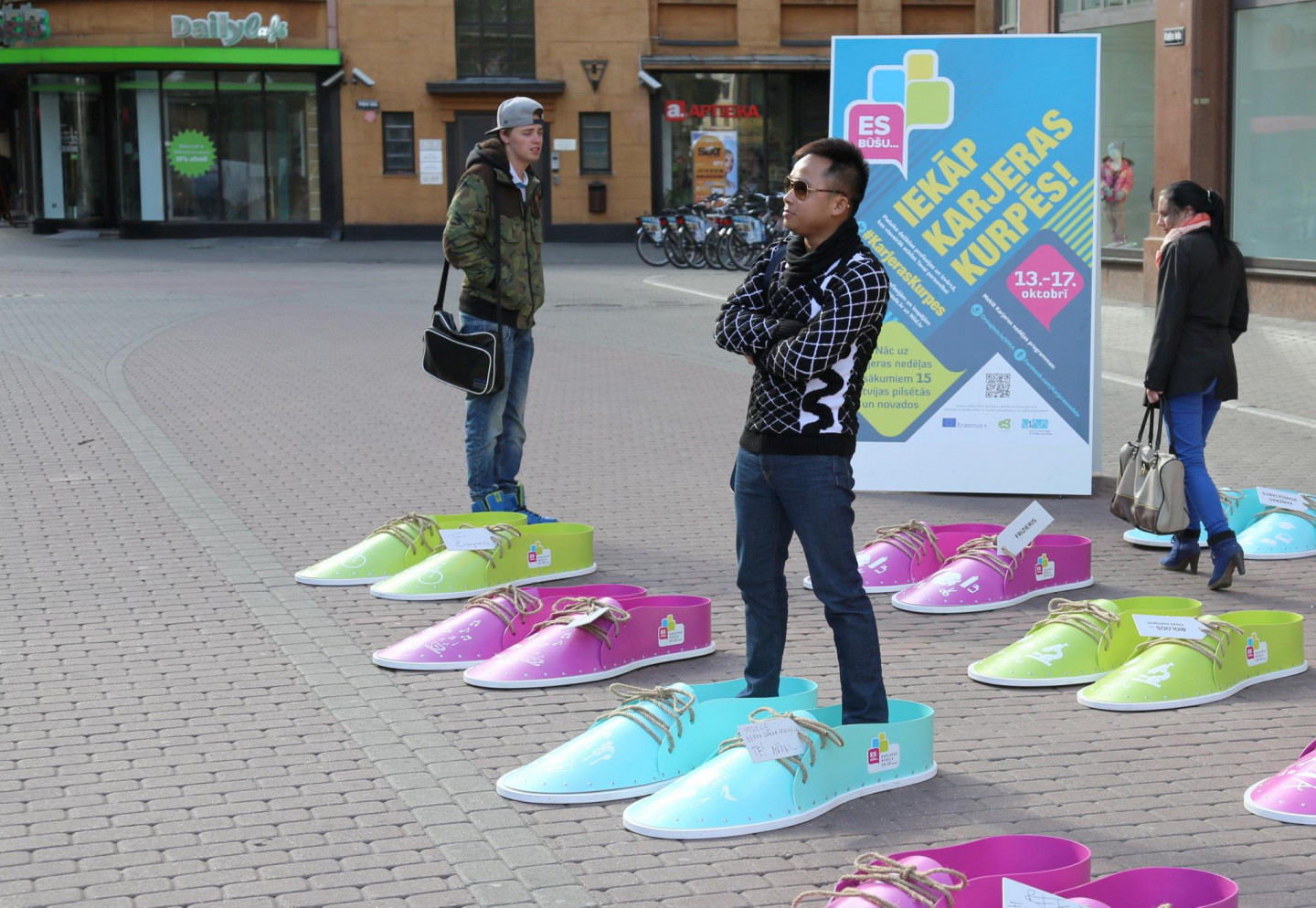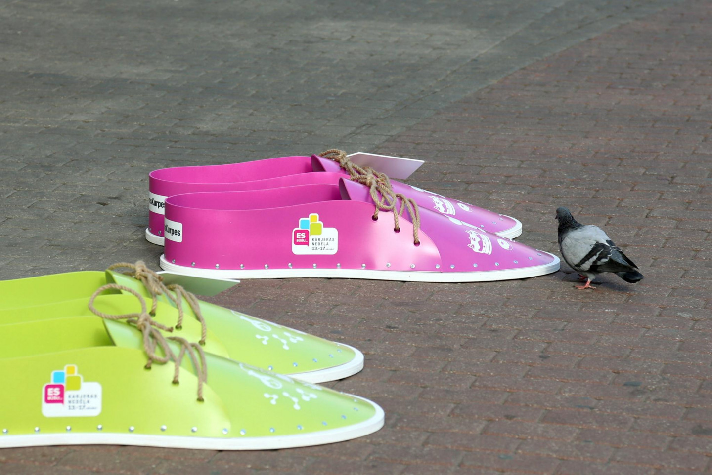 Vecrīgā atklāta vides instalācija „Iekāp karjeras kurpēs!”.