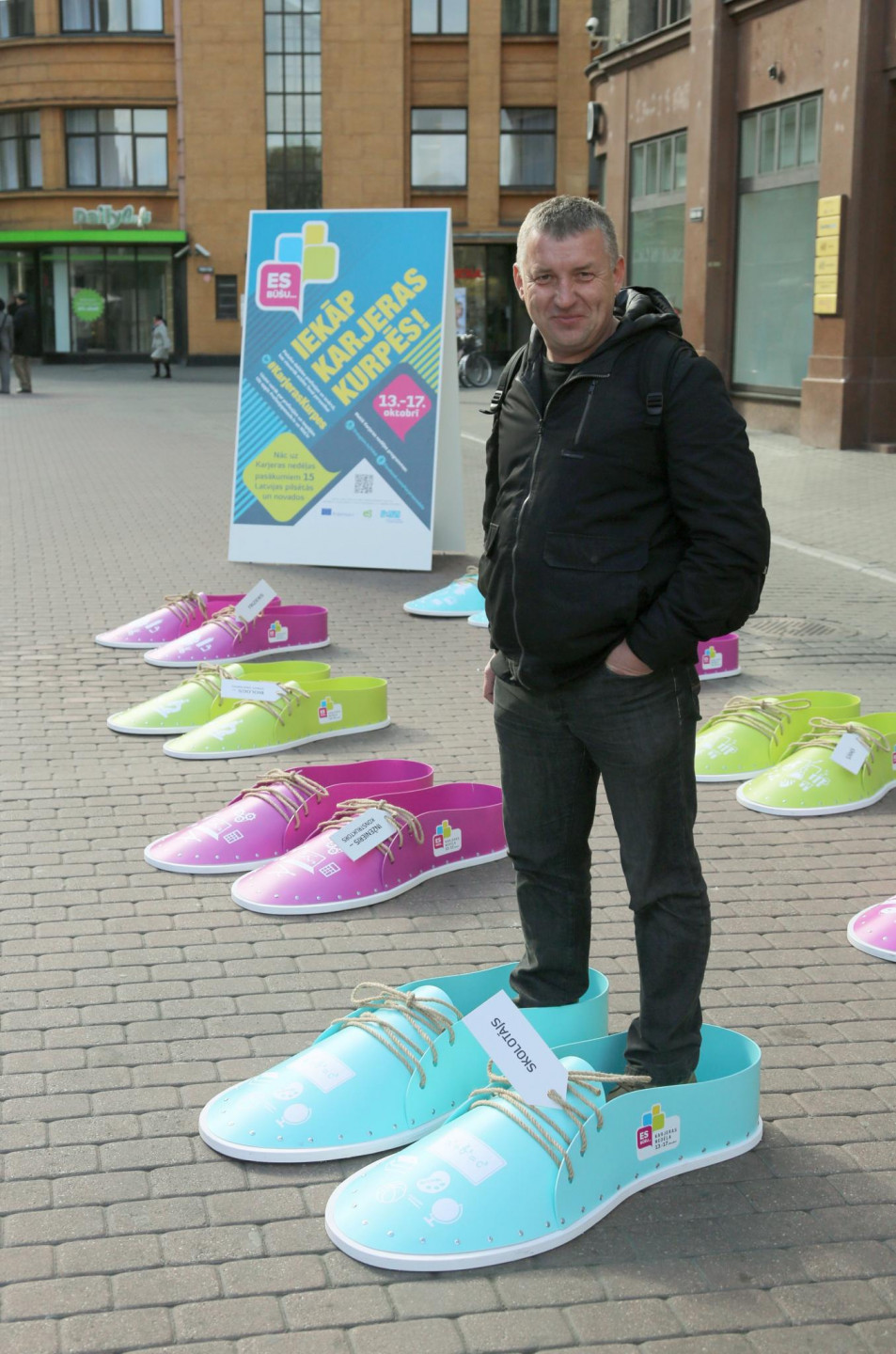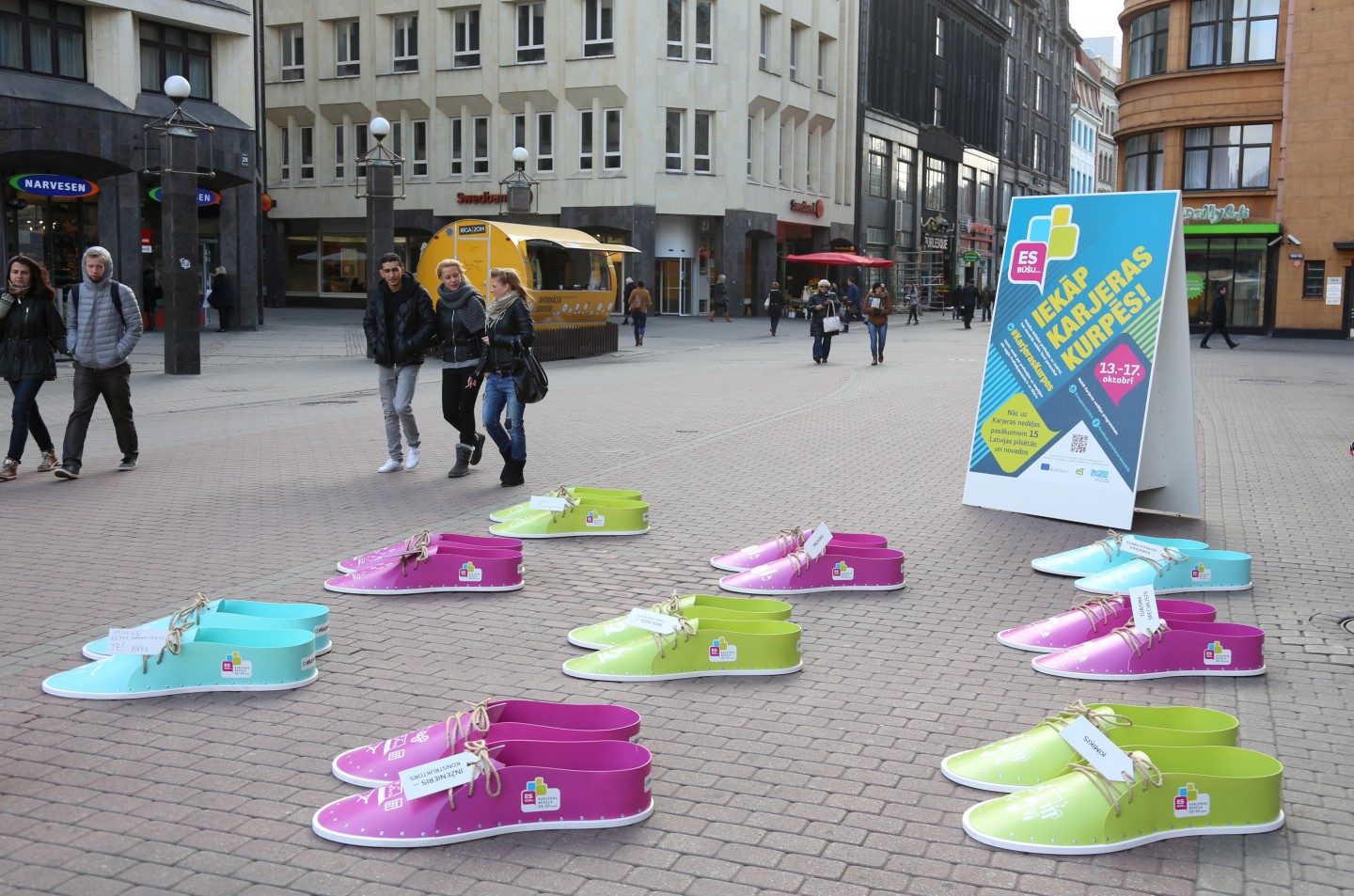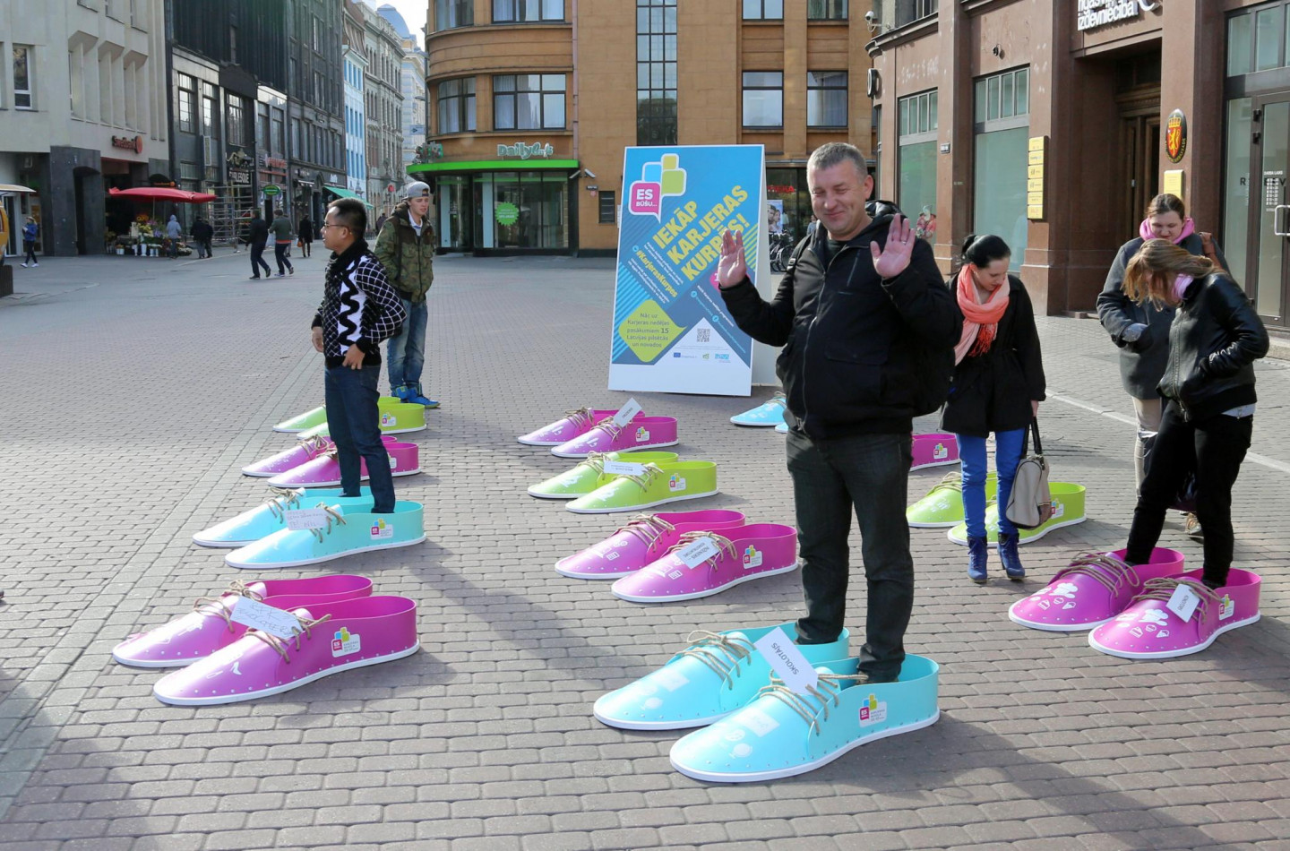 Vecrīgā atklāta vides instalācija „Iekāp karjeras kurpēs!”.