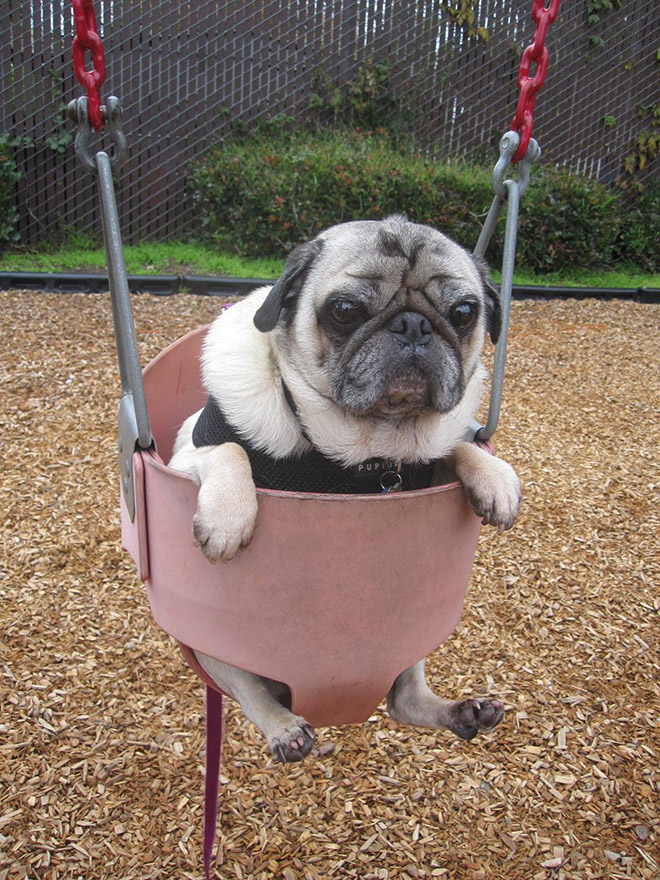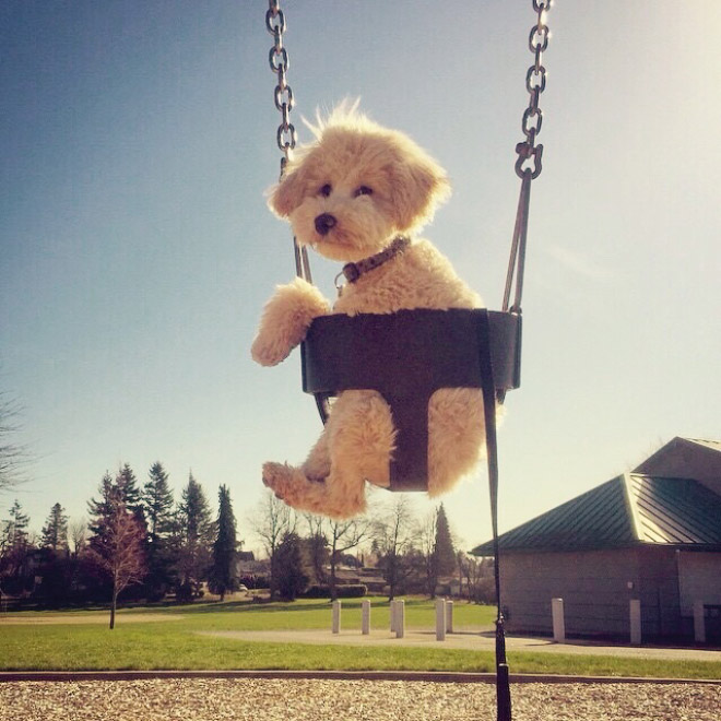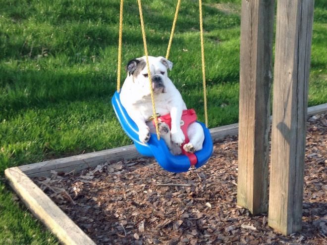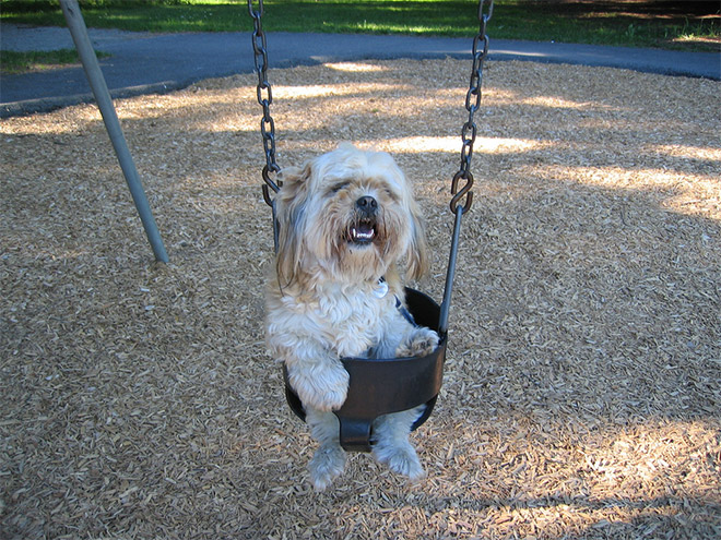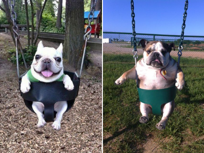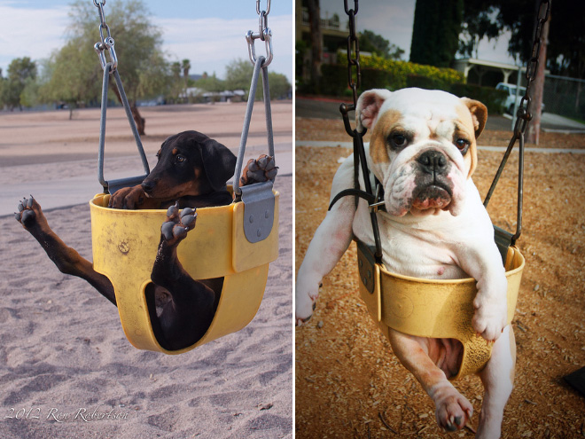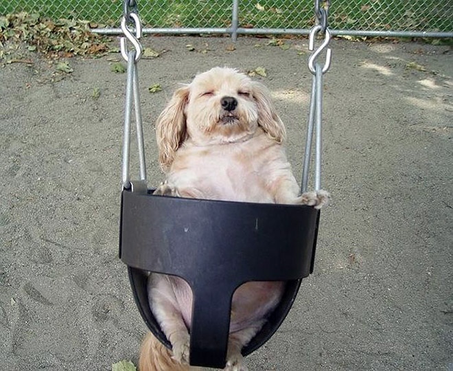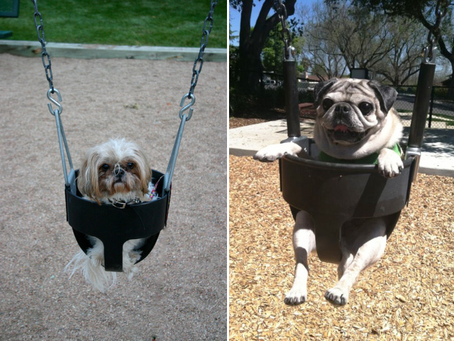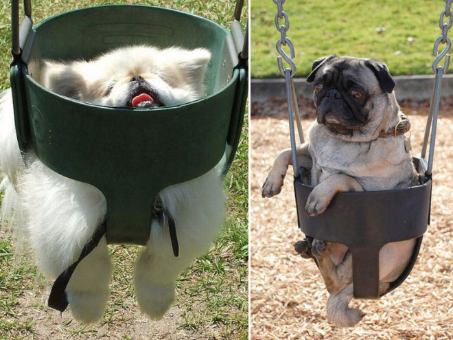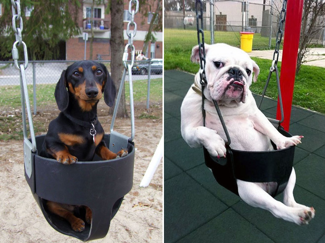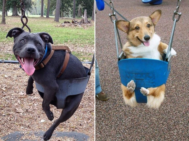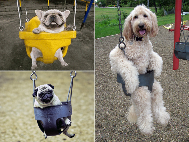 SMIEKLĪGI: Suņi apgūst šūpoles
