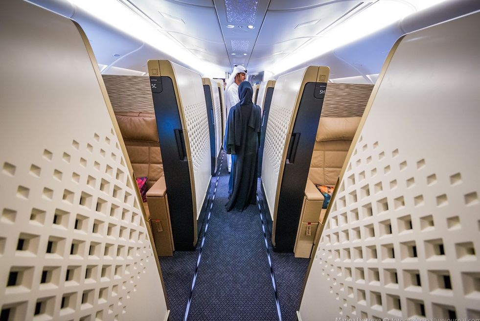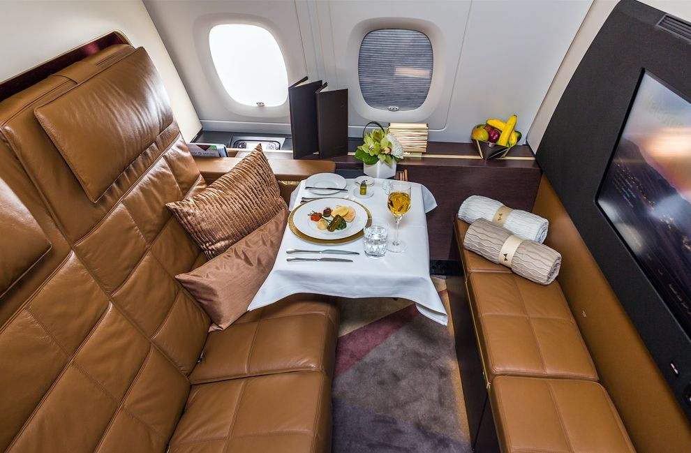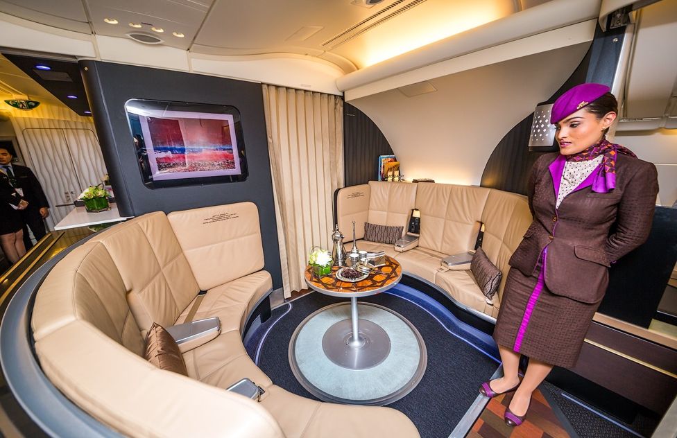 Aviokompānija Etihad Airways ir radījusi vienu no visizsmalcinātākajiem gaisa kuģiem pasaulē. Laneris Airbus A380 ir pārtapis par īstu pili, kurā trodami smalki ādas dīvāni, platas pēļu gultas, milzīgi ekrāni, kristāla trauki un pat burbuļvannas.